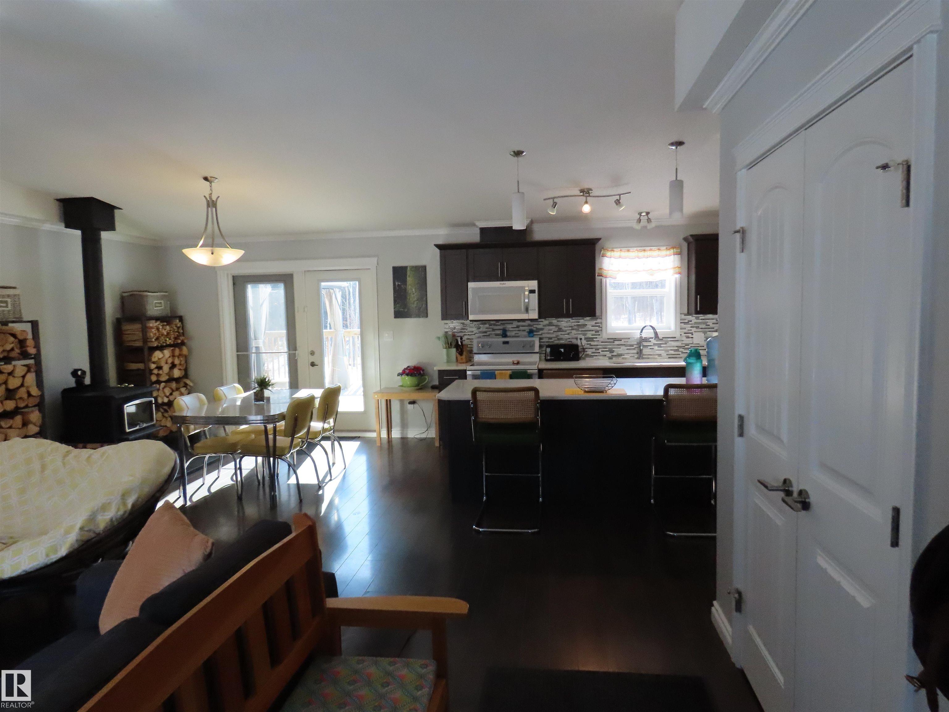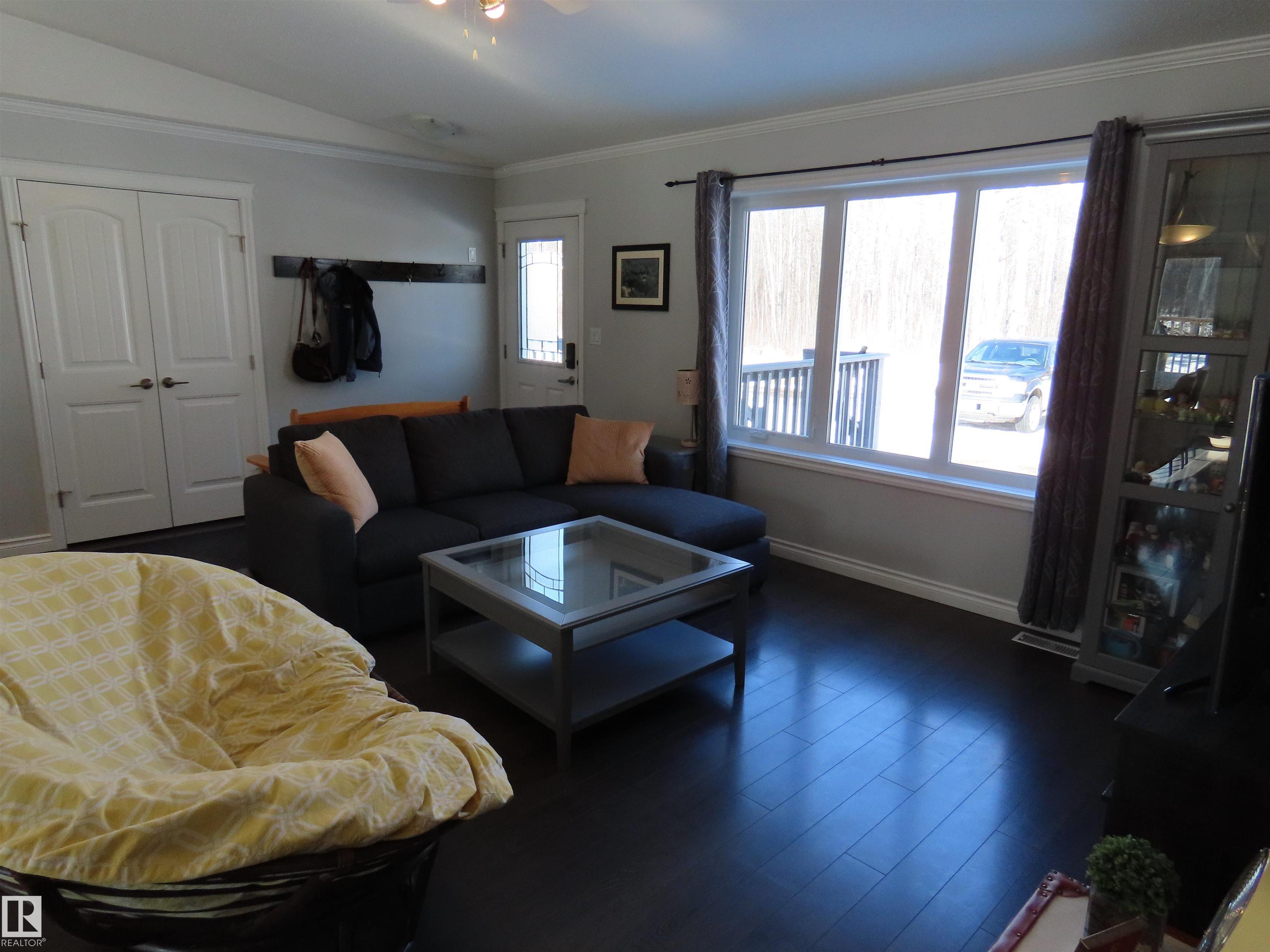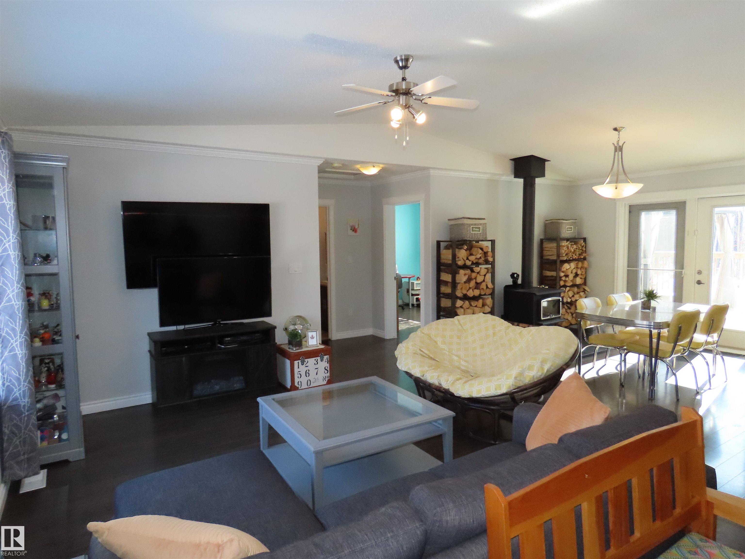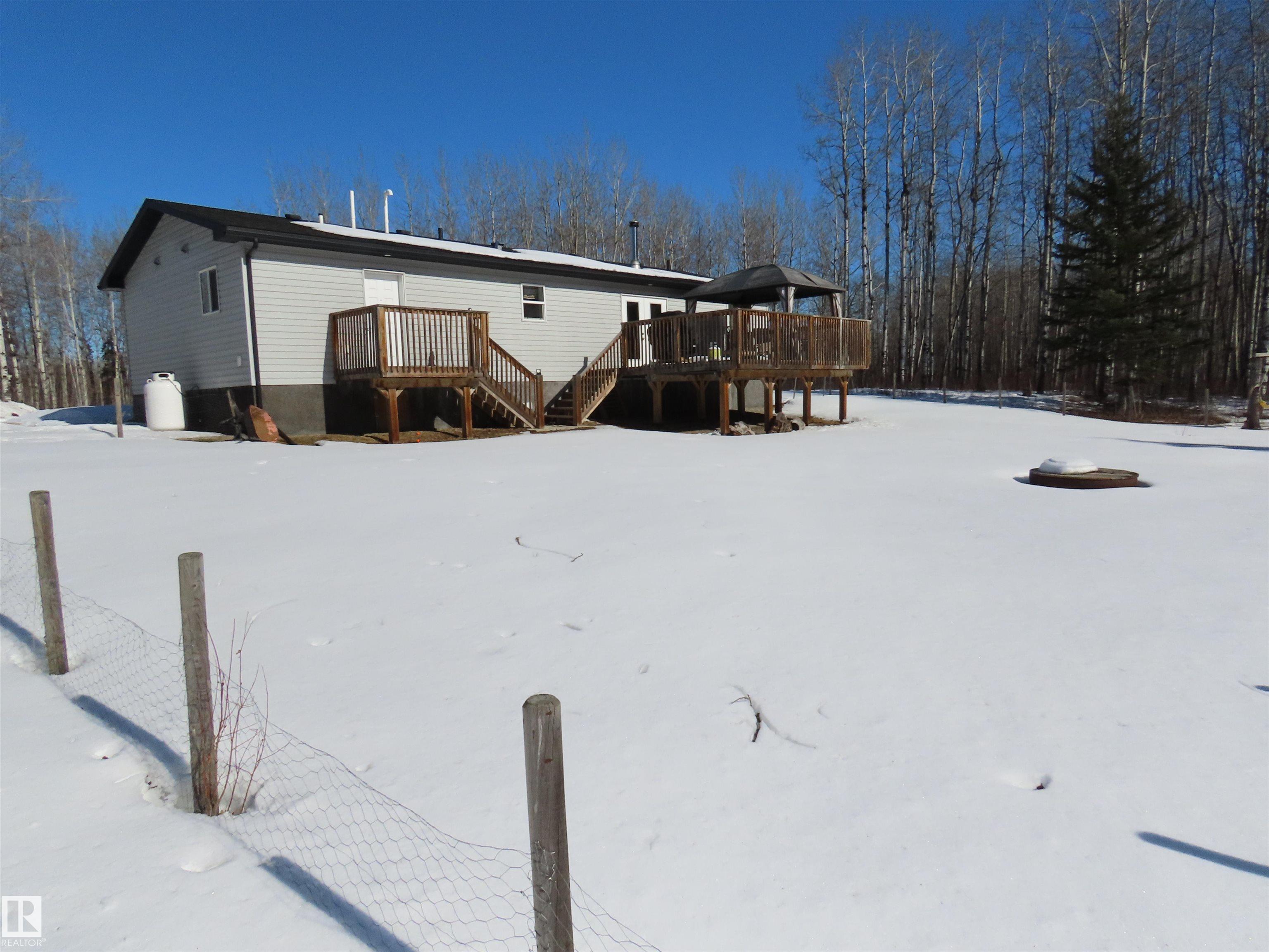 UPSCALE 1450 sq. ft. modular home in very private setting. Very popular "Californian" floor plan with Master bedroom and bath at one end and the other two bedrooms and bath at the other end. Fully treed lot with large deck and Gazebo. Ten minutes to K-9 school, shopping, golfing and recreational facilities in Alberta Breach.(Lac Ste Anne).