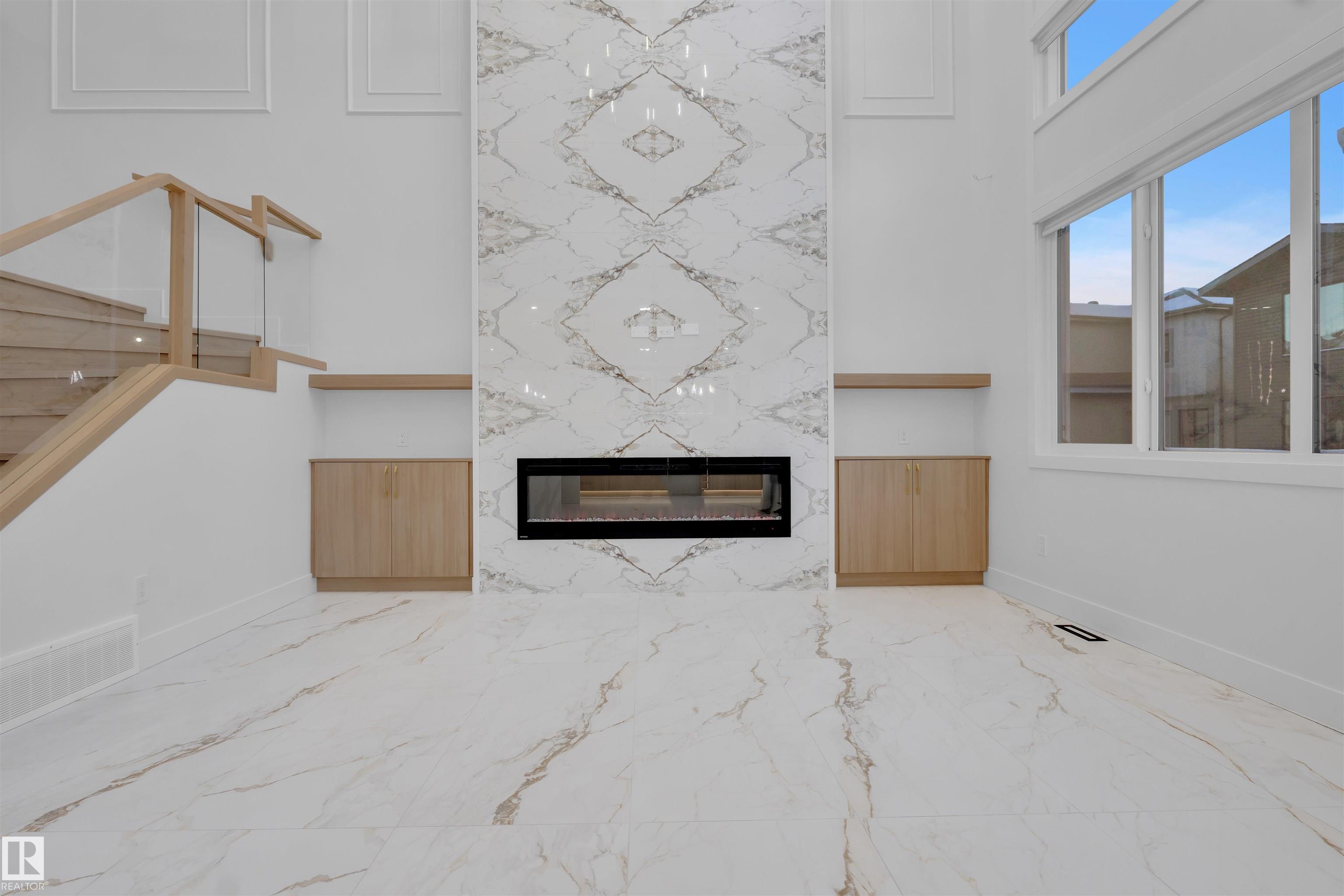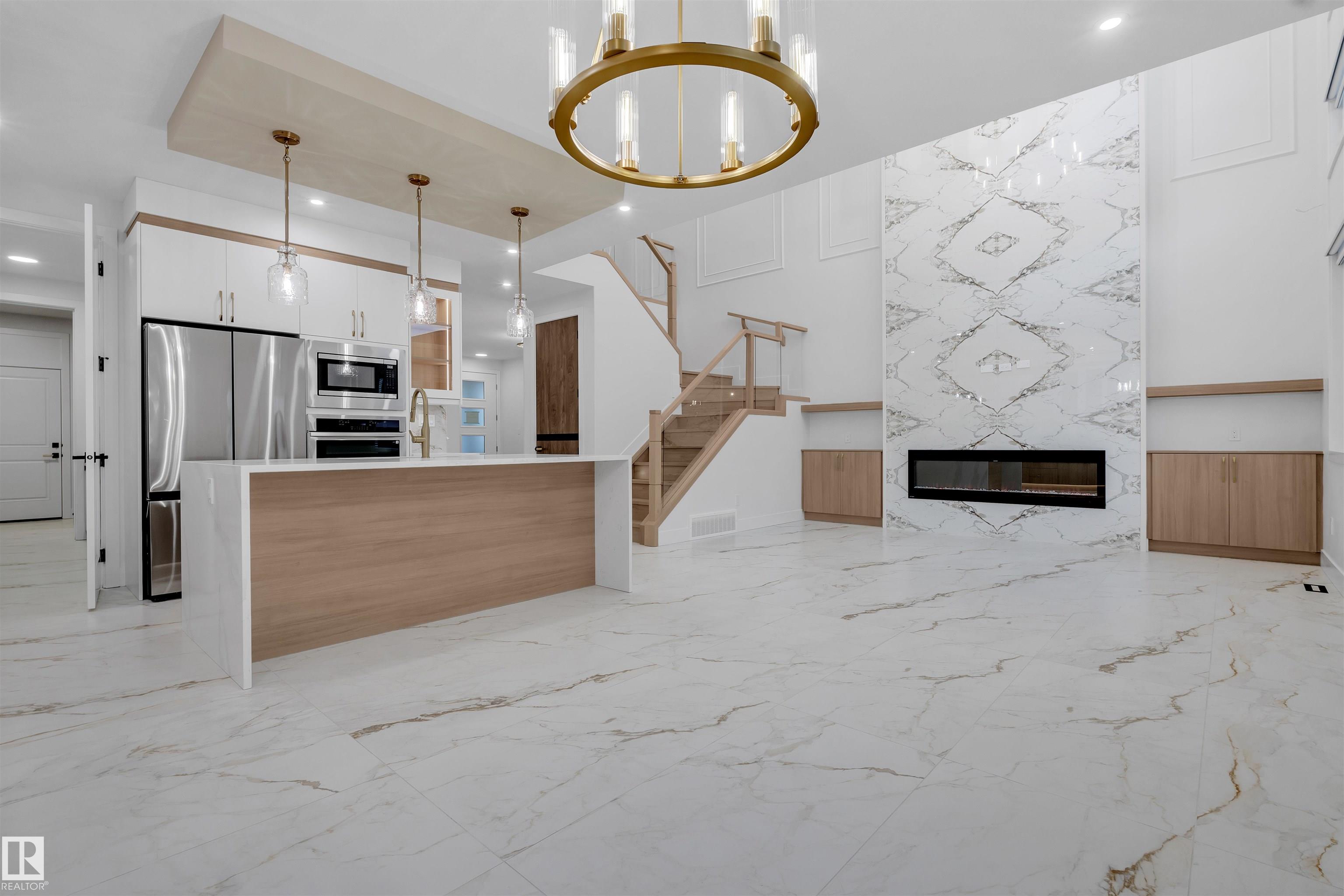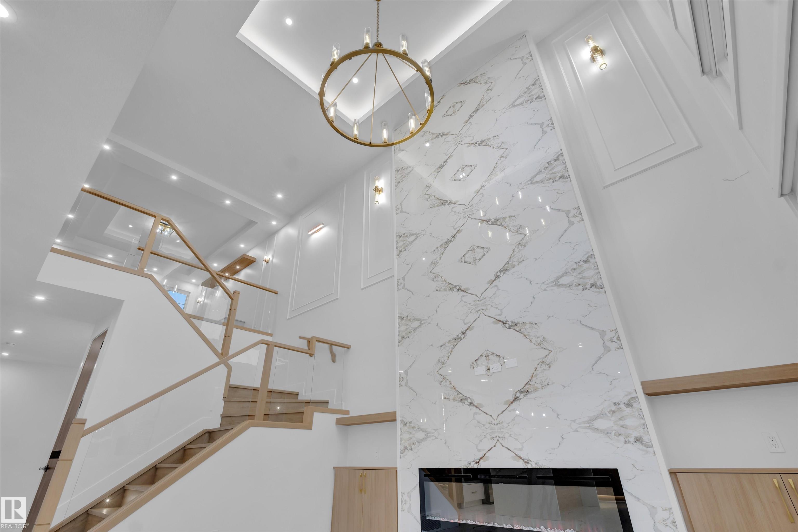 BRAND NEW | MOVE-IN READY | PREMIUM UPGRADES Stunning 2,700+ sq. ft. home on a rare 28-pocket lot with all appliances and blinds included. Features a custom extended kitchen plus spice kitchen, upgraded quartz countertops, and a waterfall island. Grand 9-ft ceilings and 8-ft doors. Main floor offers a bedroom with closet and 3-piece bath. Open-to-above living area with feature wall and electric fireplace. Glass-railed staircase with step lighting leads upstairs to a luxurious primary suite with 5-piece ensuite, plus two bedrooms with attached upgraded baths, a bonus room, and separate prayer room. Includes side entrance with potential for a 2-bedroom legal basement suite. Just 20 minutes from the airport.
