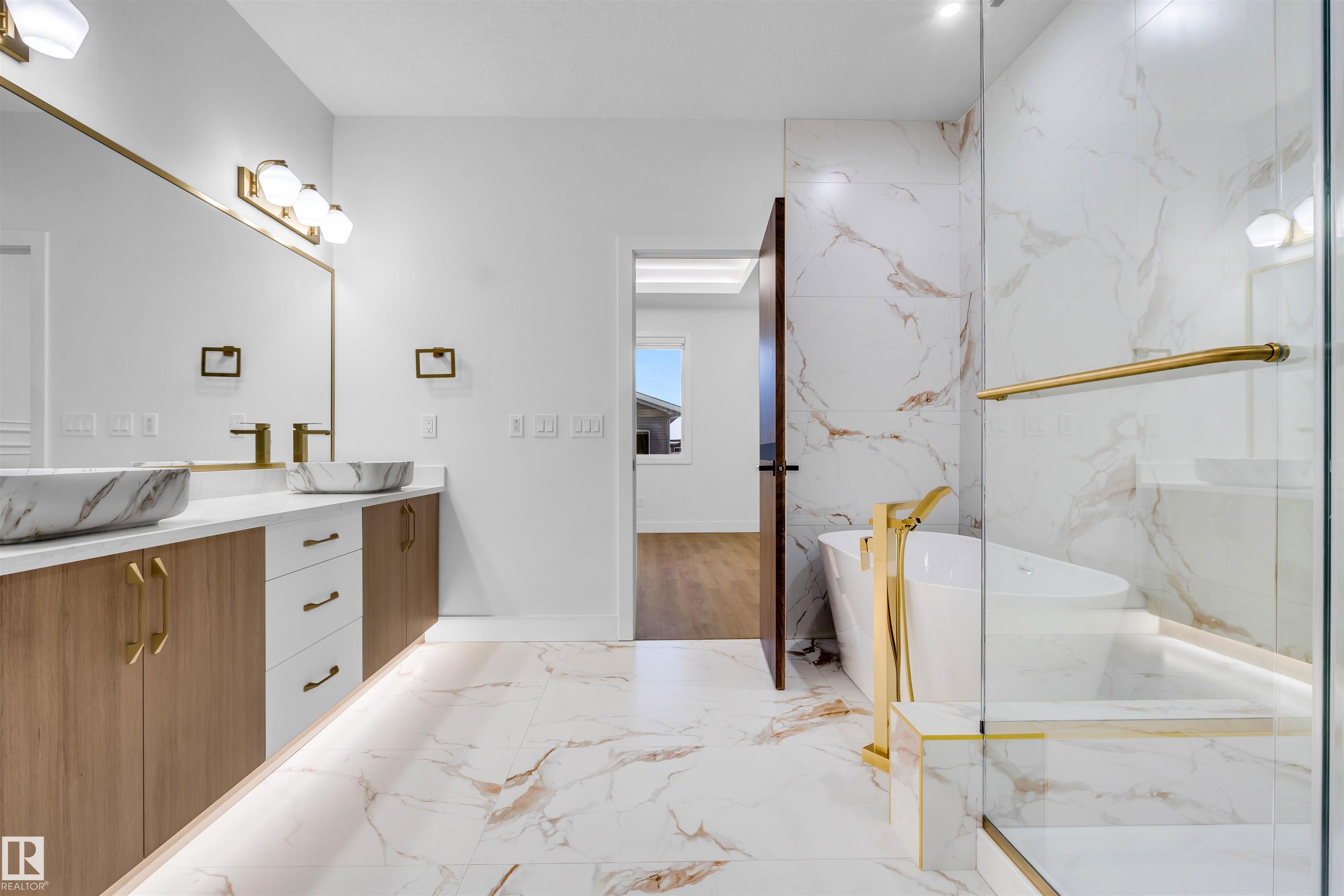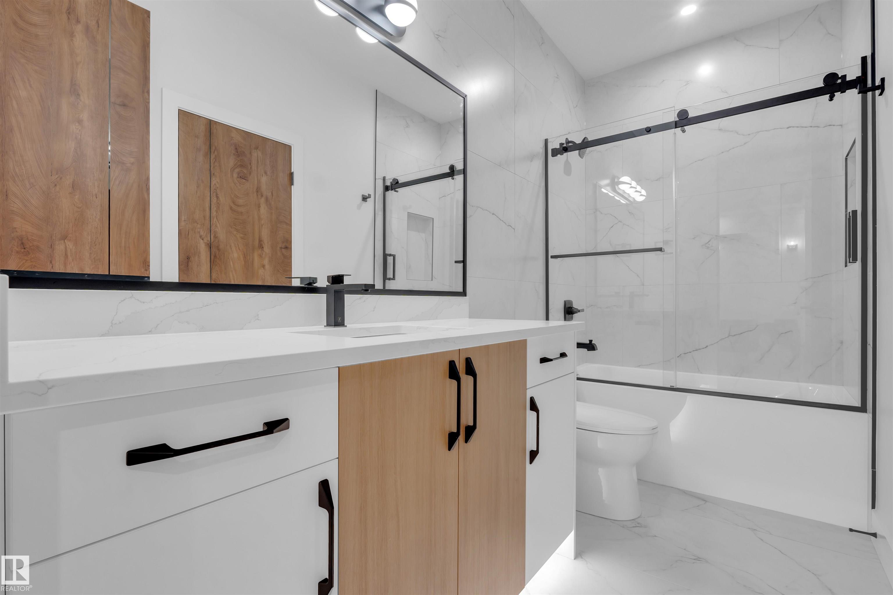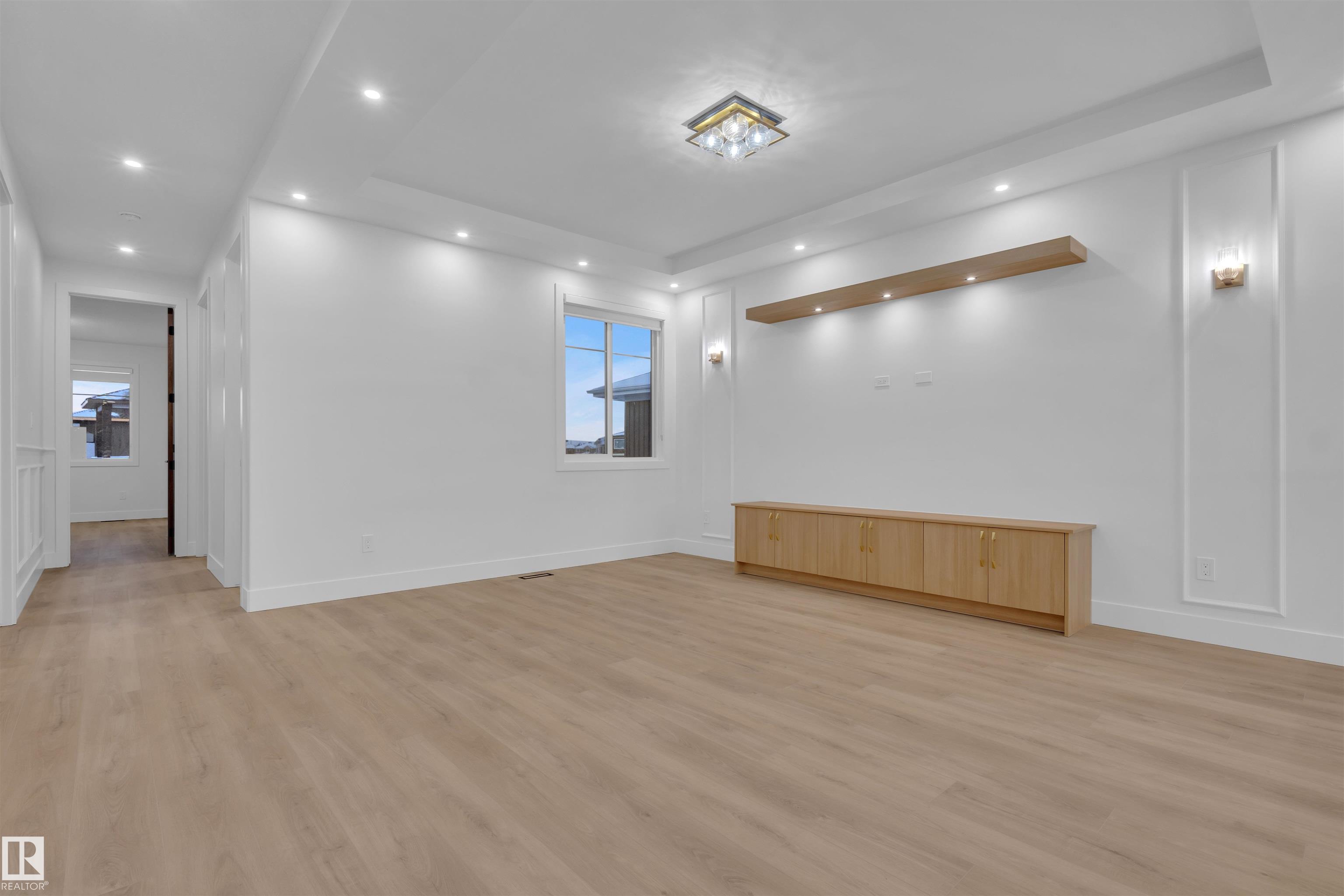 BRAND NEW | MOVE-IN READY | PREMIUM UPGRADES Stunning 2,700+ sq. ft. home on a rare 28-pocket lot with all appliances and blinds included. Features a custom extended kitchen plus spice kitchen, upgraded quartz countertops, and a waterfall island. Grand 9-ft ceilings and 8-ft doors. Main floor offers a bedroom with closet and 3-piece bath. Open-to-above living area with feature wall and electric fireplace. Glass-railed staircase with step lighting leads upstairs to a luxurious primary suite with 5-piece ensuite, plus two bedrooms with attached upgraded baths, a bonus room, and separate prayer room. Includes side entrance with potential for a 2-bedroom legal basement suite. Just 20 minutes from the airport.
