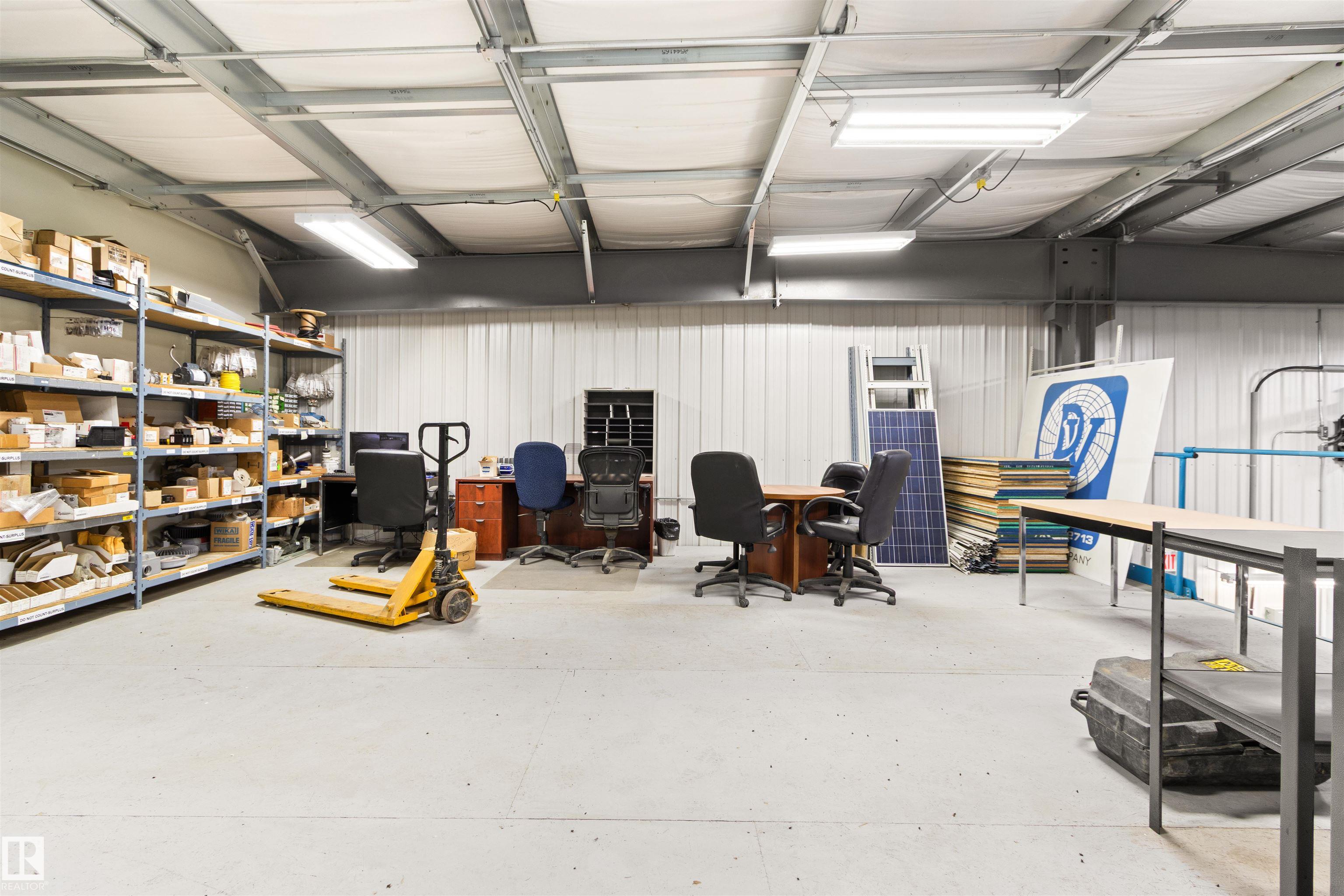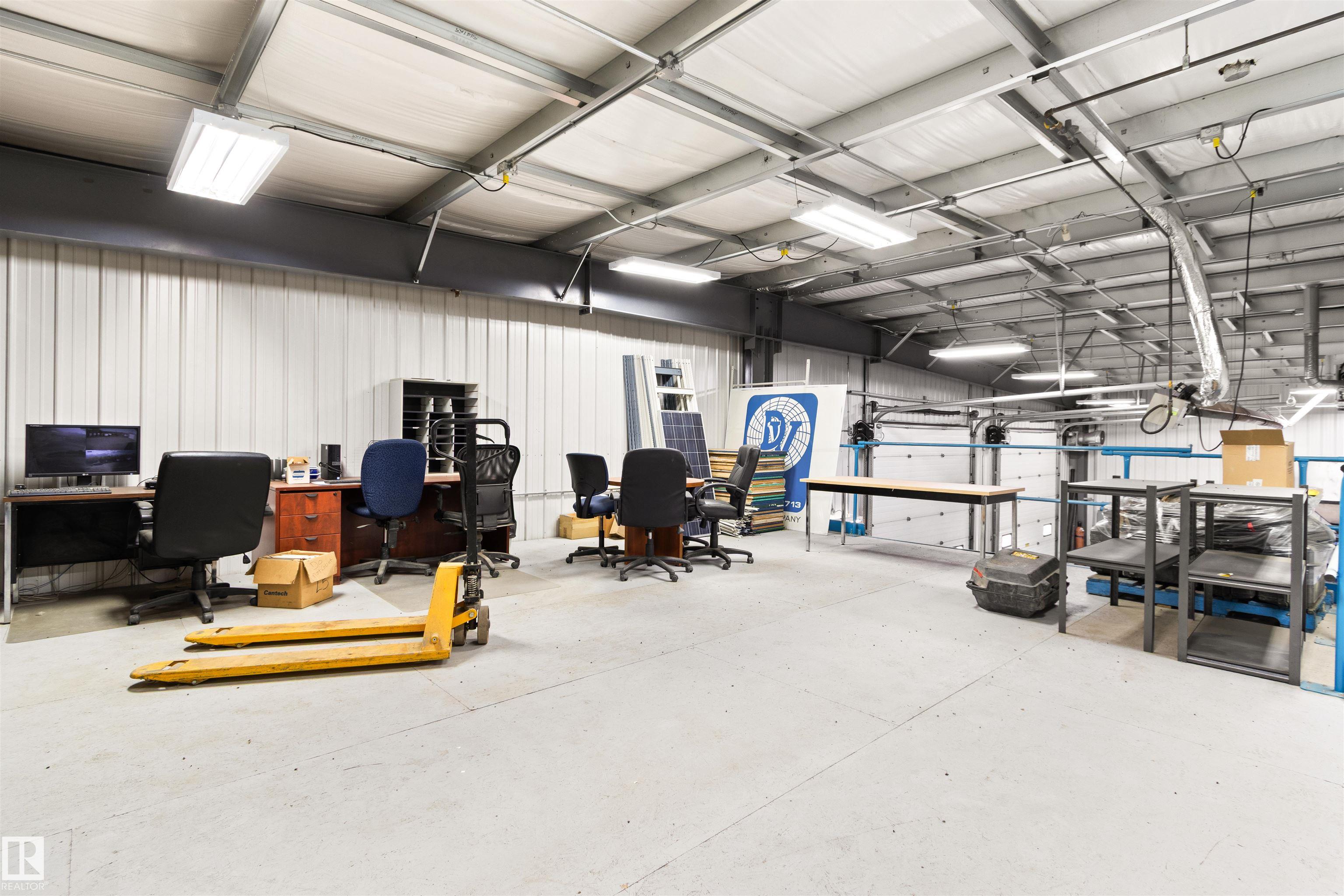 FOR LEASE - Industrial Shop & Office Space! Offering 2,989 sq ft of total space, with the option to lease the shop and office or office space only. This listing includes ONLY the West portion of the building. The office area is furnished and features three offices, a large reception/administrative area, and a lunchroom. The shop area is 1,182 sq ft and includes two 14-ft overhead doors and a mezzanine storage, ideal for light industrial or service operations. Located just West of Drayton Valley, AB on the outskirts of town, this property offers excellent exposure, ample parking, and easy access. A great opportunity for businesses seeking a practical, well-located, and move-in-ready space.