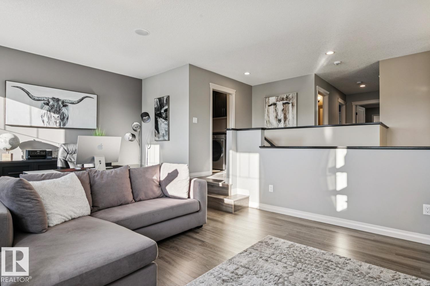 Absolutely gorgeous family home located in the great community of Allard! This 2590+ sqft, FULLY FINISHED 2-storey is loaded with upgrades and will certainly impress. The main floor welcomes you with a very open floor plan, lavish kitchen w/s.s. appliances and granite counters, bright living area w/beautiful gas fireplace, and large dining area. Upstairs you will find the spacious primary suite complete w/5-pc ensuite and walk-in closet, 2 additional good sized bedrooms, additional 5-pc bath, laundry and huge bonus area. The FULLY FINISHED lower level offers an awesome rec area complete w/gorgeous bar, 4th bedroom, 3-pc bath and plenty of storage space. Outside you will enjoy the beautifully landscaped yard and large patio. Central A/C, garage heater, built-in speakers, irrigation system, and more! Located close to schools, shopping and other amenities. Completely turnkey family home in a vibrant community!