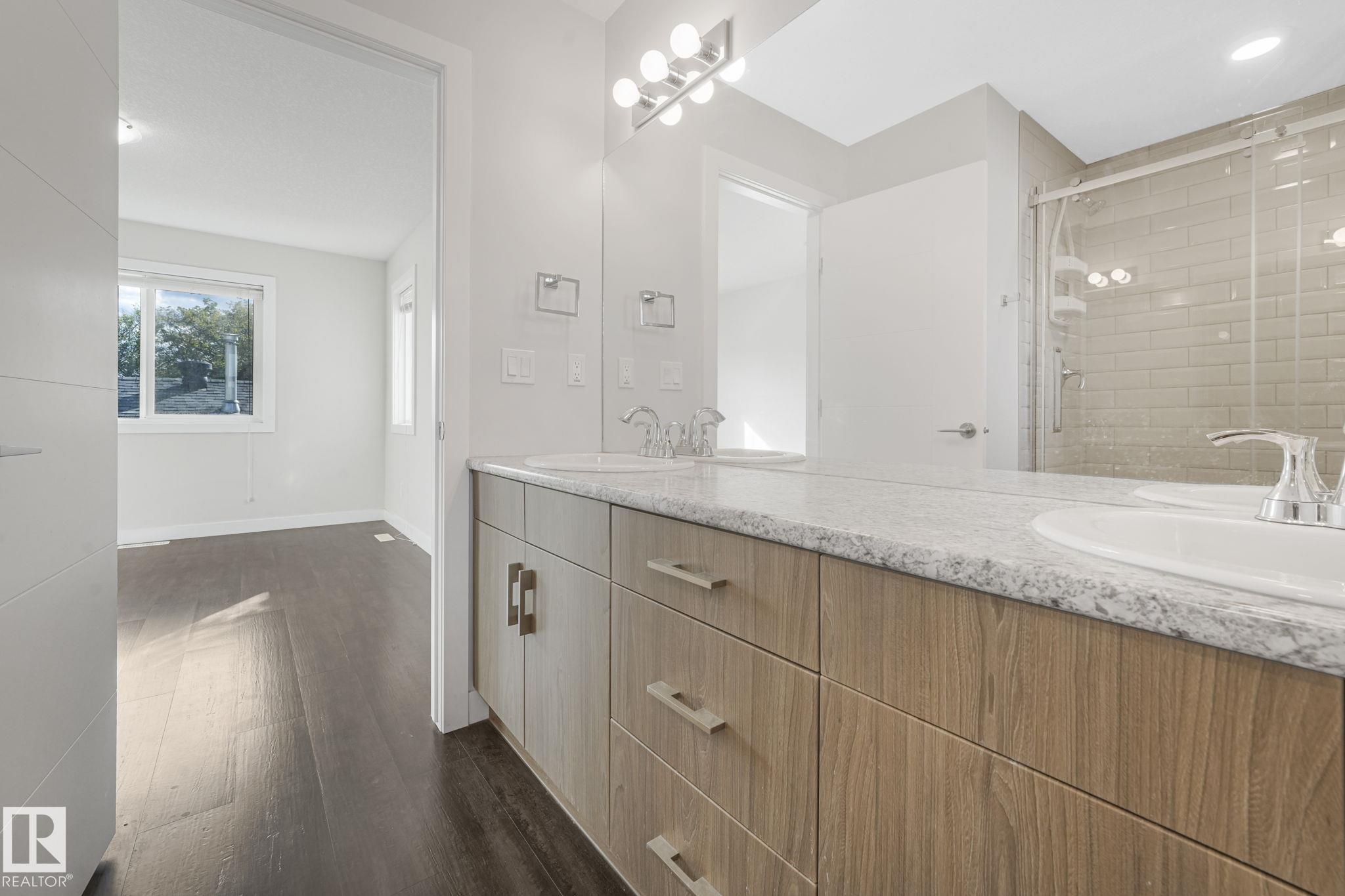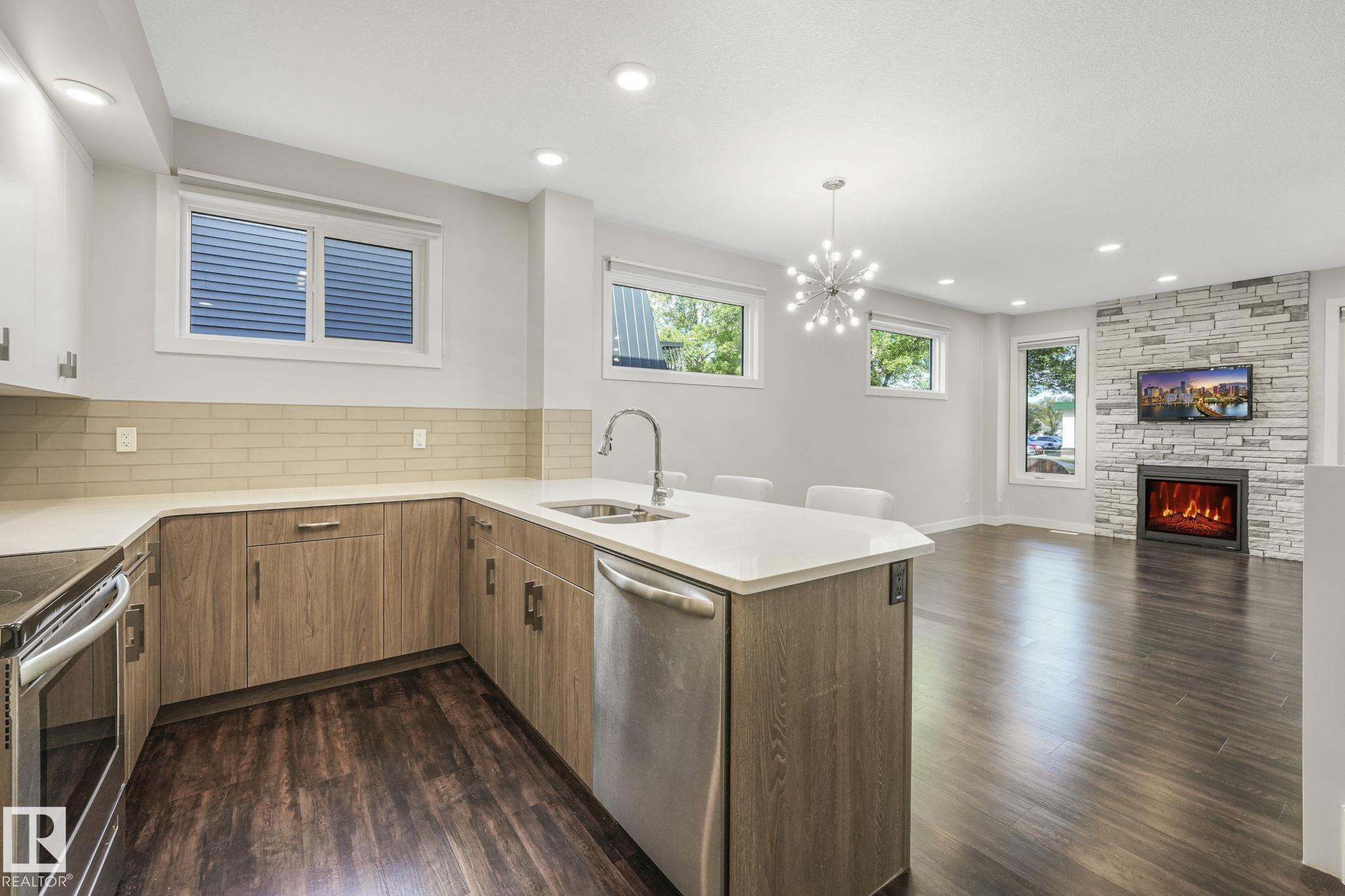 Welcome to the vibrant community of Allendale! This functional 2018 custom-built Front/Back Duplex offers 1,850 SqFt of fully finished living space w/ no expenses spared in upgrades & modern finishings. Featuring 5 Bedrooms, 3.5 Bathrooms & A/C, this home is perfect for families or investors alike. The 9' main floor boasts a stunning kitchen w/ quartz countertops, full-height cabinets, S/S appliances & large pantry. The spacious dining area separates the kitchen from the living room completed w/ stone-facing gas fireplace. Upstairs you'll find 3 bedrooms, including a generous primary suite w/ dual-sink ensuite & shower. A full bath & conveniently placed laundry complete this level. The basement features 9' ceilings, a SEPARATE ENTRANCE, 2 bedrooms, full bath & family room--ideal SUITE POTENTIAL!   Enjoy a fully fenced private yard & detached garage. Close to the U of A, schools, parks & LRT, this home offers great value & endless options. Don't miss out on this opportunity.