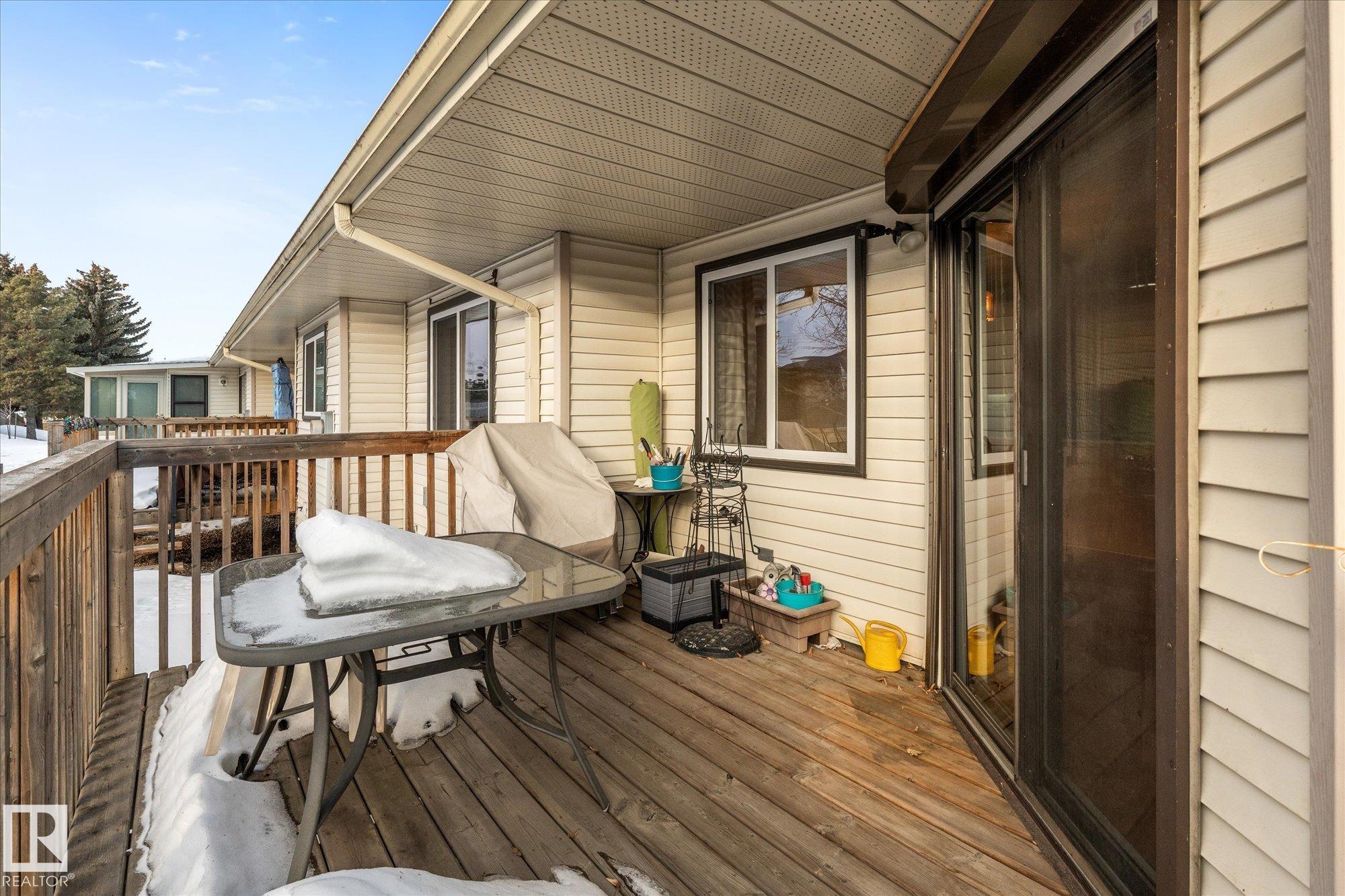 50+ Complex. Beautiful bungalow townhouse (end unit) in Horizon Beaumaris, ideally located next to the enchanting Beaumaris Lake in Castledown's. This well-maintained 3-bedroom home (2 up, 1 down) offers a comfortable, functional layout perfect for retirement living.The home features two spacious bedrooms upstairs, main floor laundry, a bright living space, dining room and kitchen. The fully finished lower level adds excellent additional space with a third bedroom, a large L-shaped recreation room, a 3-piece bathroom, and plenty of storage.Enjoy a private, south-facing backyard with a deck, plus a single attached garage and nearby visitor parking. This is a wonderful community for retirement living with lake access and within walking distance to shopping, YMCA, local arena, public transportation, and the clubhouse. Condo fees include landscaping, snow removal, lawn maintenance and overall care of the grounds, making day-to-day living safe,safe, easy, low maintenance. Move in ready!