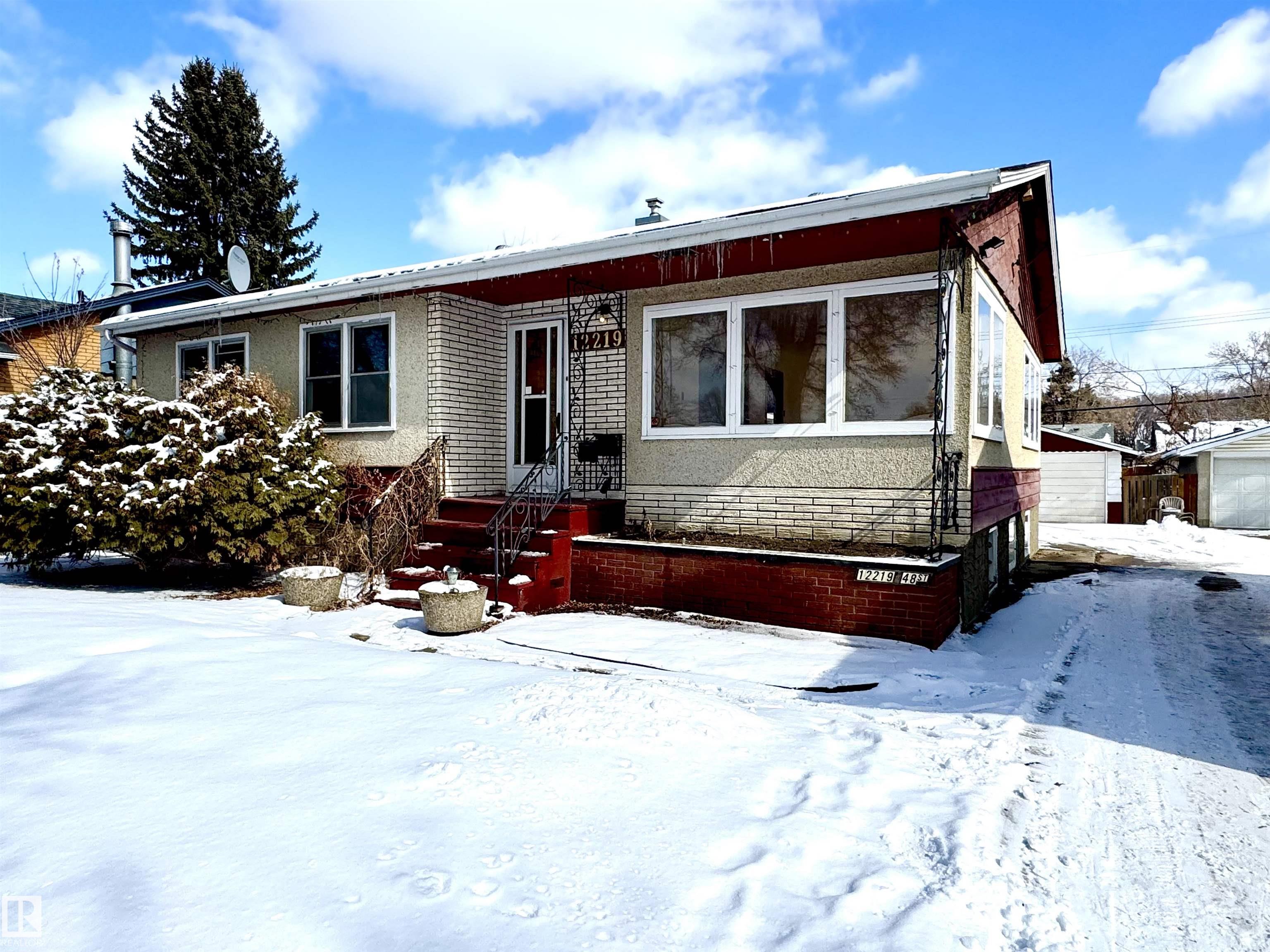 INVESTMENT OPPORTUNITY ~ SEPARATE ENTRANCE ~ MASSIVE GARAGE and WINDOWS - Talk about a perfect home to either renovate or with permits, use as an investment property. With incredible bones, a perfect layout with huge rooms and massive windows that flood the home with natural light...all of it sitting on a gorgeous tree lined street with easy access to the Yellowhead. There's also a separate entrance that leads to an equally bright lower level with an older kitchen setup not currently permitted, and with a nice sun room off the separate entrance means more opportunity to draw in those perfect renters. There's also an oversized garage with a front entrance which means it doesn't consume the back yard. At first glance you can see the home is solid and comes with many features other homes simply do not have. Bright. Spacious and tons of great energy and development options. This is an incredible opportunity to get into the market in a community that is only getting better and better every year. Welcome home!
