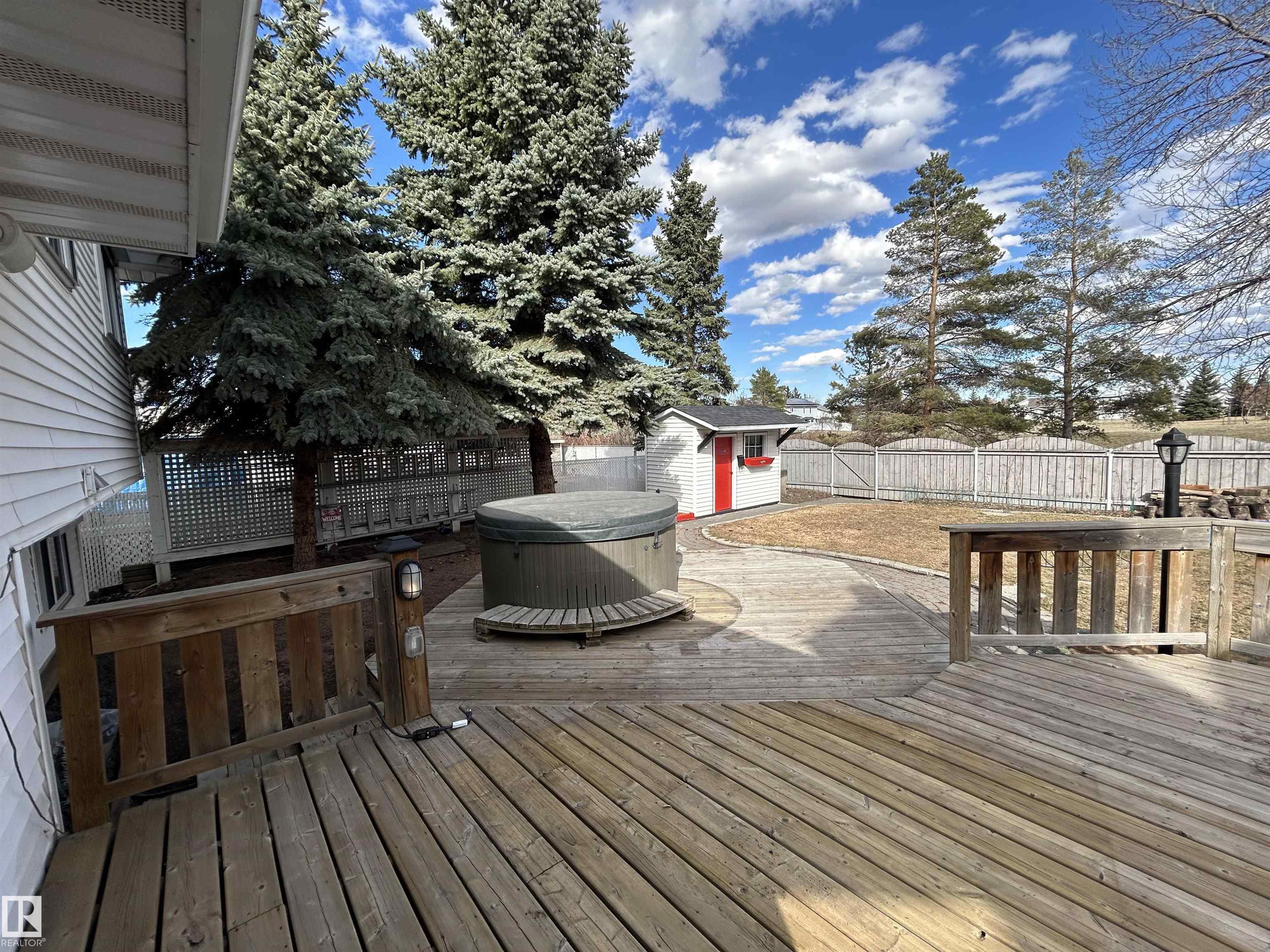 GREAT VALUE! Tucked away on a quiet street backing green space, this affordable 4 level split offers 4 bedrooms, 3 Full bathrooms, bright main floor living room, U shaped kitchen with stainless appliances, open to dining nook with access to the big, fenced & landscaped back yard, upper level with 3 spacious bedrooms, primary with 3 piece ensuite, convenient 2nd floor laundry, 3rd level has big windows eliminating that "basement feel", a cozy family room, bedroom and full bath, 4th level offers a den/storage area and mechanical, newer furnace, hot water tank and windows over the recent years. Backyard is beautiful with big deck, East exposure for beautiful sunrises, backing park/greenspace. Double attached garage is heated with hot/cold water. Close to schools, shopping and major connecting routes.