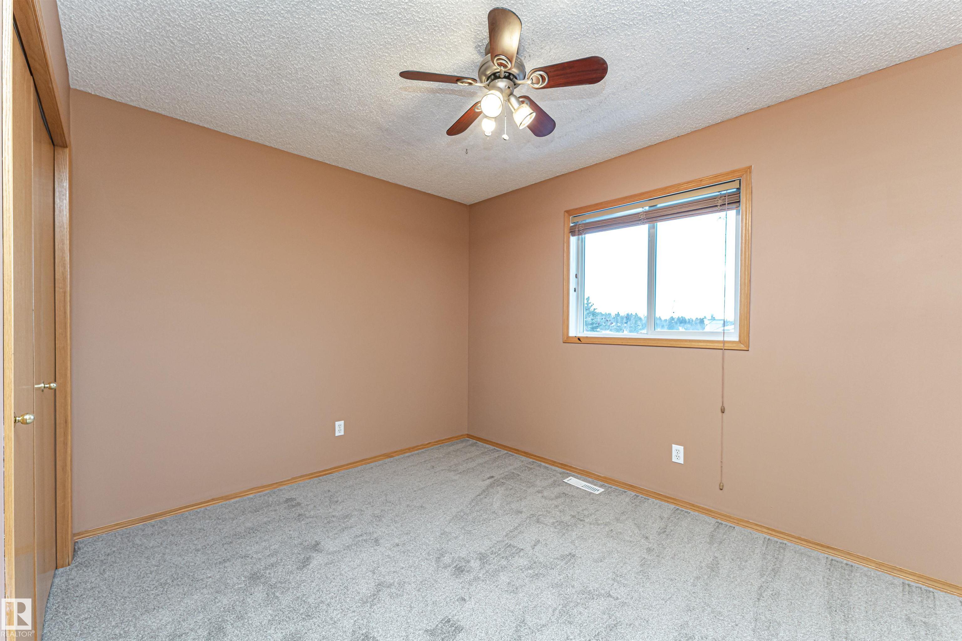 Fully finished 2-storey half duplex | 3 beds + family room | 3 baths | 2,000+ sq ft total living space. Move-in ready with brand-new carpet on the basement level and on the staircase to the second floor. The main floor features a large kitchen with island/eating bar. Enjoy a separate dining room and a bright living room anchored by a gas fireplace. Step outside to a private rear deck--perfect for morning coffee or summer BBQs. Upstairs you'll find three well-sized bedrooms, including a primary suite with a 4-piece ensuite and custom California Closets. The fully finished basement provides a spacious family/rec room. The attached garage is insulated and drywalled. Quiet and family-friendly complex in Blackburn, close to transit, shopping, and Anthony Henday Drive.