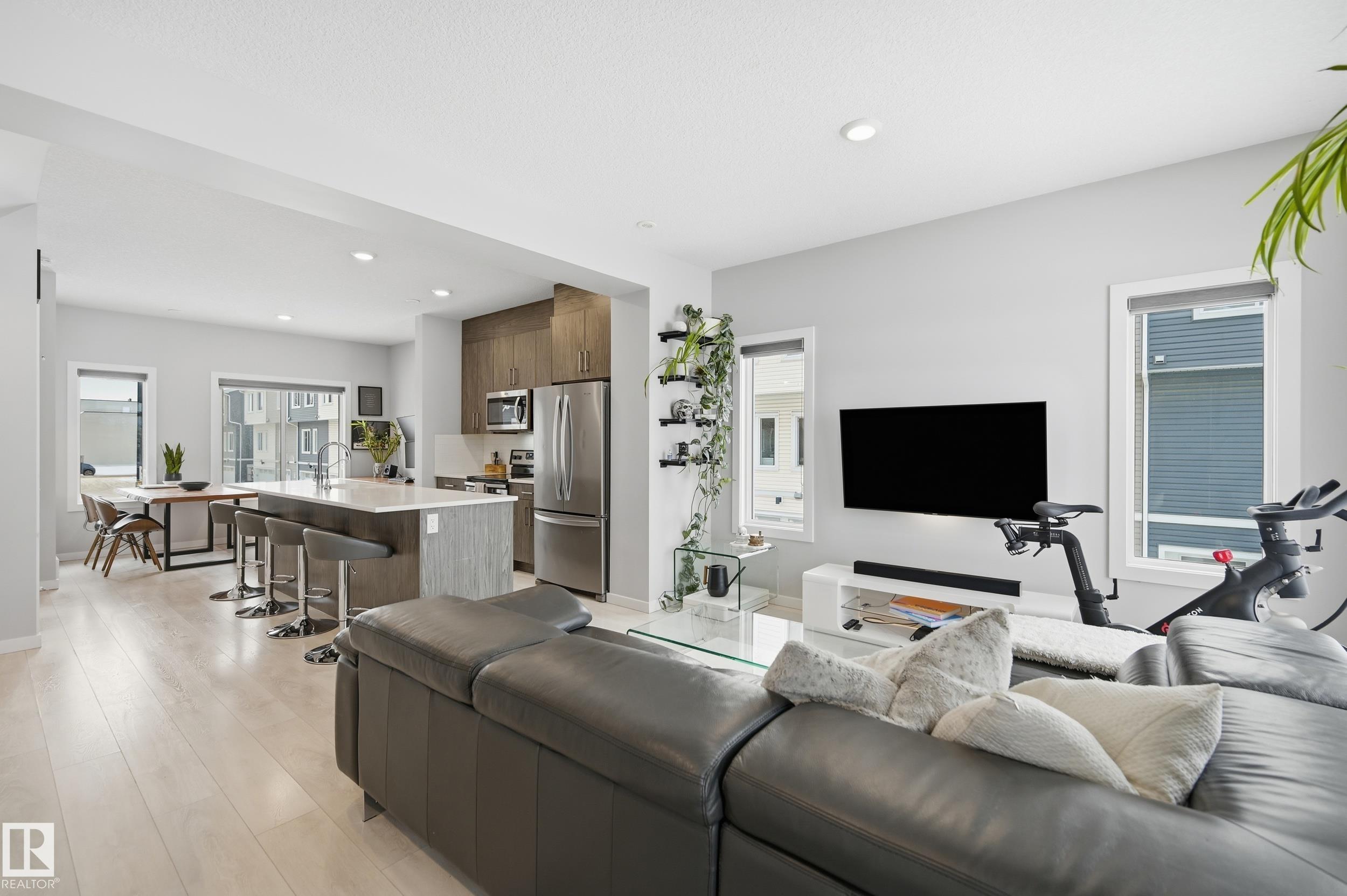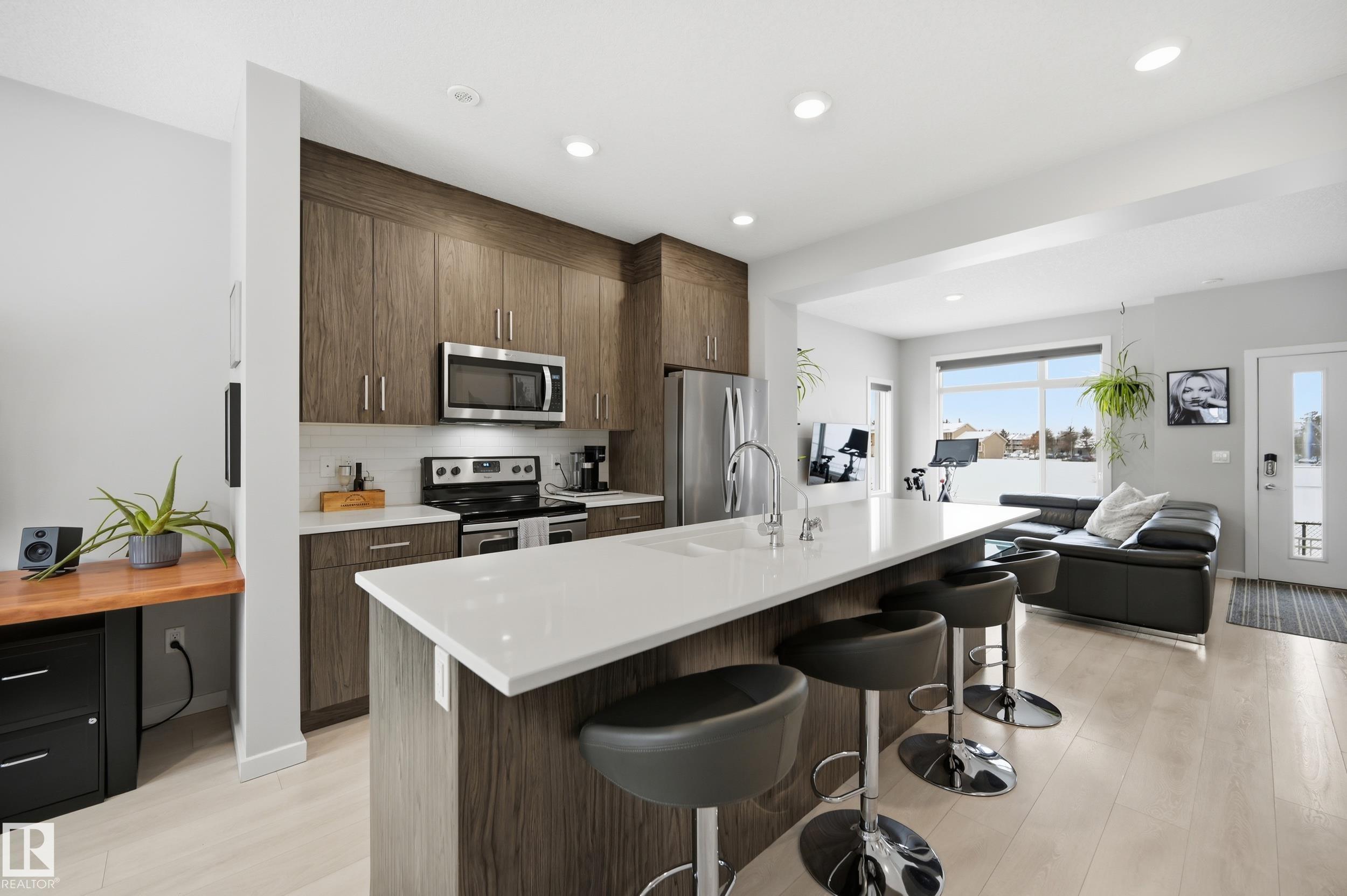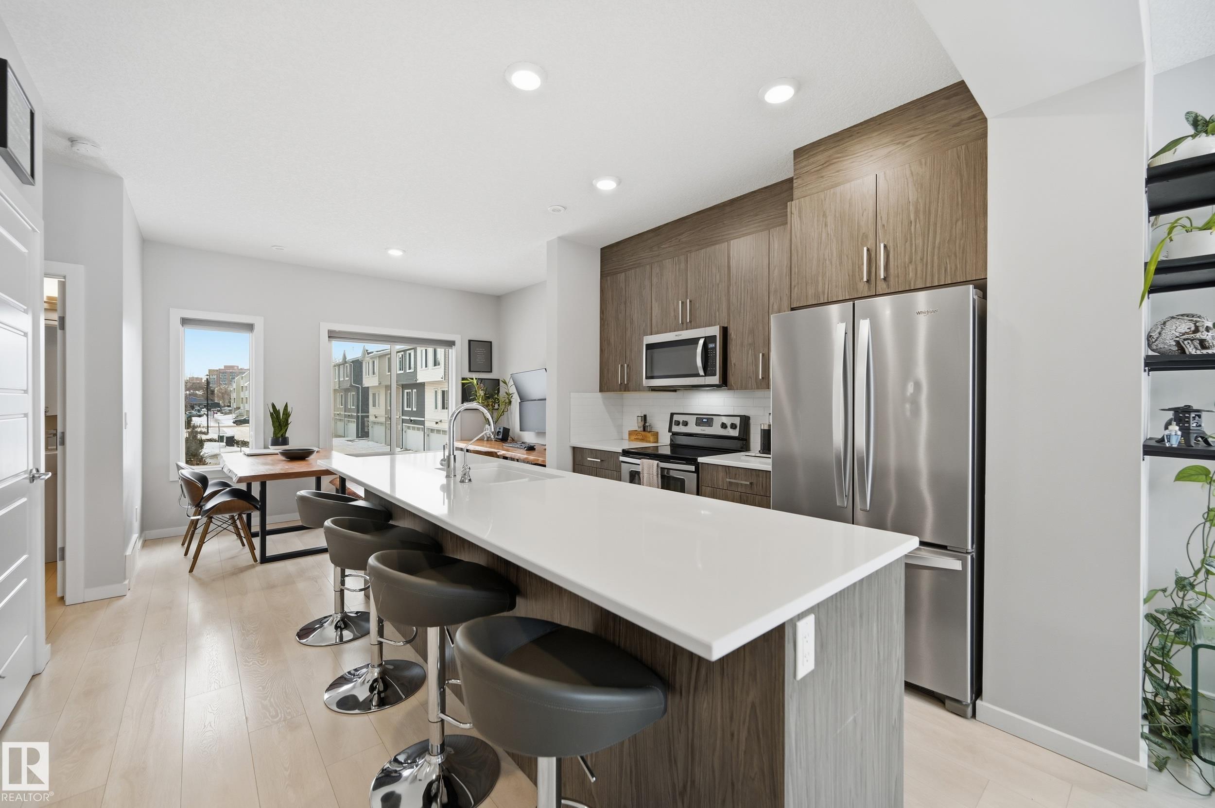 Welcome to this stylish corner-unit 3 bedroom townhouse built in 2018. Enjoy modern living in a quiet and convenient location. Facing an open field, this home enjoys added privacy and abundant natural light. The open-concept main floor features a bright living room, dining area, and a contemporary kitchen with stainless steel appliances, ample cabinetry, and dedicated pantry space. Upstairs, you'll find three well-proportioned bedrooms, including a spacious primary suite with a walk-in closet and private ensuite, plus an additional 4-piece bathroom. Additional highlights include a main-floor 2-piece bath and a double attached garage. Ideally located within walking distance to Century Park LRT, transit, schools, shopping, and parks, with easy access to major roadways