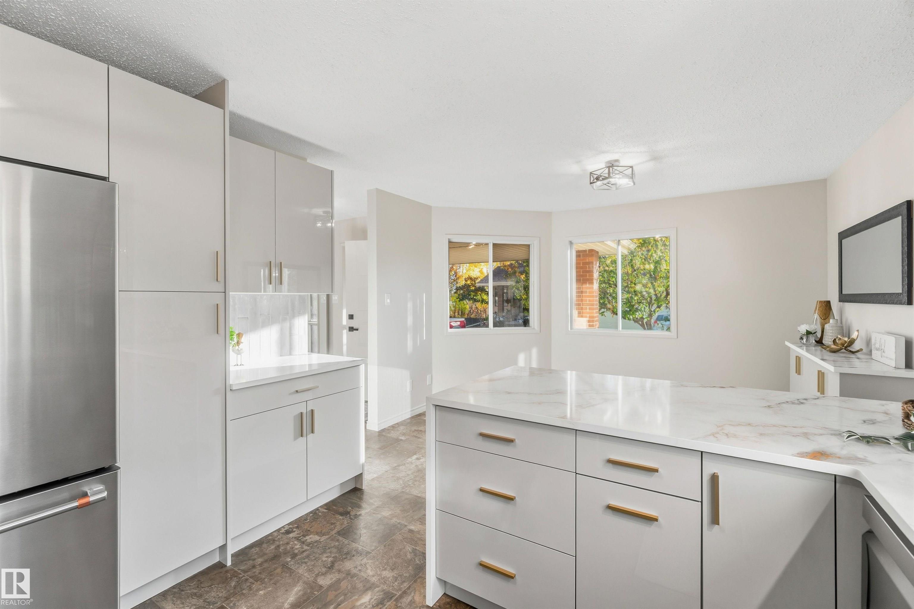 This stunning, adult-living bungalow in Edmonton's prestigious Riverbend community offers an unparalleled lifestyle where maintenance-free living meets ravine-side tranquility. Spanning over 1600 sq ft on the main floor, the spacious, open-concept design is perfect for entertaining and everyday comfort. The home features elegant hardwood flooring, a bright gourmet kitchen with quartz countertops, excellent stainless steel appliance and a cozy living room anchored by a gas fireplace. Main bathroom is the perfect SPA experience with a second bedroom. Escape to the expansive primary suite complete with a luxurious 3-piece ensuite and walk-in closet. The fully finished basement adds significant value and living space, offering a large family room, den, bar, 3 piece bath, and ample storage. Direct access from the double attached garage ensures ease and security year-round. Located just moments from essential amenities, premium golf courses, and the scenic River Valley.