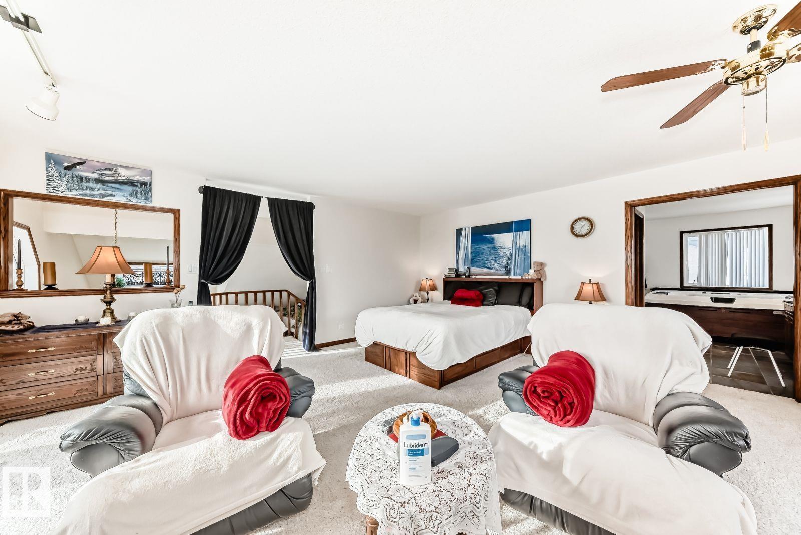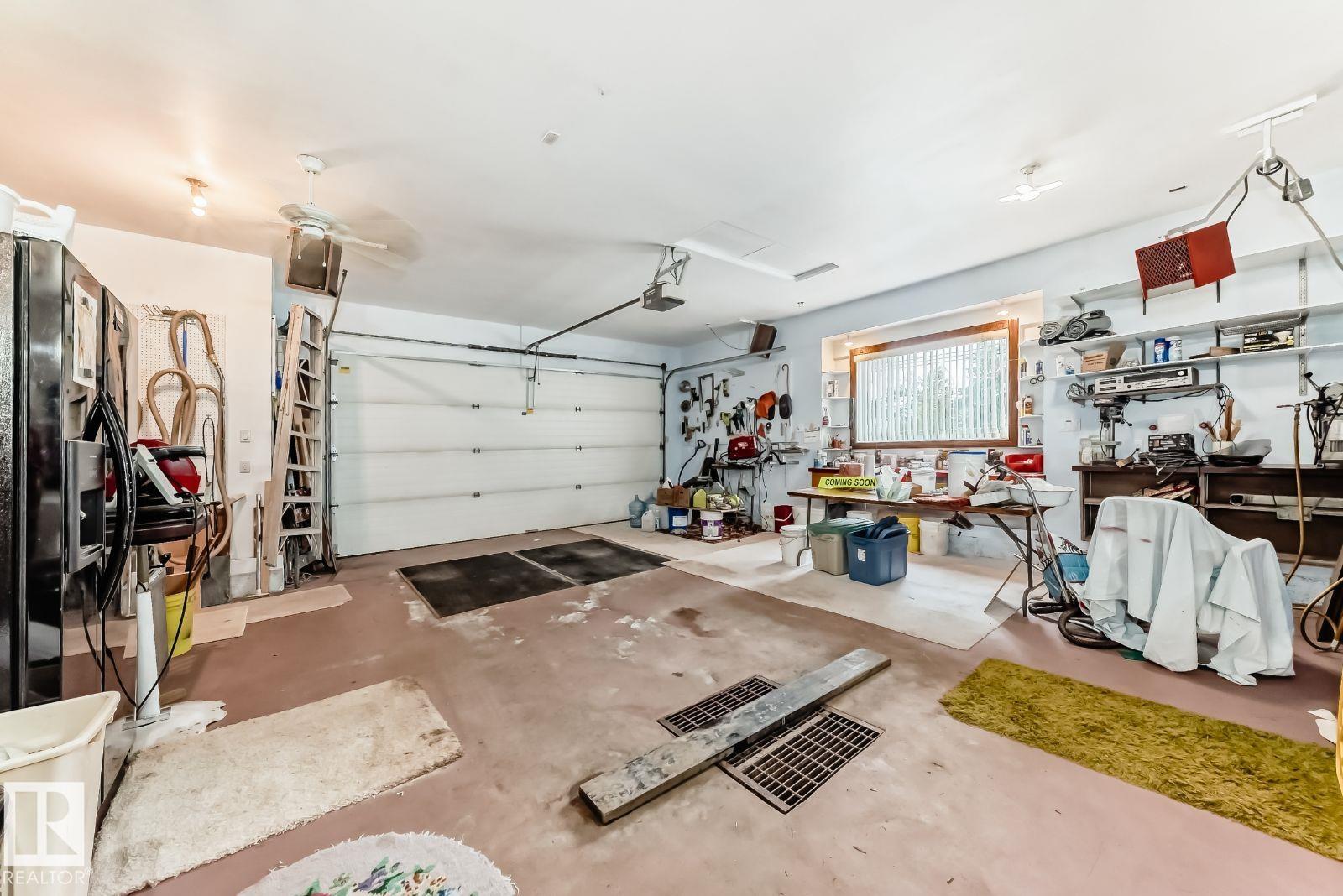 Custom-built 2,206 sqft 1.5 storey home with 1,400 sqft fully finished basement (potential of 2 bedrooms) and a 945 sqft 3+ car heated garage with 8' insulated doors and parking for 8 vehicles. Main floor offers open-concept kitchen, dining & family room, formal living, formal dining (could convert to bedroom), bedroom with 4pc bath, and pantry/laundry with extra fridge. Upstairs features a 520 sqft primary retreat with walk-in closet, 4pc ensuite, sitting area with gas fireplace & coffee bar, plus east-facing deck with park views. Basement includes rumpus room with kitchenette, bedroom, office (or bedroom), hobby room, 3pc bath, in-floor heat, sound-insulated ceiling & storage. Garage fully insulated (incl. floor) with 220V, hot/cold water, floor drain & natural gas hookup. Home highlights: central A/C with ducting for summer cooling and winter fresh air to keep basement dry, spa-inspired ensuite with steam shower, laundry chute, 2 decks, professional landscaping, quiet park location with ample wildlife.