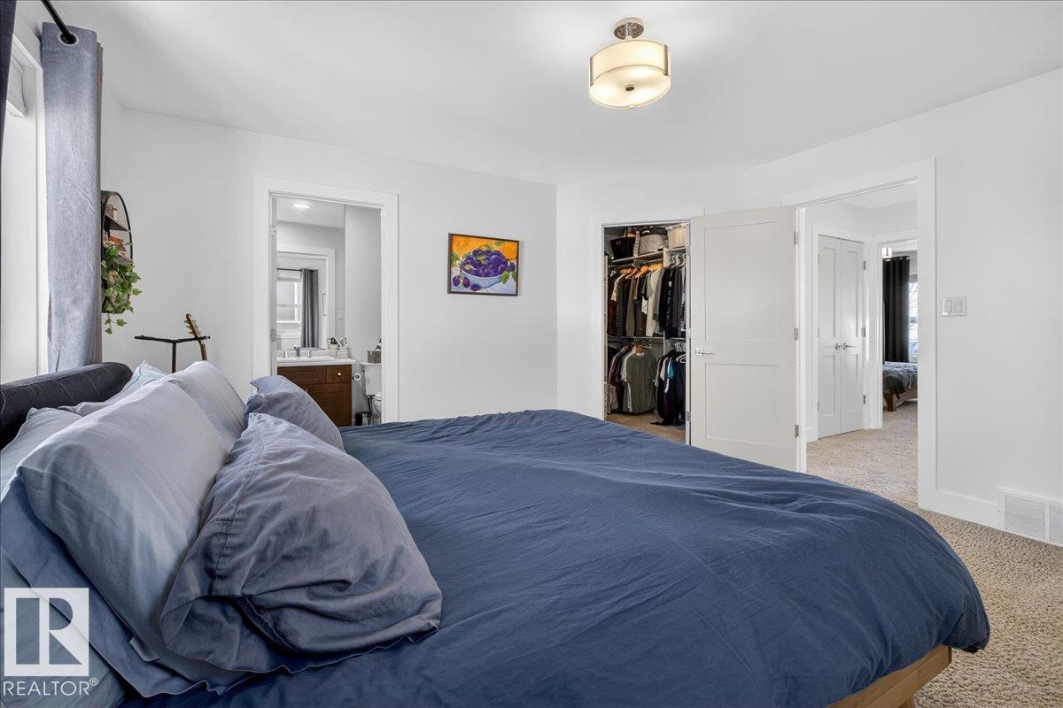 AIR CONDITIONED, 2012 built, fully finished half duplex with a double detached garage located in the well-established community of Canora. Offering 1470 sq ft, 3 bedrooms (2+1), 3.5 full bathrooms & a fully finished basement with a separate side exterior entrance. The main floor features gorgeous maple hardwood floors, a spacious eat-in kitchen with loads of rich cabinets, a pantry, a large island with bright quartz counter tops, stainless steel appliances, a half bathroom, and a gas fireplace in the living room. There are two bedrooms upstairs, each with their own ensuite bathroom. There is also upstairs laundry. The basement offers a large rec room, with a stylish bar & beverage cooler, a 3rd bedroom with loads of storage and a 3rd full bathroom. The fenced back yard has a great deck and good size yard with a veggie garden, great for enjoying the summers. This home is tastefully designed and move in ready.