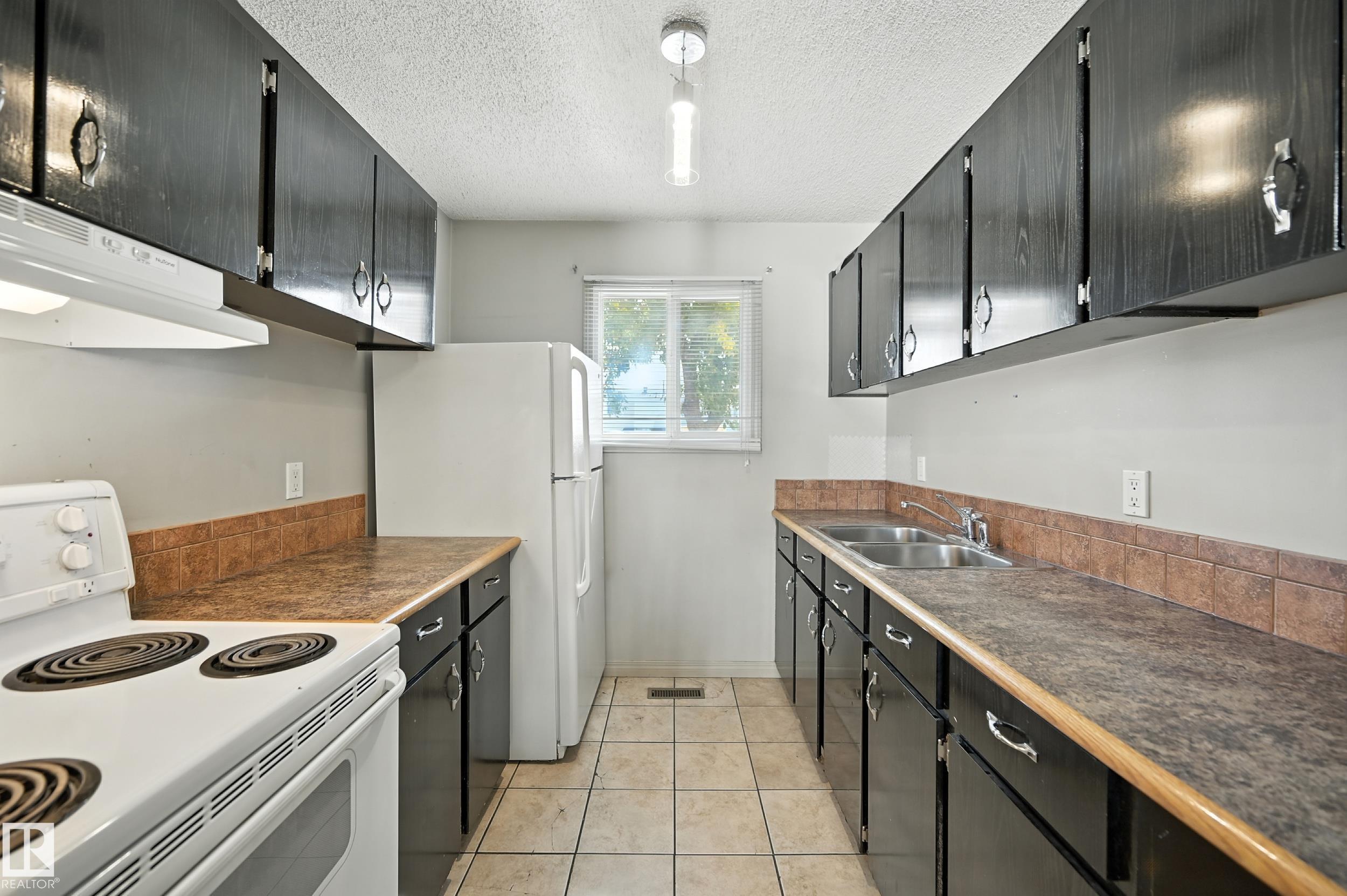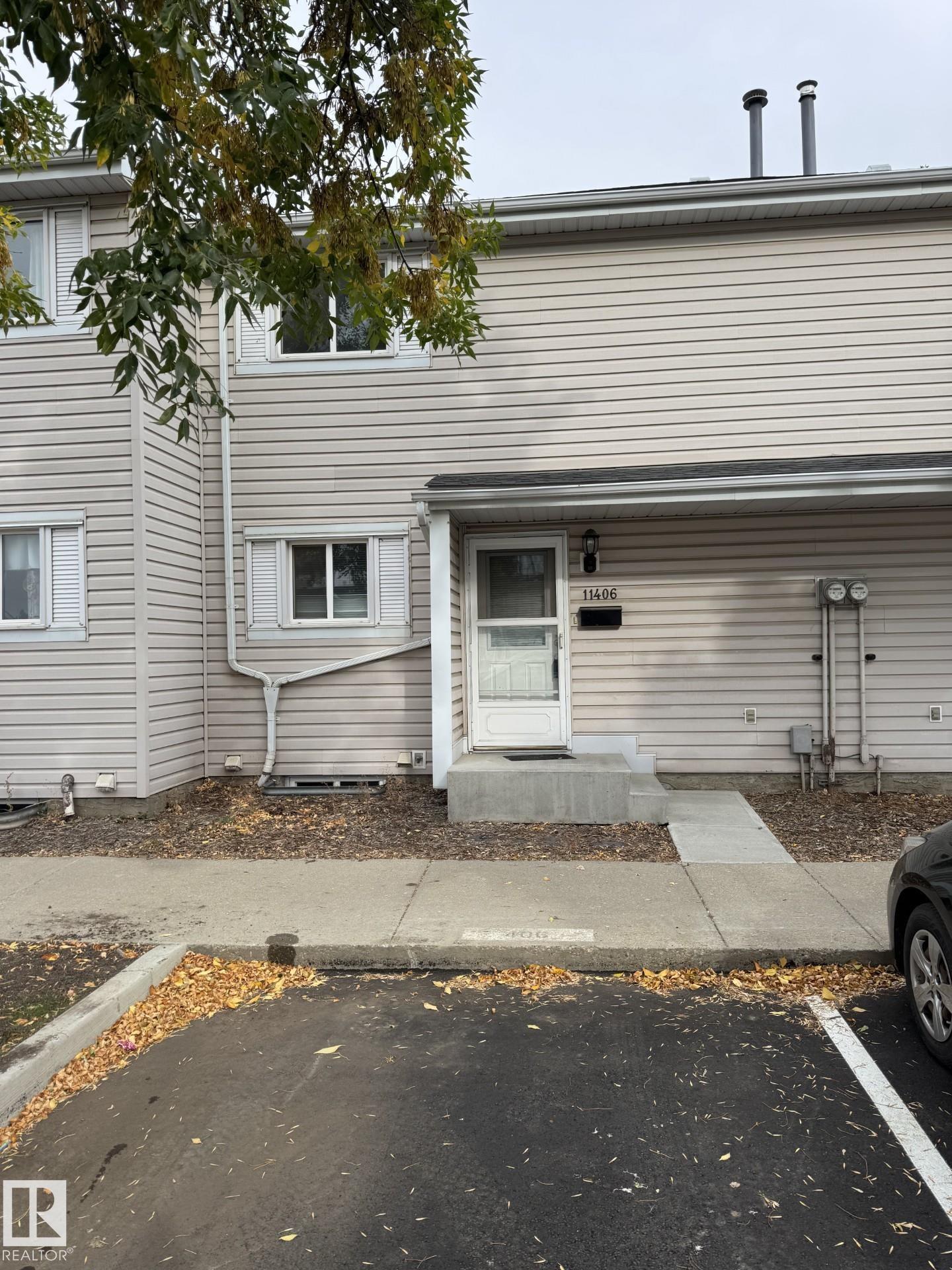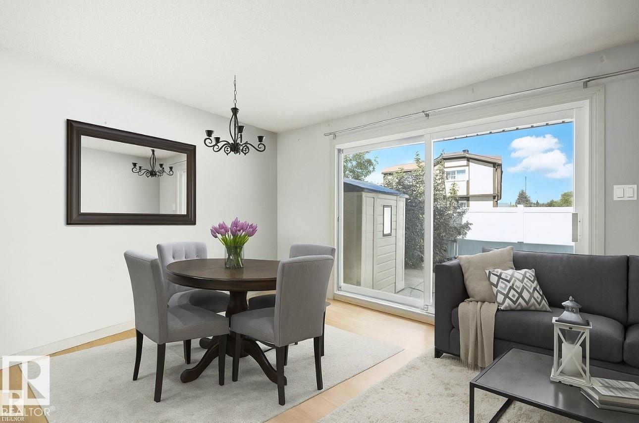 Gorgeous Townhome with Elegant Living Spaces. This beautifully maintained townhome offers 990 sqft of elegant living with 3 beds and 1.5 baths. Featuring stunning curb appeal with a modern vinyl exterior, this home welcomes you with an inviting front entry leading into a spacious and bright living area. The chef's kitchen impresses from every angle, showcasing tasteful finishes, painted cabinetry, tile flooring, and a functional island bar. Upstairs, you'll find three generous bedrooms and a full bathroom designed for comfort and practicality. The fully finished basement expands your living space perfect for entertaining or relaxing and includes a large family room and a dedicated laundry area. Step outside to your fully fenced private backyard, with a cement pad ideal for a patio set or BBQ area, plus a storage shed for added convenience. Parking is a breeze with your stall right in front of the unit, along with plenty of visitor parking nearby. Located in a prime area close to schools and parks.