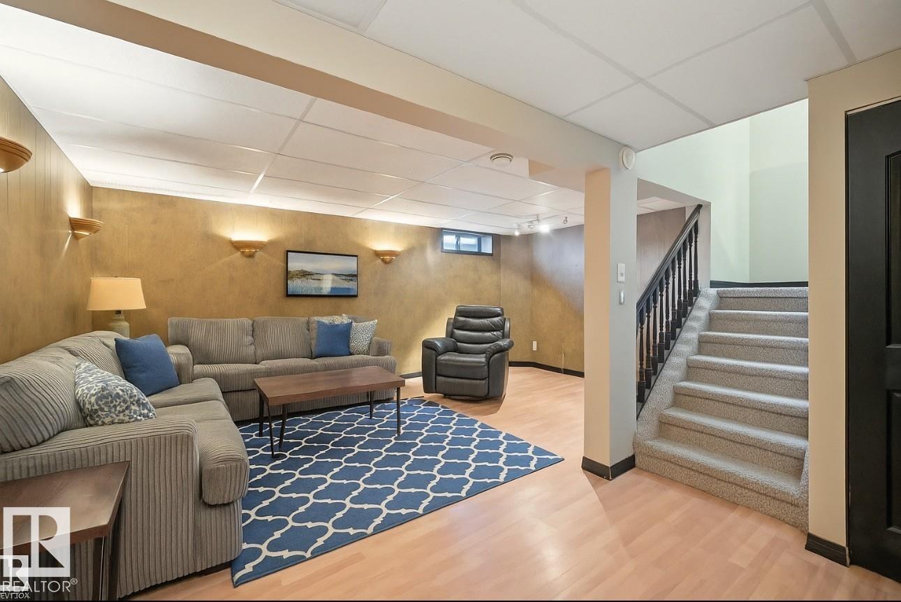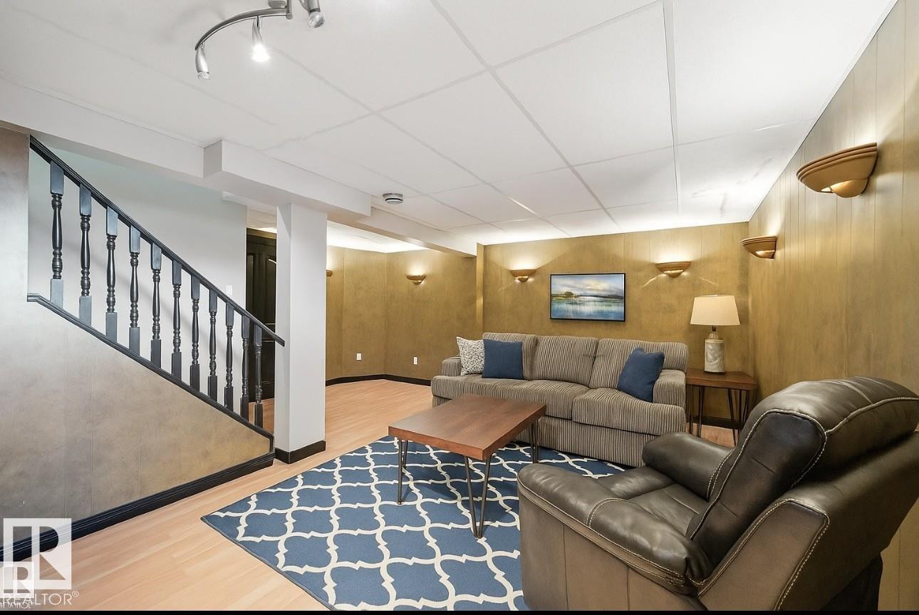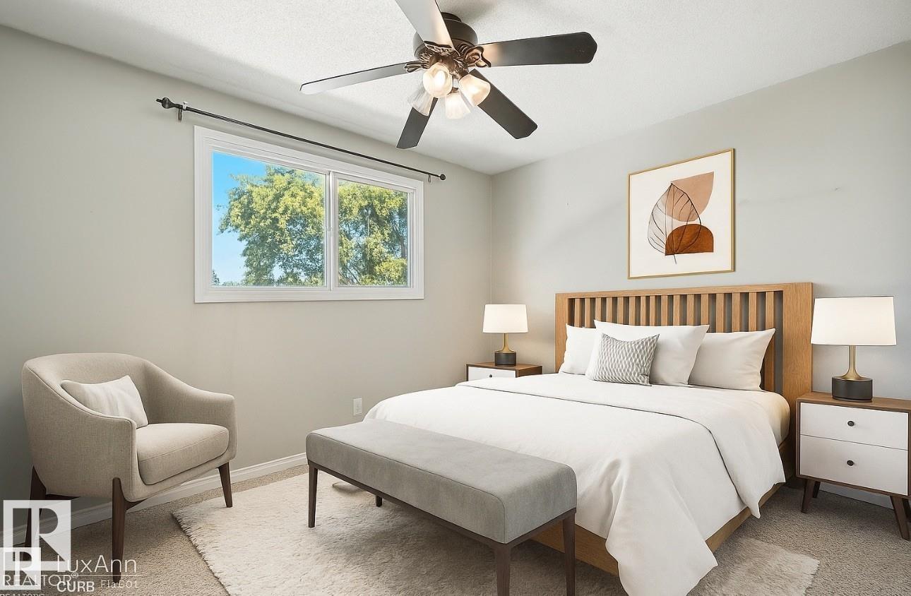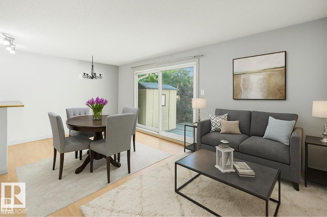 Gorgeous Townhome with Elegant Living Spaces. This beautifully maintained townhome offers 990 sqft of elegant living with 3 beds and 1.5 baths. Featuring stunning curb appeal with a modern vinyl exterior, this home welcomes you with an inviting front entry leading into a spacious and bright living area. The chef's kitchen impresses from every angle, showcasing tasteful finishes, painted cabinetry, tile flooring, and a functional island bar. Upstairs, you'll find three generous bedrooms and a full bathroom designed for comfort and practicality. The fully finished basement expands your living space perfect for entertaining or relaxing and includes a large family room and a dedicated laundry area. Step outside to your fully fenced private backyard, with a cement pad ideal for a patio set or BBQ area, plus a storage shed for added convenience. Parking is a breeze with your stall right in front of the unit, along with plenty of visitor parking nearby. Located in a prime area close to schools and parks.