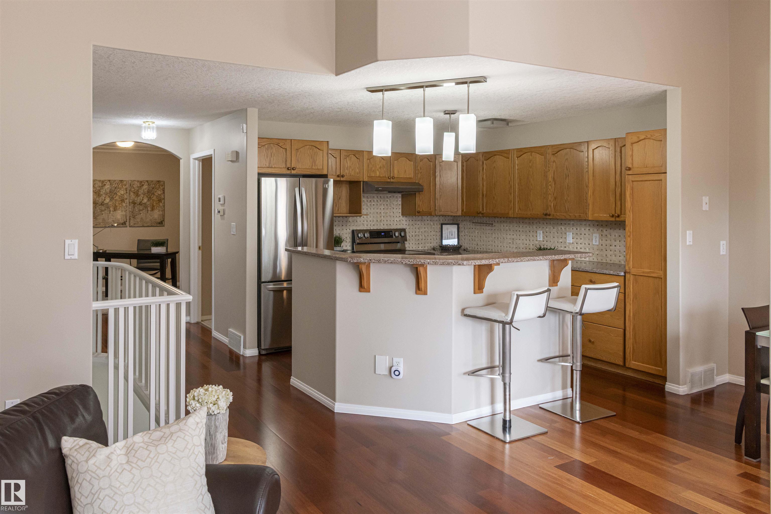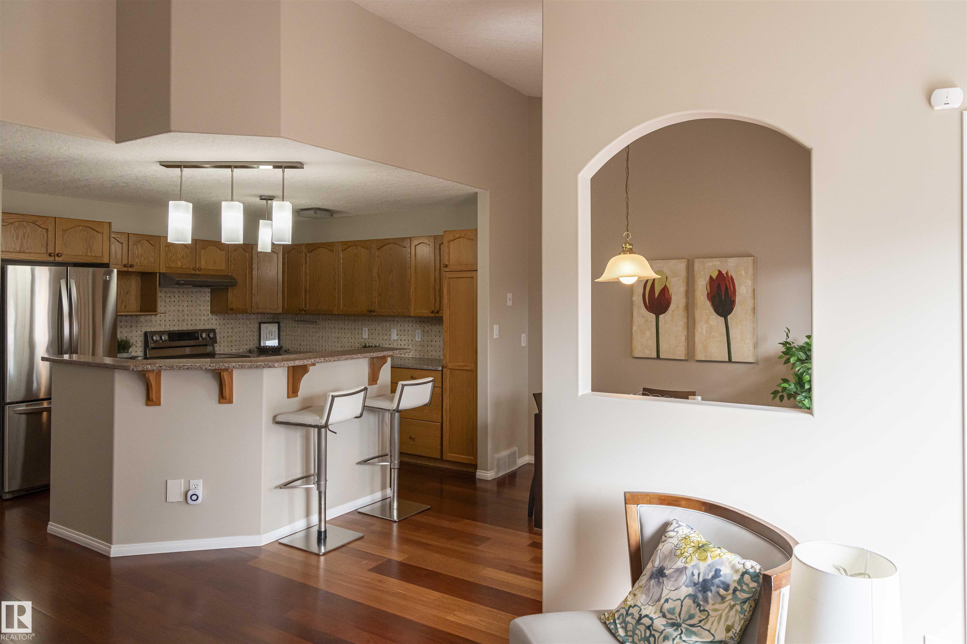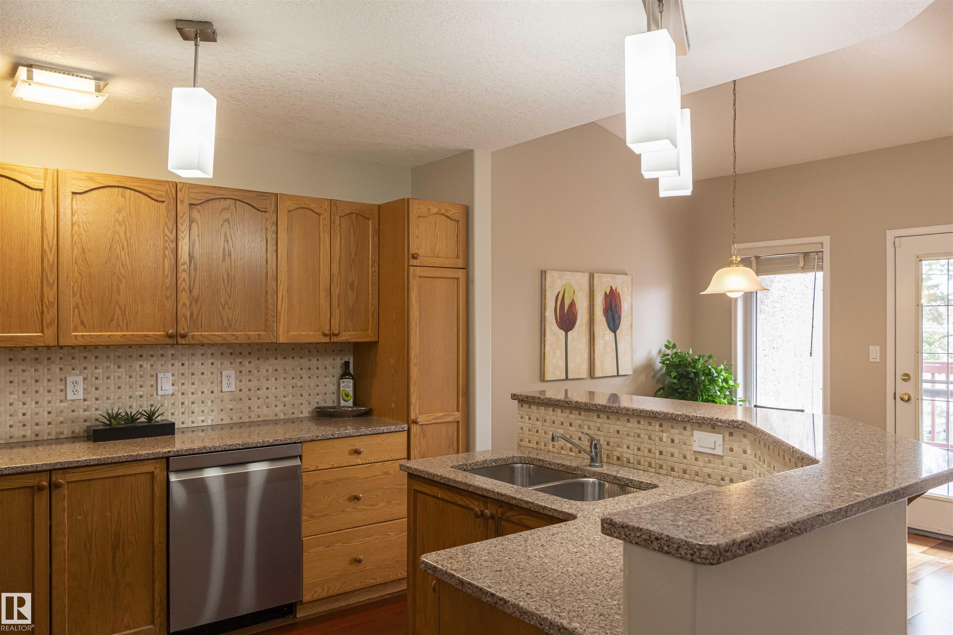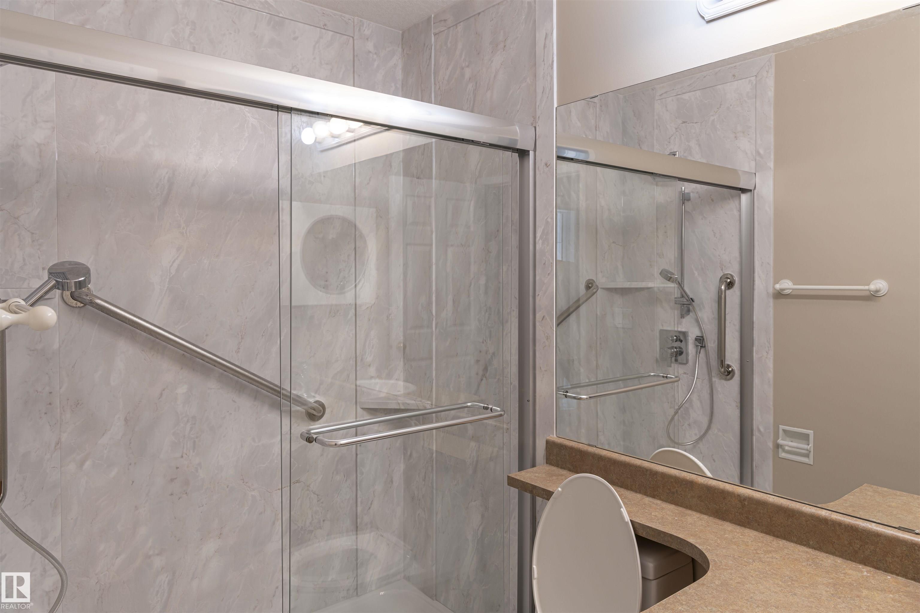 THIS IS THE ADULT WALK-OUT BUNGALOW YOU HAVE BEEN WAITING FOR! In desired Carter Crest, this OUTSTANDING 2+1 Bedroom half-duplex with a finished basement provides over 2,500 square feet of maintenance free living in the adult (18+) complex of FREEDOM ESTATES. The main floor features a great kitchen, Cambria quartz counters, a center island with eating bar, a large family room with a Gas Fireplace, and VAULTED CEILINGS that create a true feeling of space! Other highlights include a HUGE master bedroom with a luxury ensuite, a second bedroom, hi-end HARDWOOD FLOORING, A/C, a flex space for a dining room or den, another full bathroom, main floor laundry, is NEWLY PAINTED, PLUS...one of the LARGEST DECKS in the complex. The finished walk-out basement includes a Recreation room with 2nd fireplace, the 3rd bedroom, and a LARGE storage area. In this prime RIVERBEND location, you are within close proximity to shopping, the Terwillegar REC. CENTER and have easy access to Downtown & both Freeways. THIS IS THE ONE!