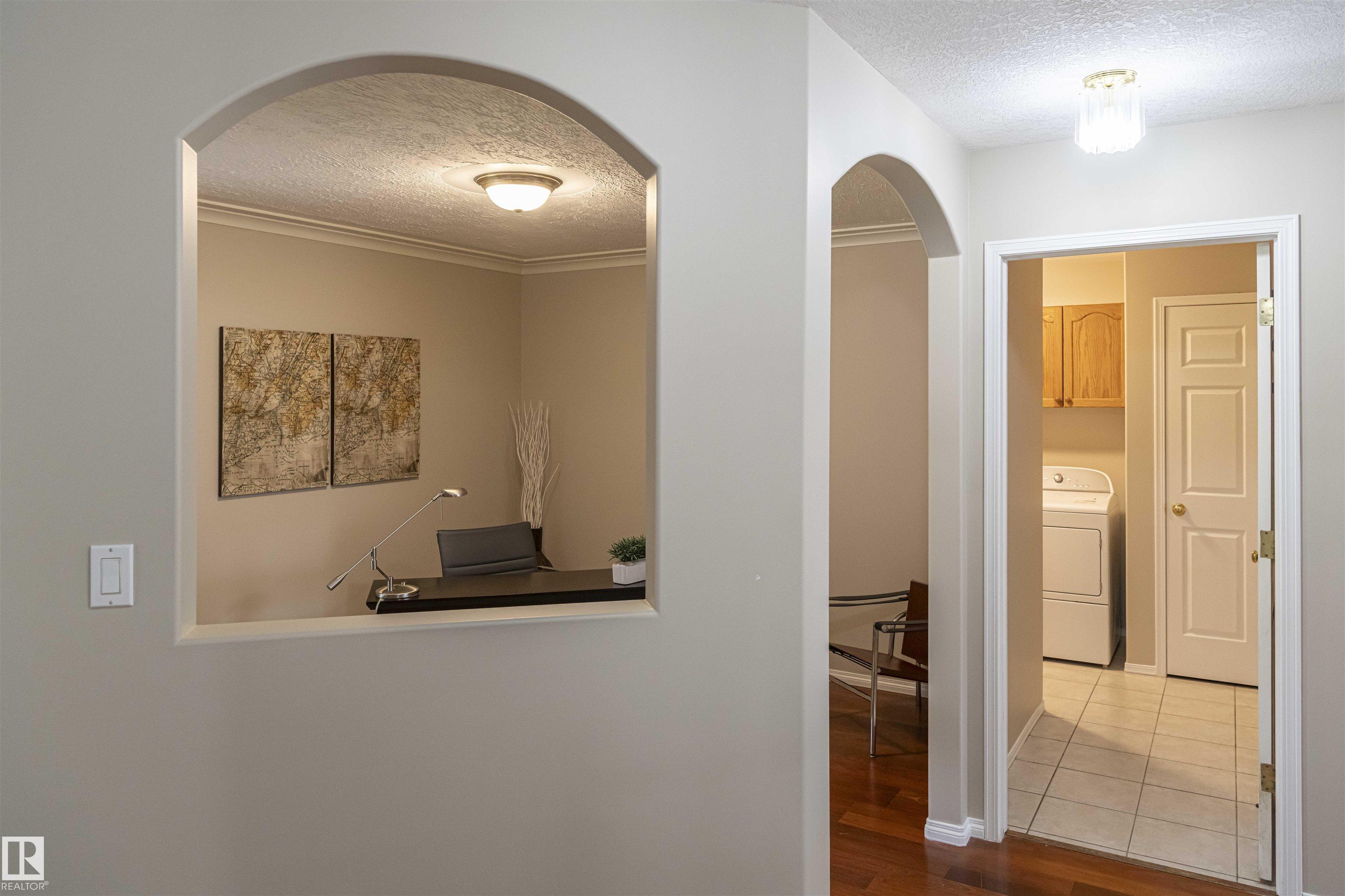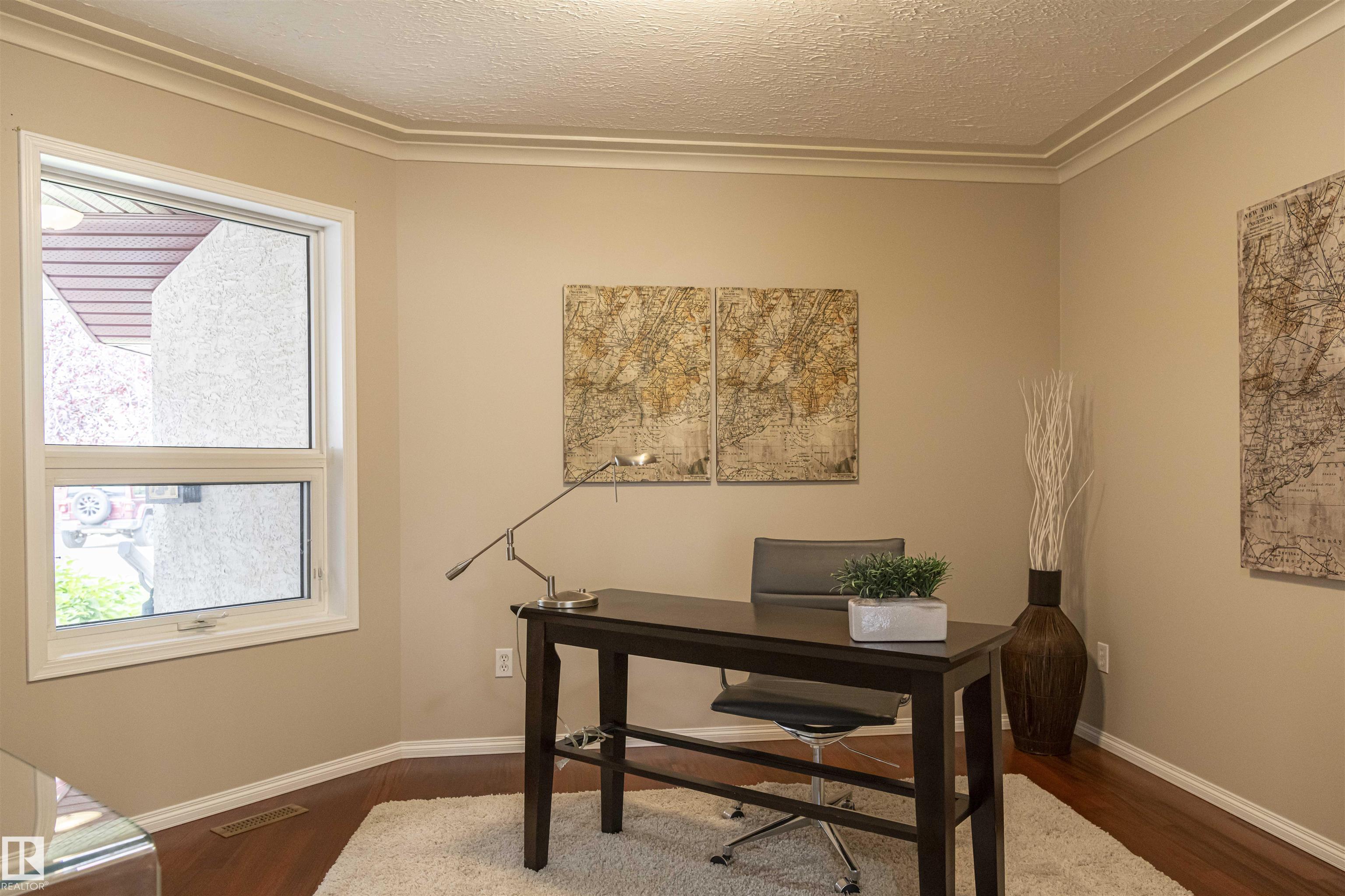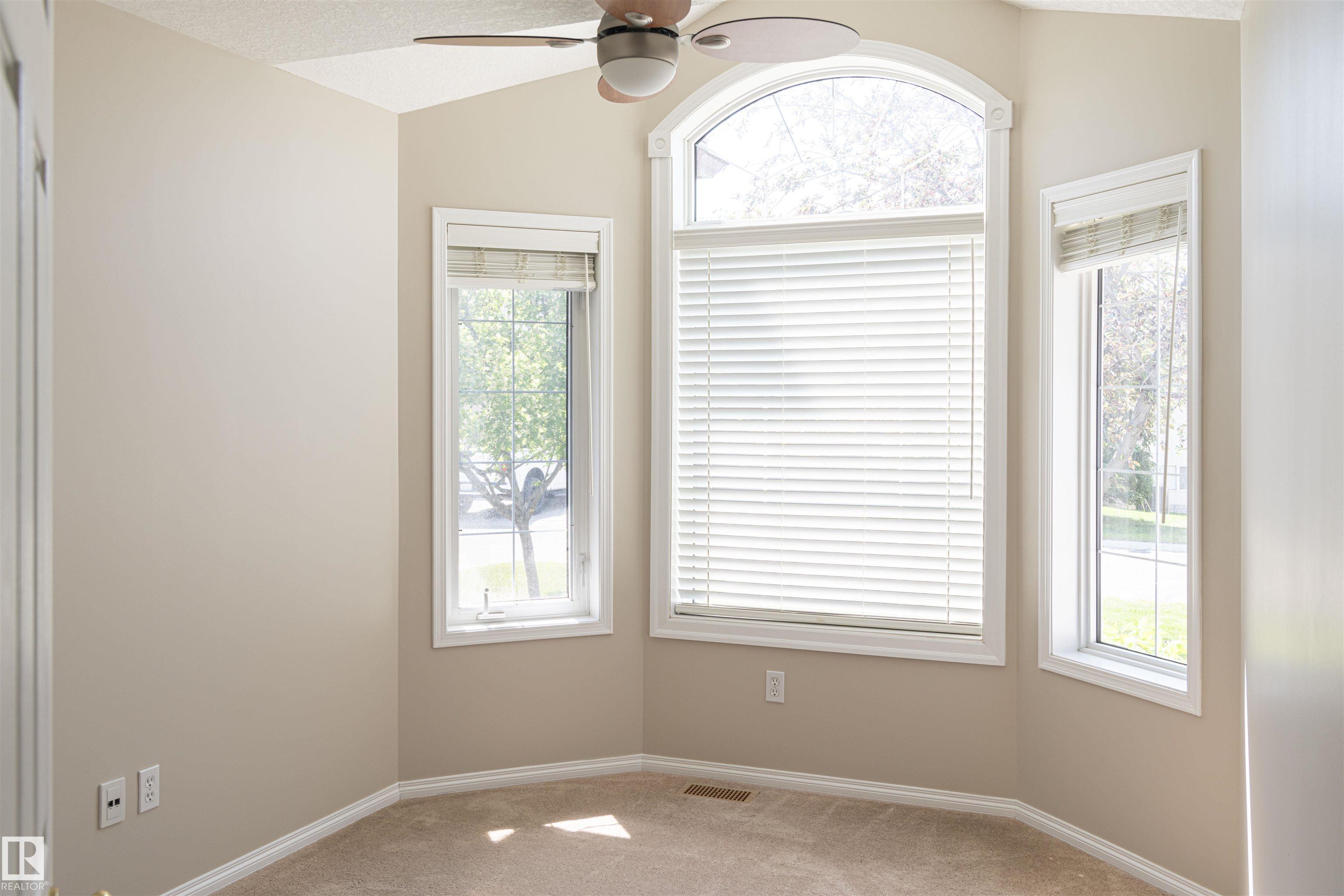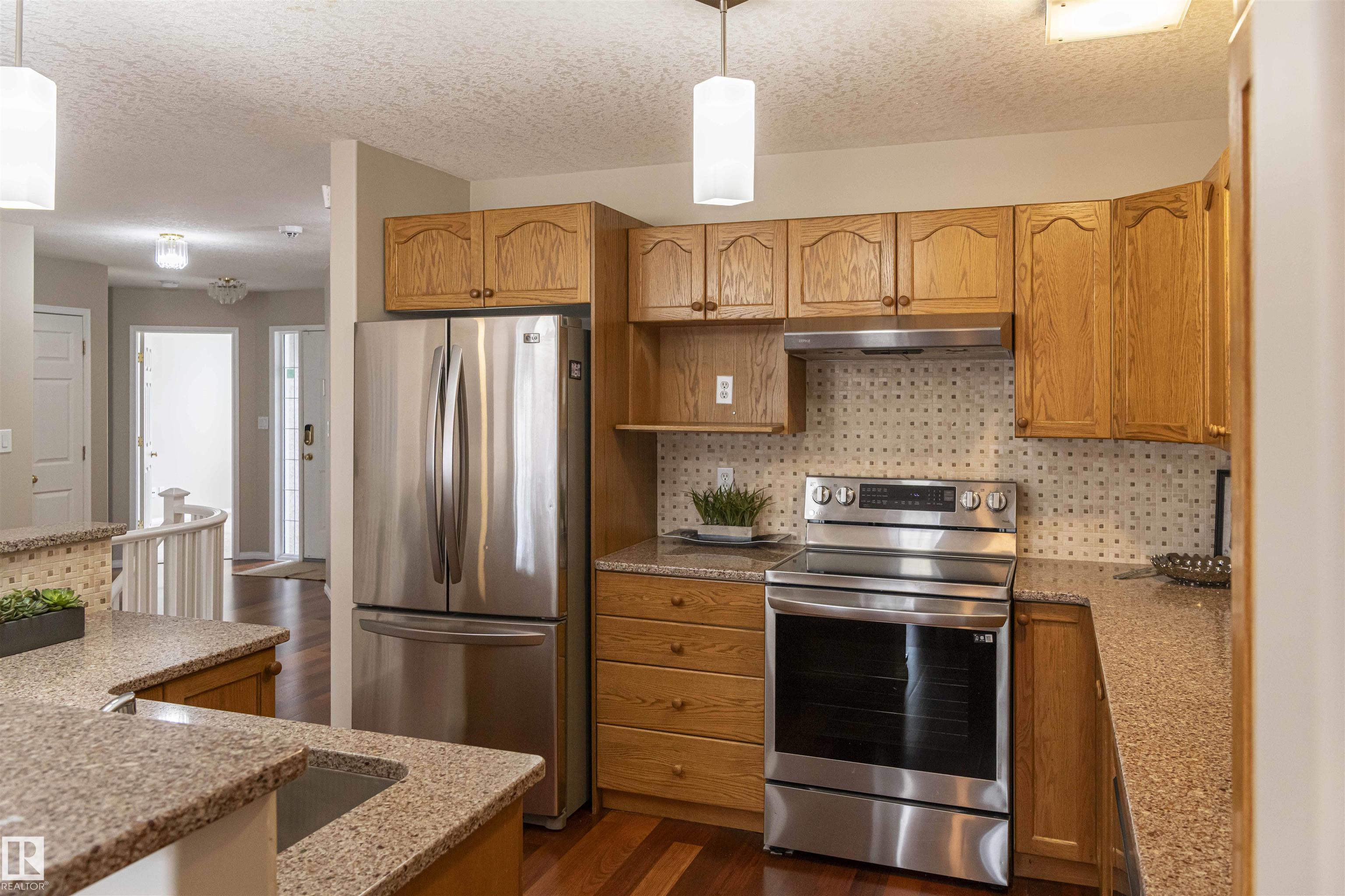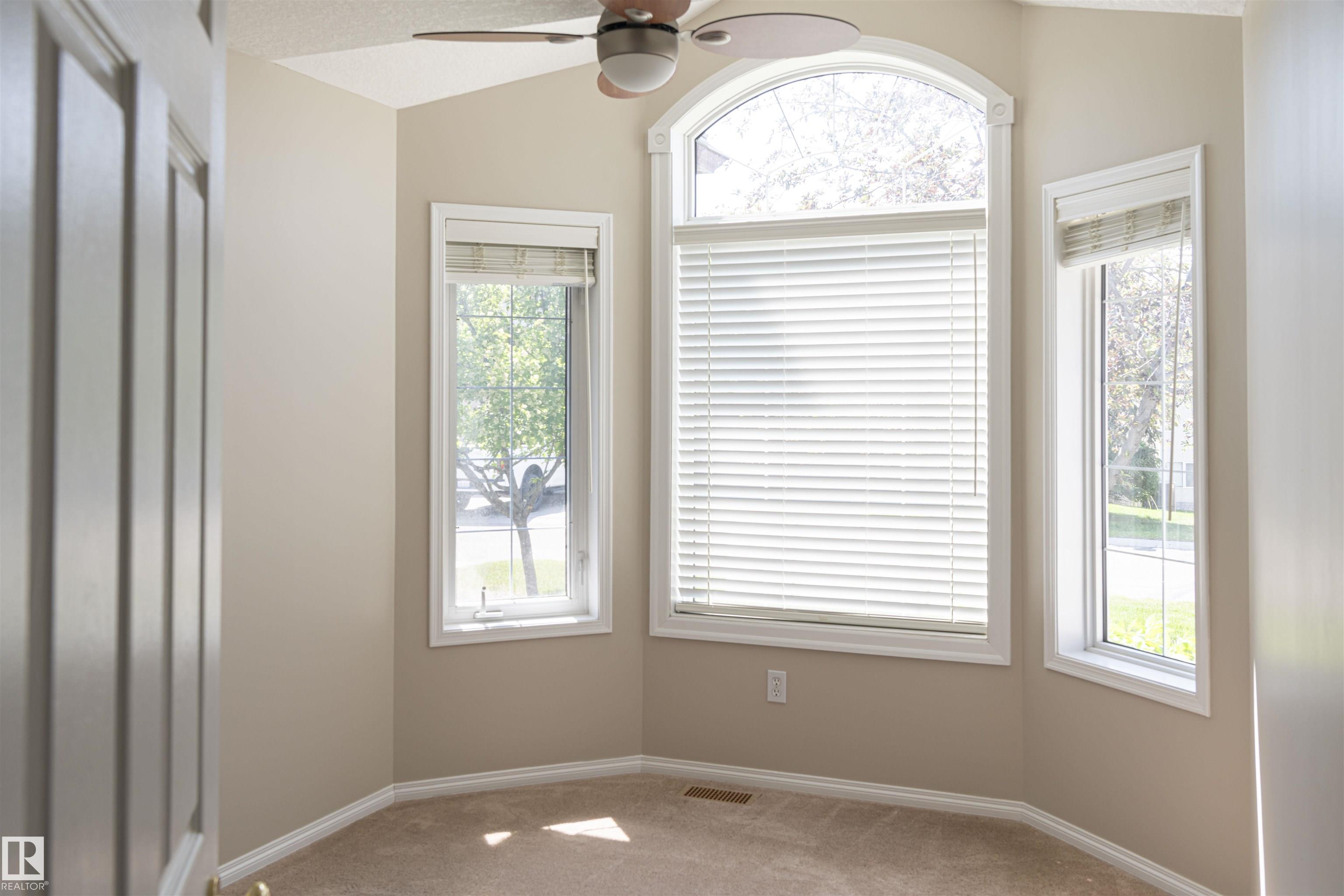 THIS IS THE ADULT WALK-OUT BUNGALOW YOU HAVE BEEN WAITING FOR! In desired Carter Crest, this OUTSTANDING 2+1 Bedroom half-duplex with a finished basement provides over 2,500 square feet of maintenance free living in the adult (18+) complex of FREEDOM ESTATES. The main floor features a great kitchen, Cambria quartz counters, a center island with eating bar, a large family room with a Gas Fireplace, and VAULTED CEILINGS that create a true feeling of space! Other highlights include a HUGE master bedroom with a luxury ensuite, a second bedroom, hi-end HARDWOOD FLOORING, A/C, a flex space for a dining room or den, another full bathroom, main floor laundry, is NEWLY PAINTED, PLUS...one of the LARGEST DECKS in the complex. The finished walk-out basement includes a Recreation room with 2nd fireplace, the 3rd bedroom, and a LARGE storage area. In this prime RIVERBEND location, you are within close proximity to shopping, the Terwillegar REC. CENTER and have easy access to Downtown & both Freeways. THIS IS THE ONE!