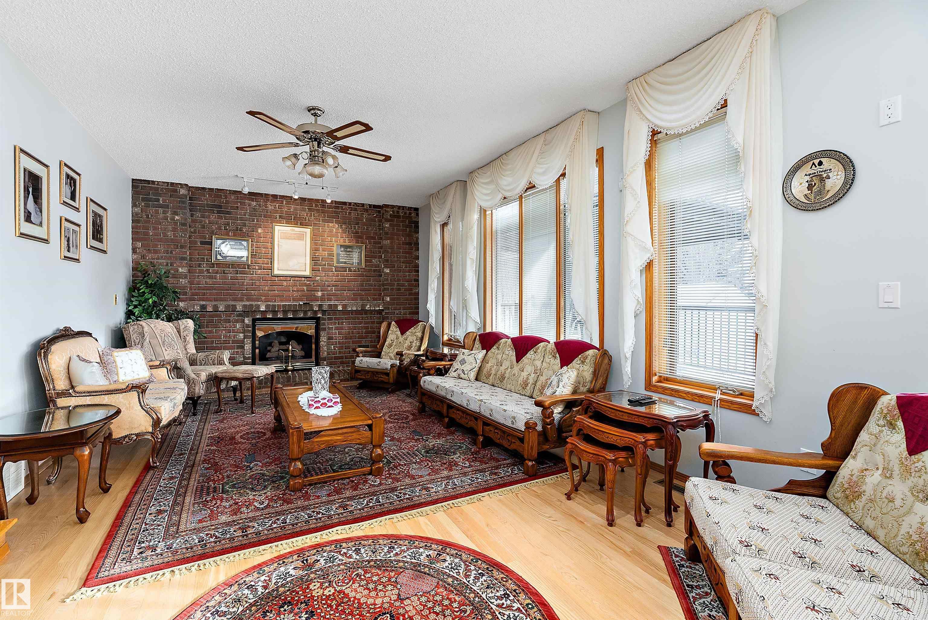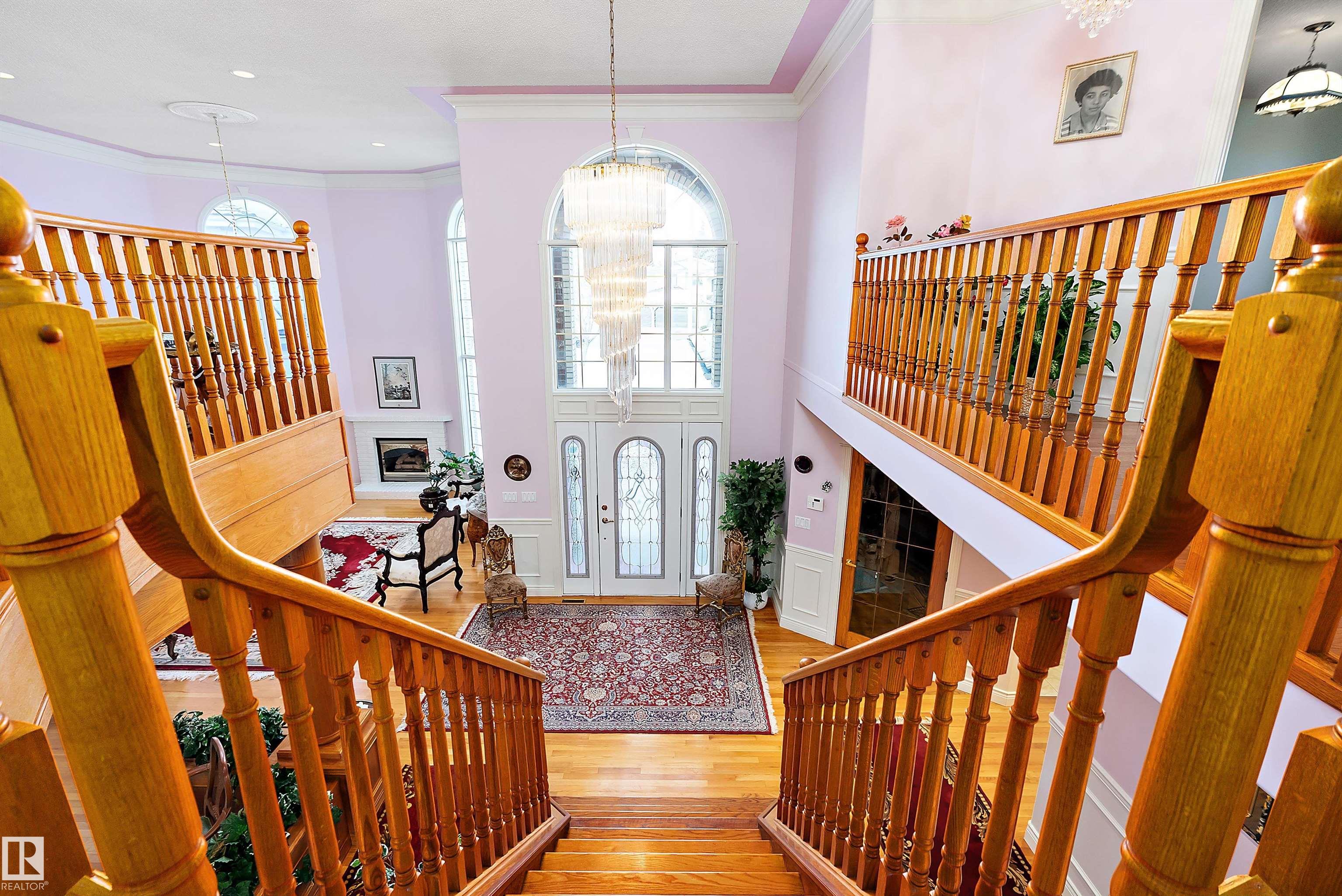Beautiful and elegant. This custom built, brick exterior, 3840 sqft home located in the highly desired community of Carter Crest has so much to offer. Royal and Grand from the moment you enter, greeted by the wide open hardwood central staircase. Main floor features a cozy family room with gas fireplace, den/office, massive formal living room with high ceilings, large windows, and another gas fireplace, plus a formal dining area with chandelier. Massive kitchen and nook provide ample cabinetry and counter space. Patio door from the kitchen leads out to the new deck and massive backyard. Hardwood and tile flooring throughout the main level. Upstairs includes four bedrooms plus a bonus/loft area. Primary bedroom with five-piece ensuite and walk-in closet. Hardwood floors throughout the upstairs level. Updates include roof replaced approx. 6 years ago a new furnace (2025) and new backyard deck. Double attached heated garage. Massive private backyard, south-facing and backing onto green space.