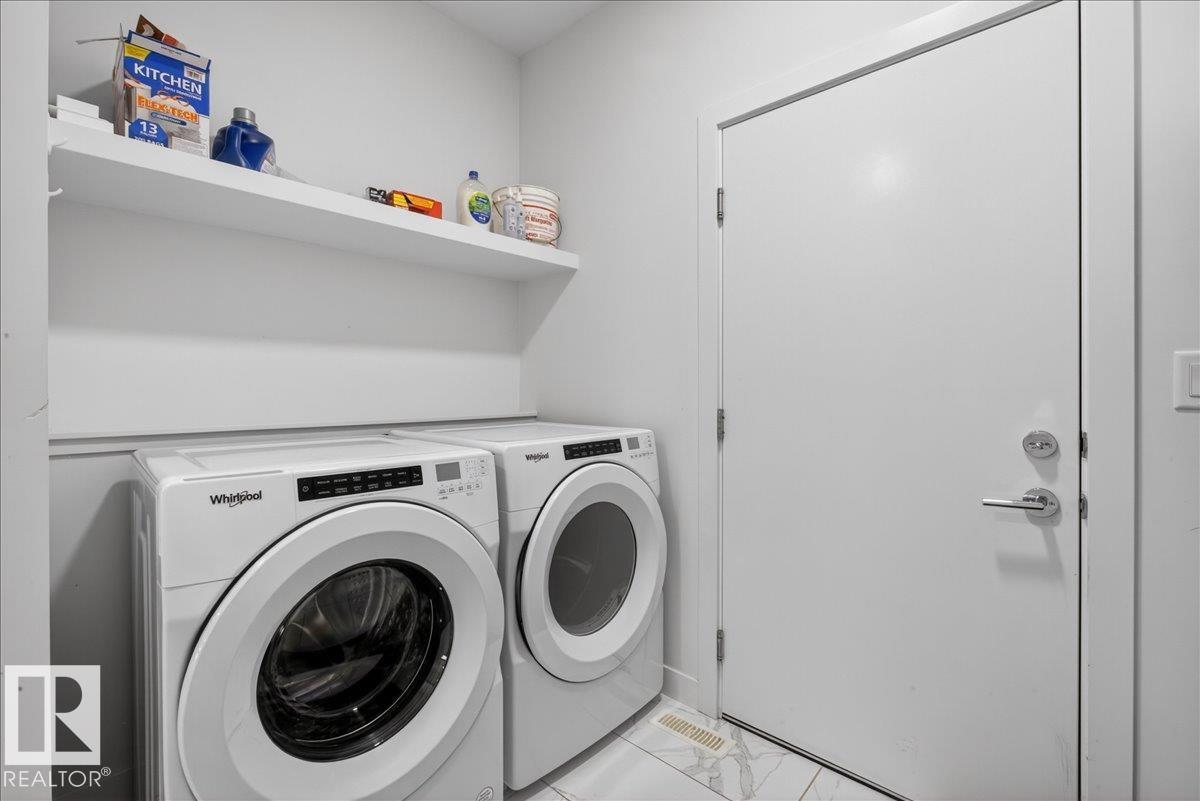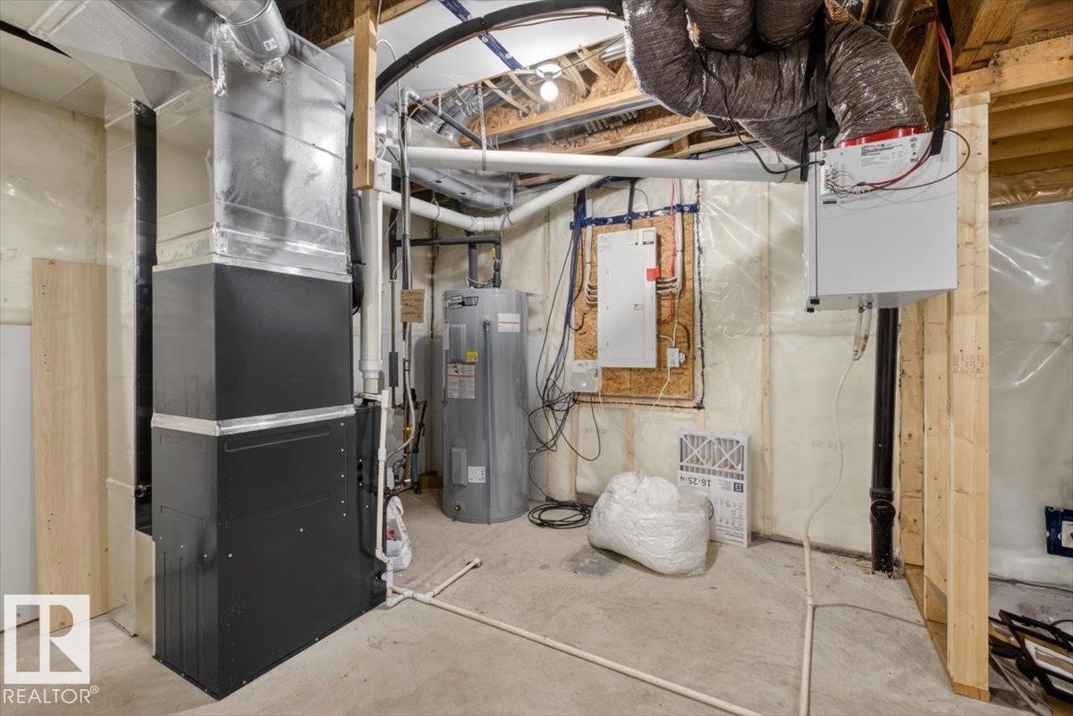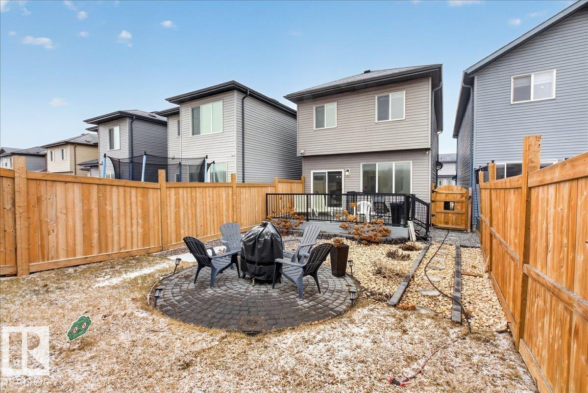 Welcome to Cavanagh! This bright and stylish 2-story home offers 3 bedrooms, 2.5 bathrooms, and thoughtful upgrades throughout. The modern kitchen features stainless steel appliances, upgraded quartz countertops, and a beautiful backsplash, opening to a warm and inviting living area with an electric fireplace and soaring 9-ft ceilings. Upgraded railings and shelving add refined finishing touches throughout. The spacious primary bedroom includes a private 3-pc ensuite for added comfort. Step outside to a professionally landscaped backyard with a composite deck, aluminum railings, and a dedicated fire pit area, perfect for relaxing or entertaining. The fully finished, insulated double-attached garage offers year-round convenience, and the Central A/C keeps the home comfortable all summer long. Located in the sought-after, family-friendly community of Cavanagh, you are just minutes from parks, schools, and everyday amenities.