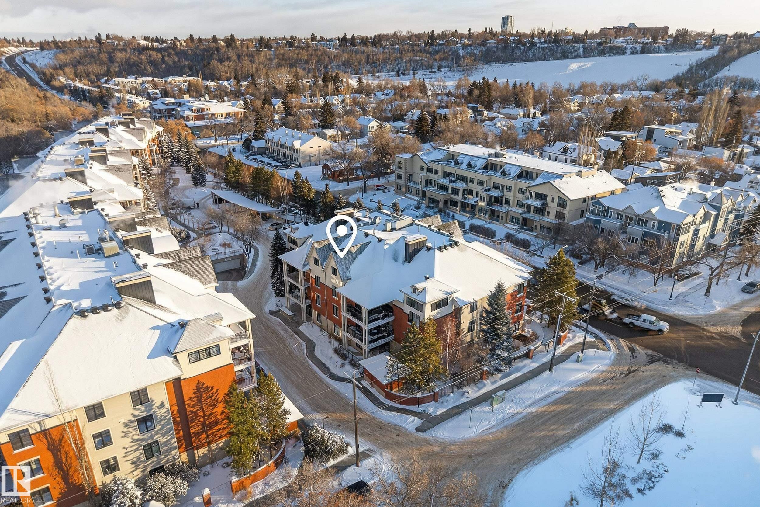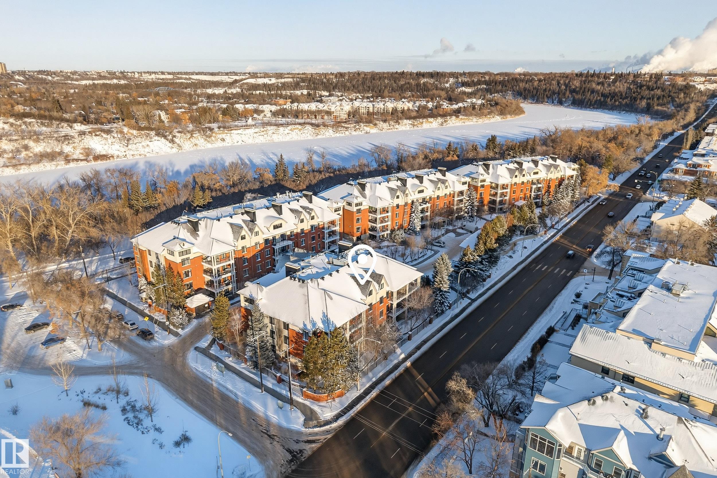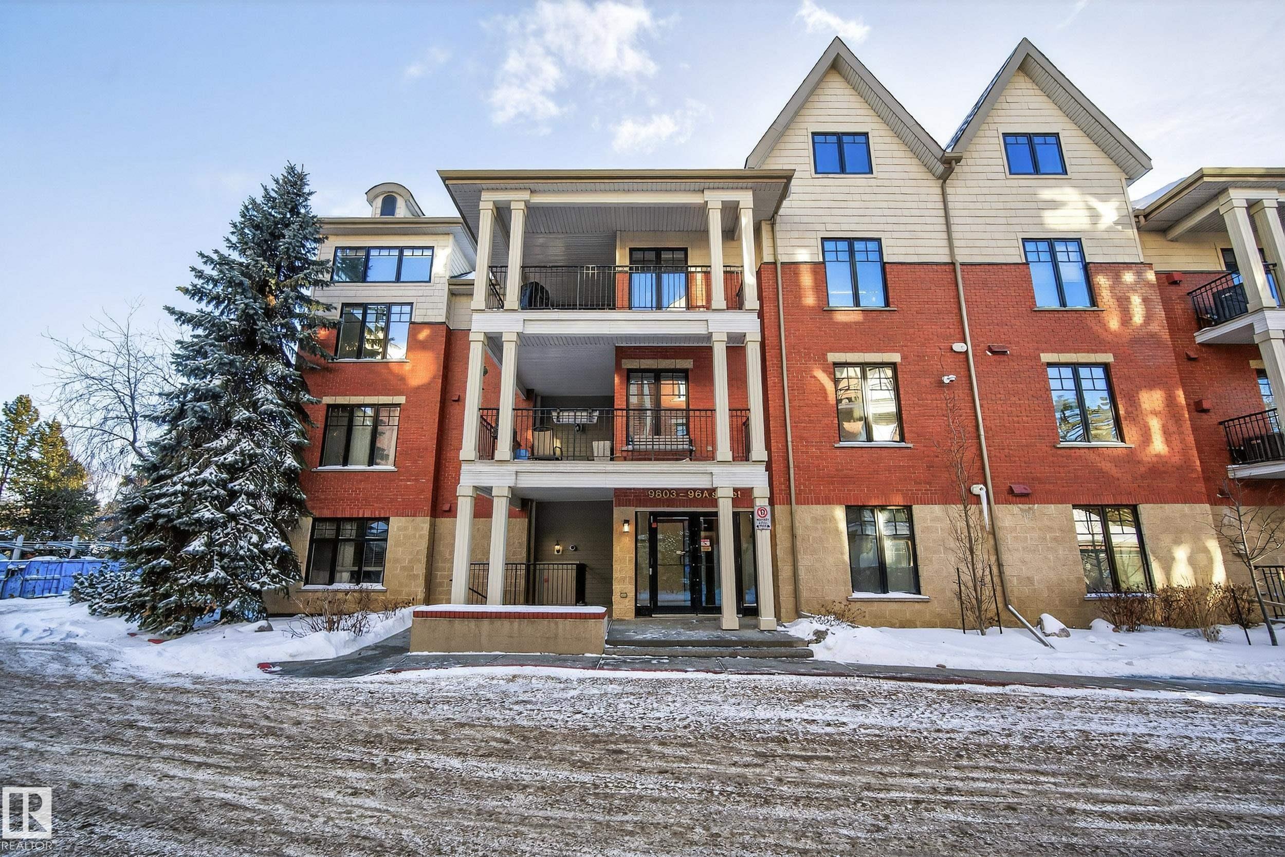 Welcome to this well-designed main floor condo located in the desirable Cloverdale River Valley area. Step into a welcoming foyer that opens into a bright and spacious living room featuring a cozy fireplace and large windows that fill the space with natural light. Enjoy easy access to your private balcony, perfect for morning coffee or evening relaxation. The open-concept layout flows into a dedicated dining area and a functional kitchen offering ample cabinetry, great counter space, and a pantry, ideal for both everyday living and entertaining. Down the hall, you'll find a generous secondary bedroom, a full bathroom, and convenient in-suite laundry. The spacious primary bedroom features a walk-in closet and a private ensuite, creating a comfortable and relaxing retreat. Located just minutes from downtown, river valley trails, parks, and local amenities, this home offers comfort, functionality, and an unbeatable central location.