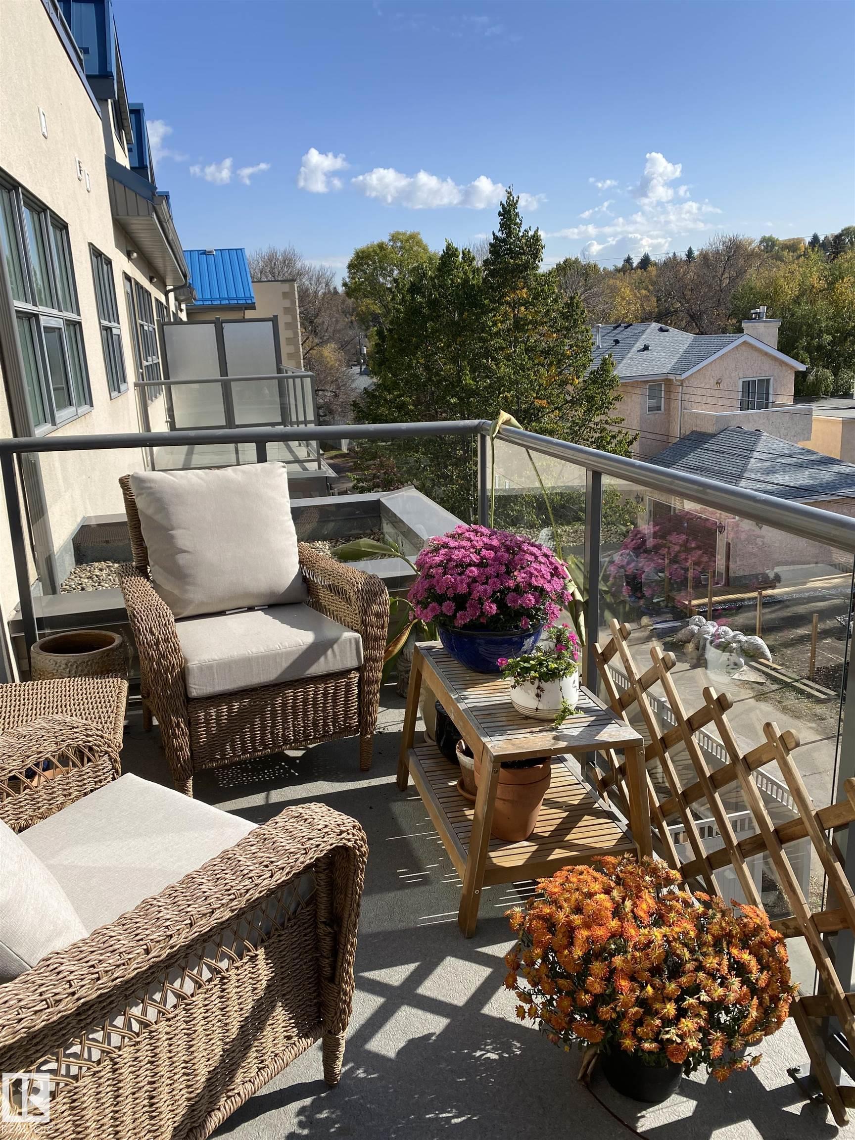 Perched on the top floor with a desirable corner unit, this refined 2 bed, 2 bath residence in Waterside Estates delivers a balance of urban convenience and natural surroundings. Sunlight pours through the south facing windows, enhancing the open-concept layout while offering a polished feel throughout. The spacious primary bedroom is thoughtfully designed to accommodate a king-sized bed and seating area, complete with a 6-pc ensuite featuring double sinks, generous counter space, and a walk-in closet. A second bedroom and full bath provide flexibility for guests, a home office, or shared living. New cork flooring adds warmth and continuity across the unit, while in-suite laundry, private balcony, and access to a car wash bay elevate everyday comfort. Extensive building upgrades including new windows, balconies, and energy-efficient exterior. Steps from River Valley trails, the LRT, Muttart and minutes to downtown, this is effortless city living with unmatched access to nature, culture, and connectivity.