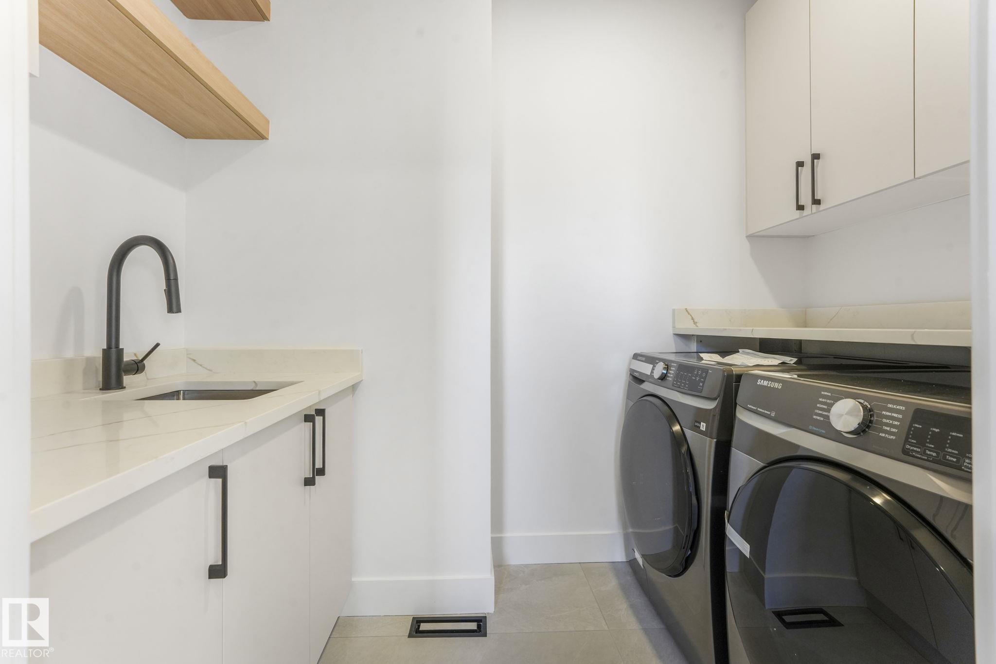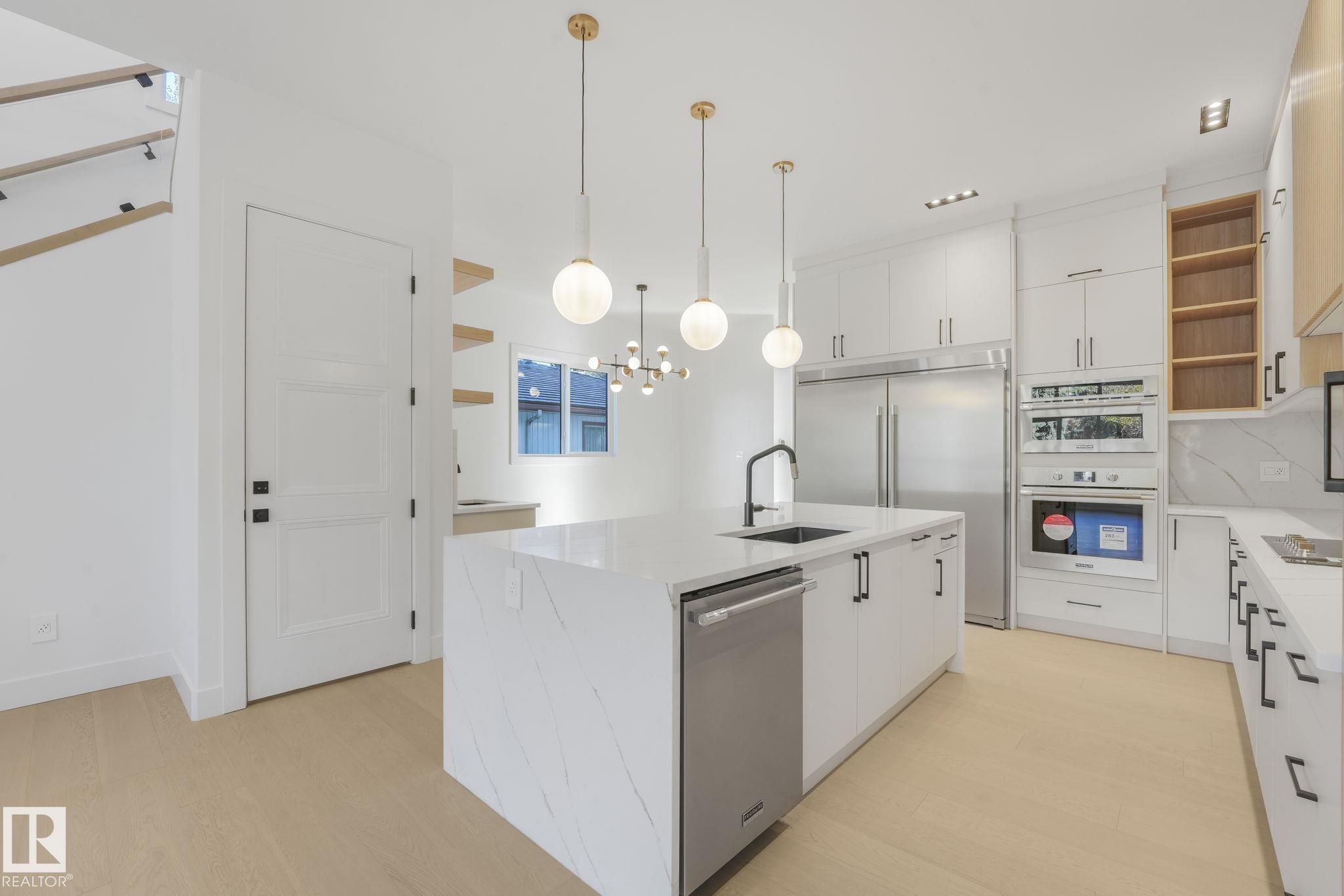 Live in Luxury in Prestigious Crestwood!!! Step into timeless elegance with this brand-new custom two-storey home, where thoughtful design meets modern sophistication. The 10-ft main floor ceilings and engineered hardwood floors create a grand, inviting space featuring a sunlit living room, chef-inspired kitchen with quartz waterfall island, walk-in pantry, wet bar with wine fridge, full bath, and guest bedroom. Upstairs, retreat to your primary sanctuary with a 5-piece spa ensuite with heated floors and a Jacuzzi tub, plus a walk-in closet, two bedrooms, a bonus room, and laundry. Every detail reflects craftsmanship -- triple-pane windows, acrylic stucco, customer closets, high-quality glass railings, Riobel faucets, and designer lighting. The 2-bedroom legal basement suite adds income or family flexibility. With an oversized garage and premium finishes, this home defines modern luxury in Edmonton's most coveted community!!!