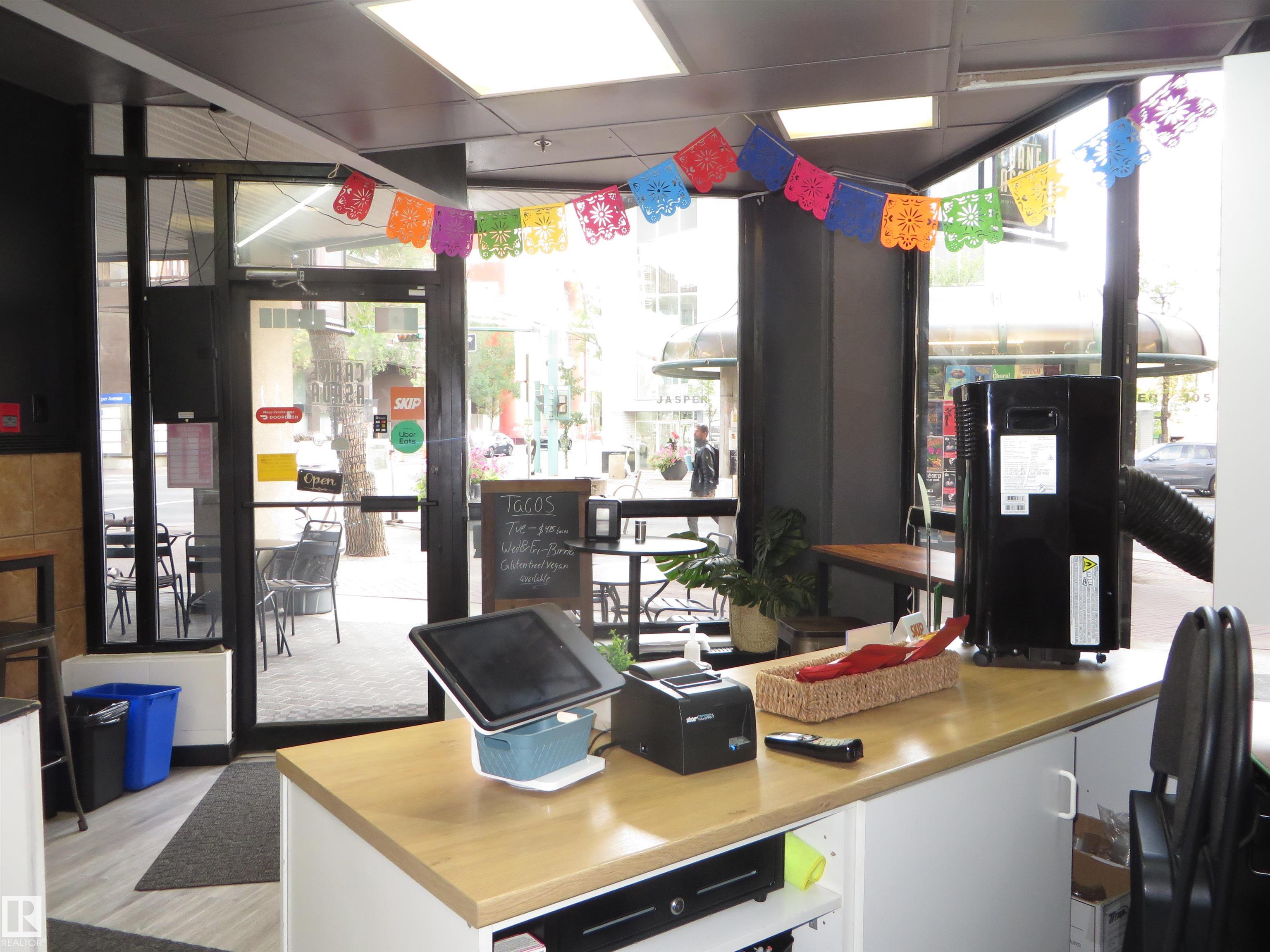 Great potential & rare find business opportunity in prime city centre location. This newly established trendy Mexican fast food outlet already has many loyal clientiles and excellent sales and profits. Premises is approximately 460 sq.ft. with functional layout and well maintained for easy operation. Perfectly located on main floor of a commercial & residential complex with direct Jasper Ave exposure and surrounded by numerous office and residential towers in downtown Edmonton. Low overhead costs (Approx. $ 2000 monthly including rent, common area costs, heat & water), easy to operate and excellent location, ideal to start your dream business.