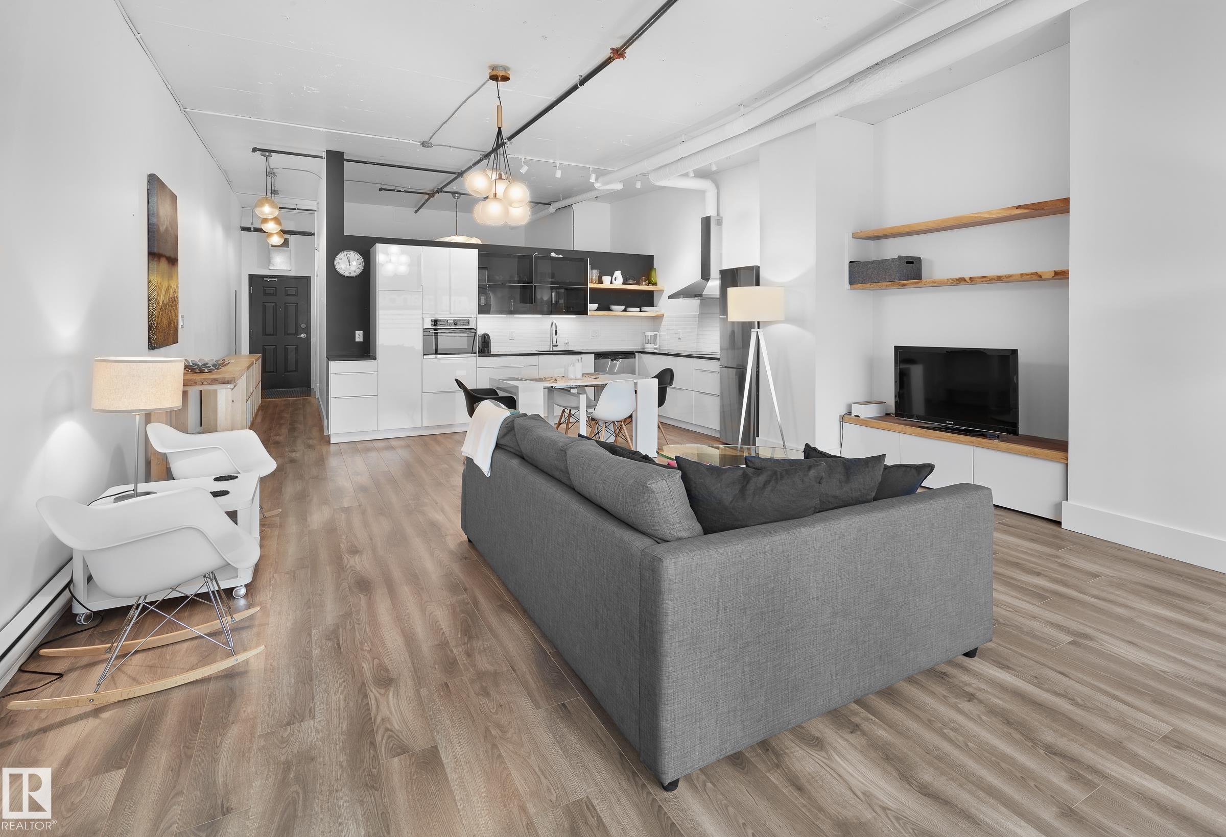 RENOVATED MODERN LOFT - BEST BUY!! Welcome to urban living at the Cambridge Lofts, with a LARGE OUT DOOR PATIO, and just steps away from the Central LRT station! This unit is the crowning jewel of the building, offering a lifestyle of sophistication & convenience! Whether you're a young professional, a student seeking proximity to campus, a single individual with a penchant for downtown vibrancy, or a couple looking for a dynamic urban experience, this loft caters to your every need. The presence of front door staff during most hours ensures a seamless living experience within this perfectly located building. Imagine walking to work in the bustling heart of Downtown, or effortlessly hopping on the LRT to reach the University of Alberta or Grant MacEwan University. MANY SECURE PARKADES in the area. The allure of this loft extends beyond its location, as the modern decor exudes a sense of style and comfort that allows buyers or renters to move in with ease.