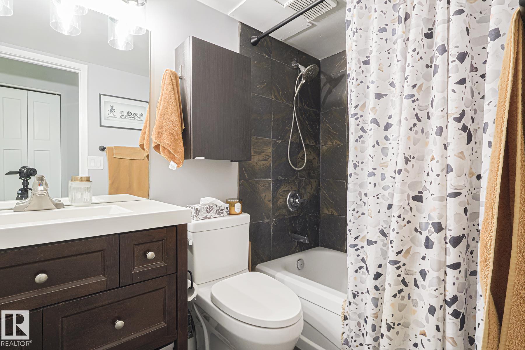 Welcome to this beautiful pride of ownership home with nothing to do but move in. Extensive renovations done starting with vinyl plank flooring throughout (except Bathroom), all colonial style doors and baseboards. The fully revamped gourmet kitchen with loads of 'two toned' soft close cabinets, additional floor to ceiling bank of pantry space, grey glass tile backsplash, farm house style sink, pots and pan drawers, stainless steel hoodfan, modern lighting, large butcher block moveable island with additional storage as well as seating - great to entertain. Cozy livingroom with feature brick wall, leads to huge west facing balcony and additional storage room. Spacious primary bedroom as well as 2nd bedroom have ample closet space - both with barn house doors. Tiled bathroom with newer vanity & low flush toilet. Convenient insuite washer and dryer just a few years old. Awesome social room area, gym & sauna located on the 9th floor - yearly membership for all just $150. U/G parking stall 123.