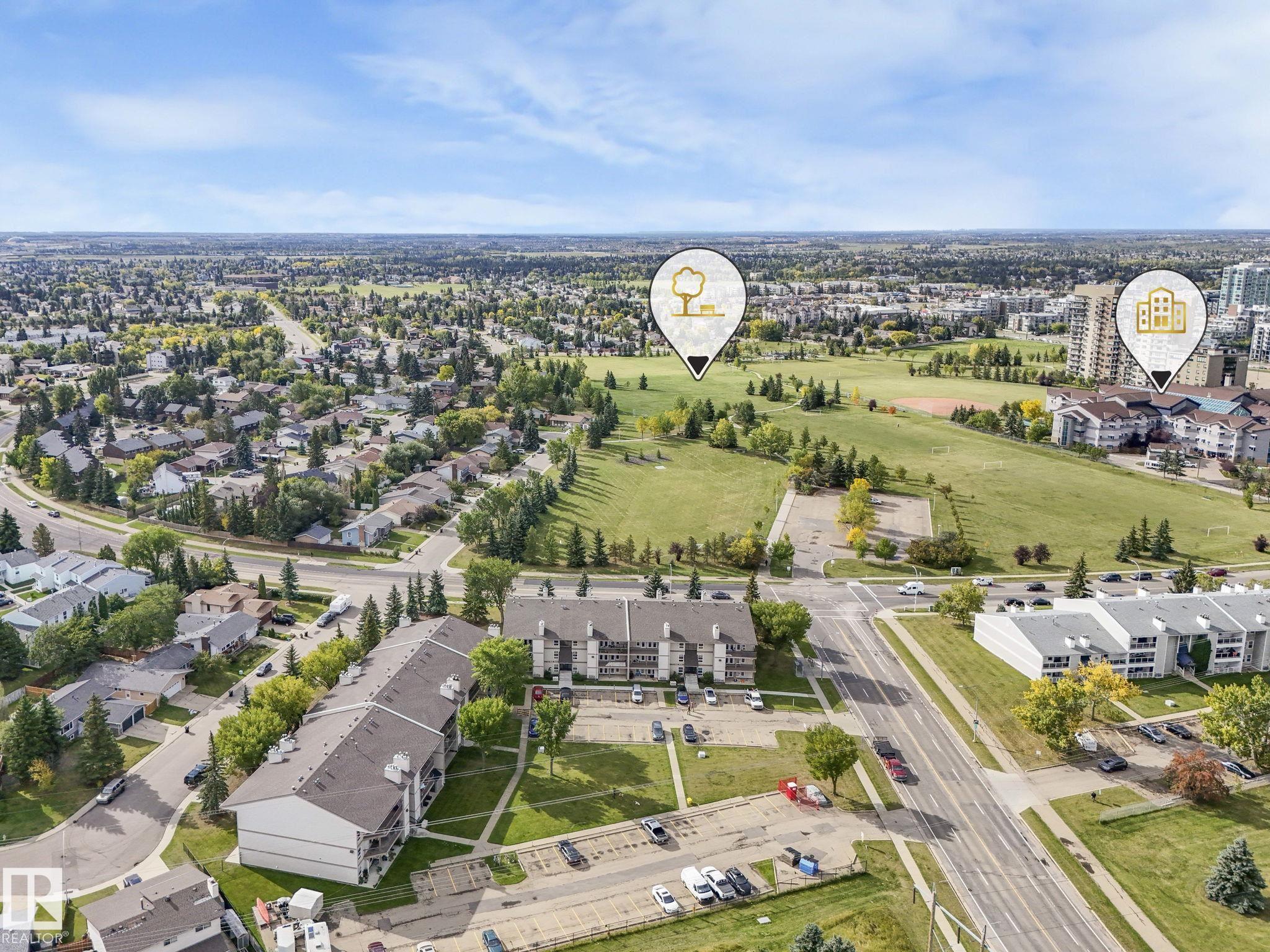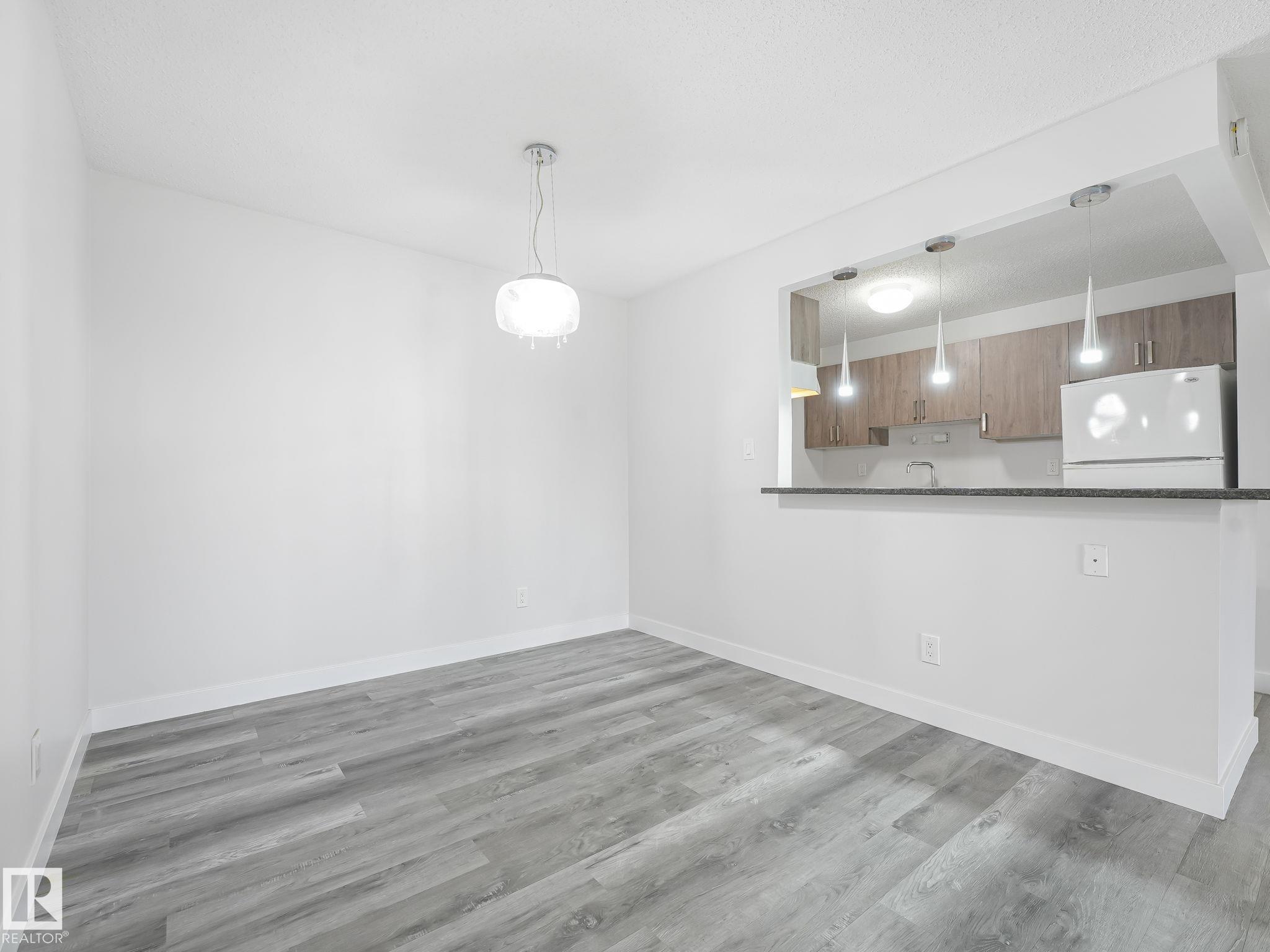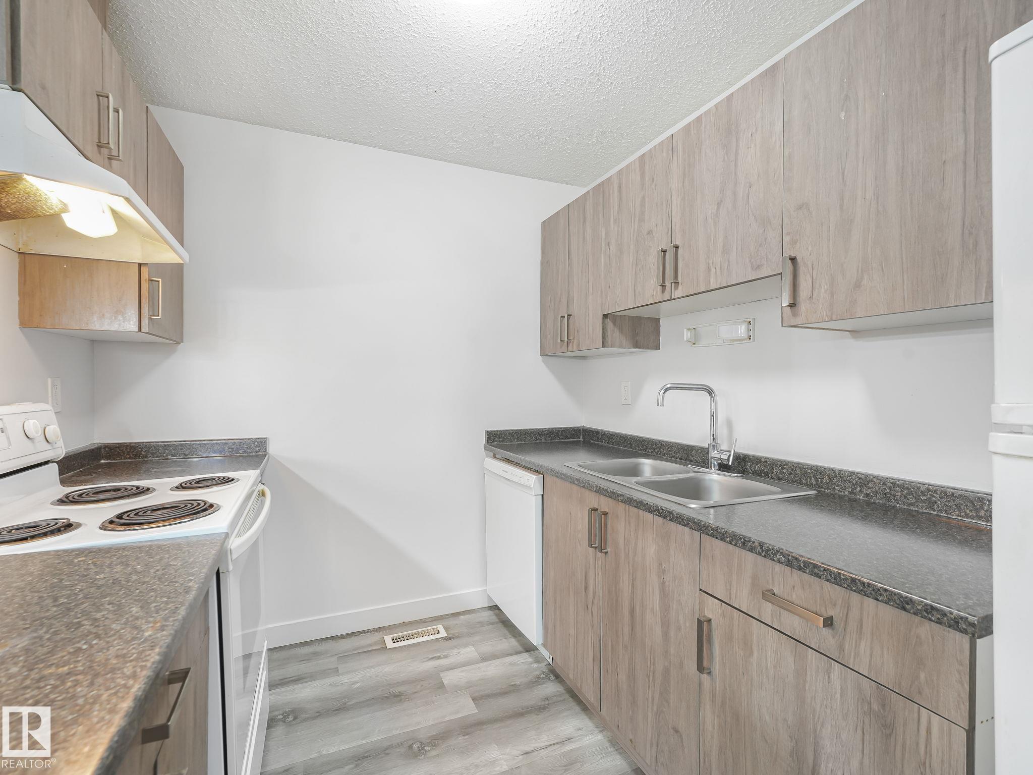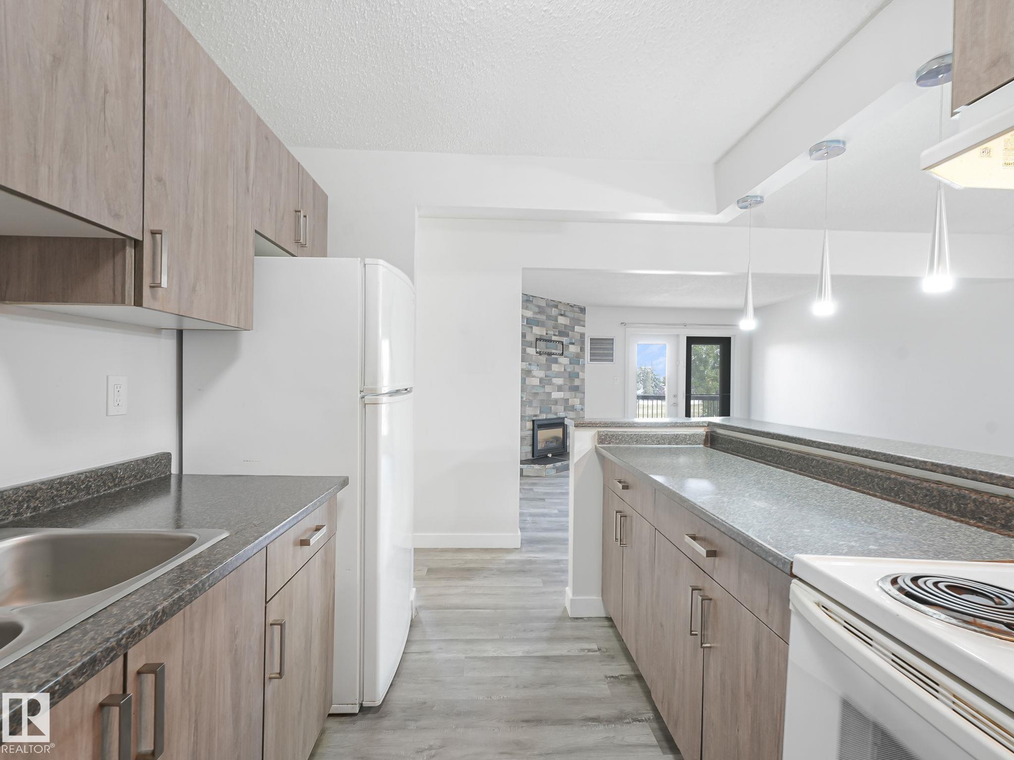 VALUE PRICED TOP FLOOR CONDO IN FANTASTIC SOUTHSIDE LOCATION JUST A SHORT WALK TO LRT STATION, PARKS, SHOPPING & RESTAURANTS. This huge (952 ft2) 2 bedroom condo has been completely renovated with modern finishes throughout. The focal point of this lovely unit is the renovated kitchen that has been opened to the dining and living rooms creating a desirable open living area featuring modern cabinets & countertops and an eating bar with pendant lighting. Other upgrades and features include all newer flooring (plank vinyl & ceramic tile), renovated 5-pc bath boasting dual sinks, large primary bedroom with a W/I closet & cheater door to the 5-pc bath, modern lighting, contemporary floor to ceiling stone facing fireplace, large storage room and a huge balcony. GREAT LOCATION with easy access to amenities & major roads. Excellent opportunity for Investors looking to cash in on Edmonton's rising real estate market or first-time buyer's looking to live affordably while building equity.