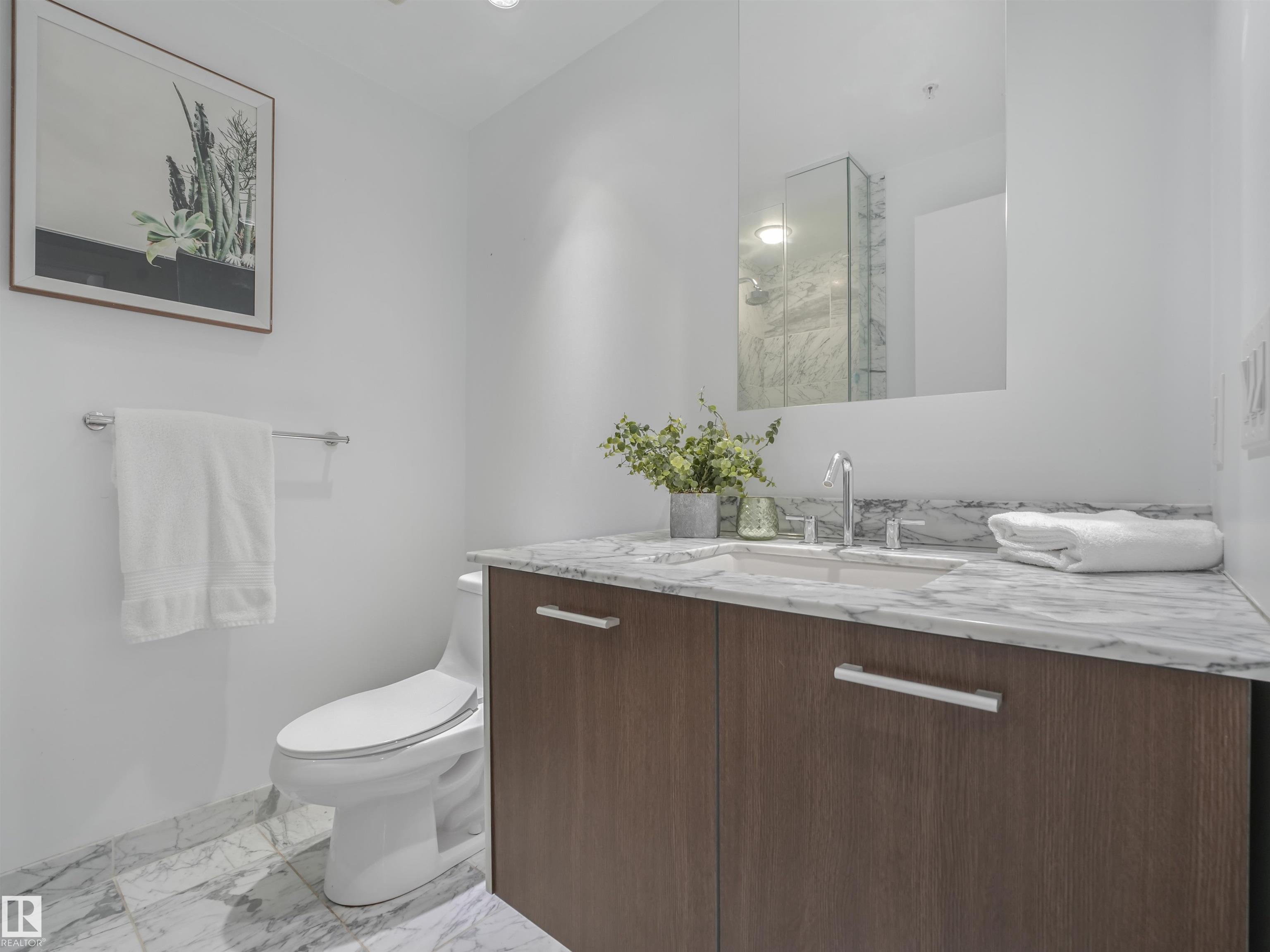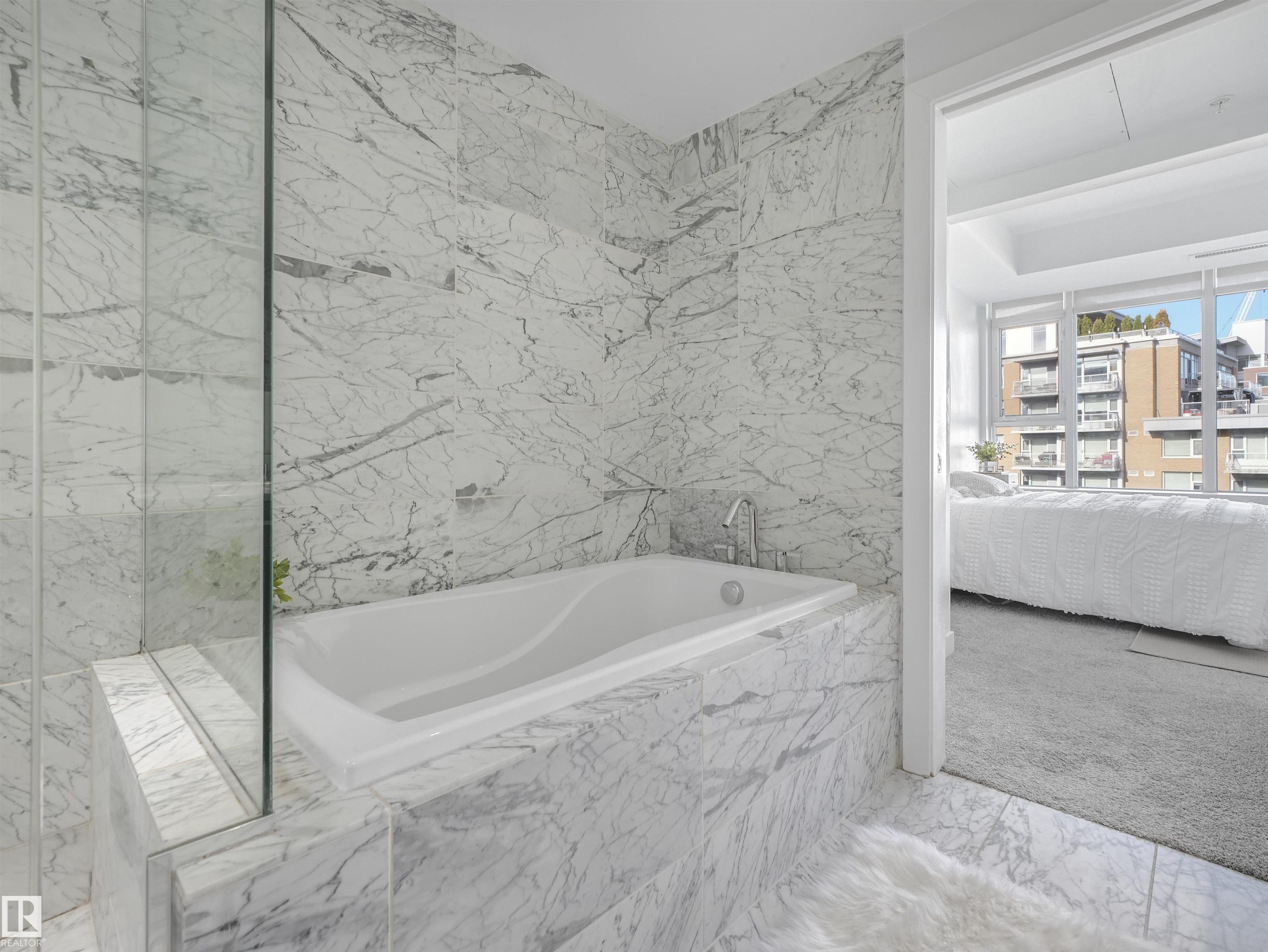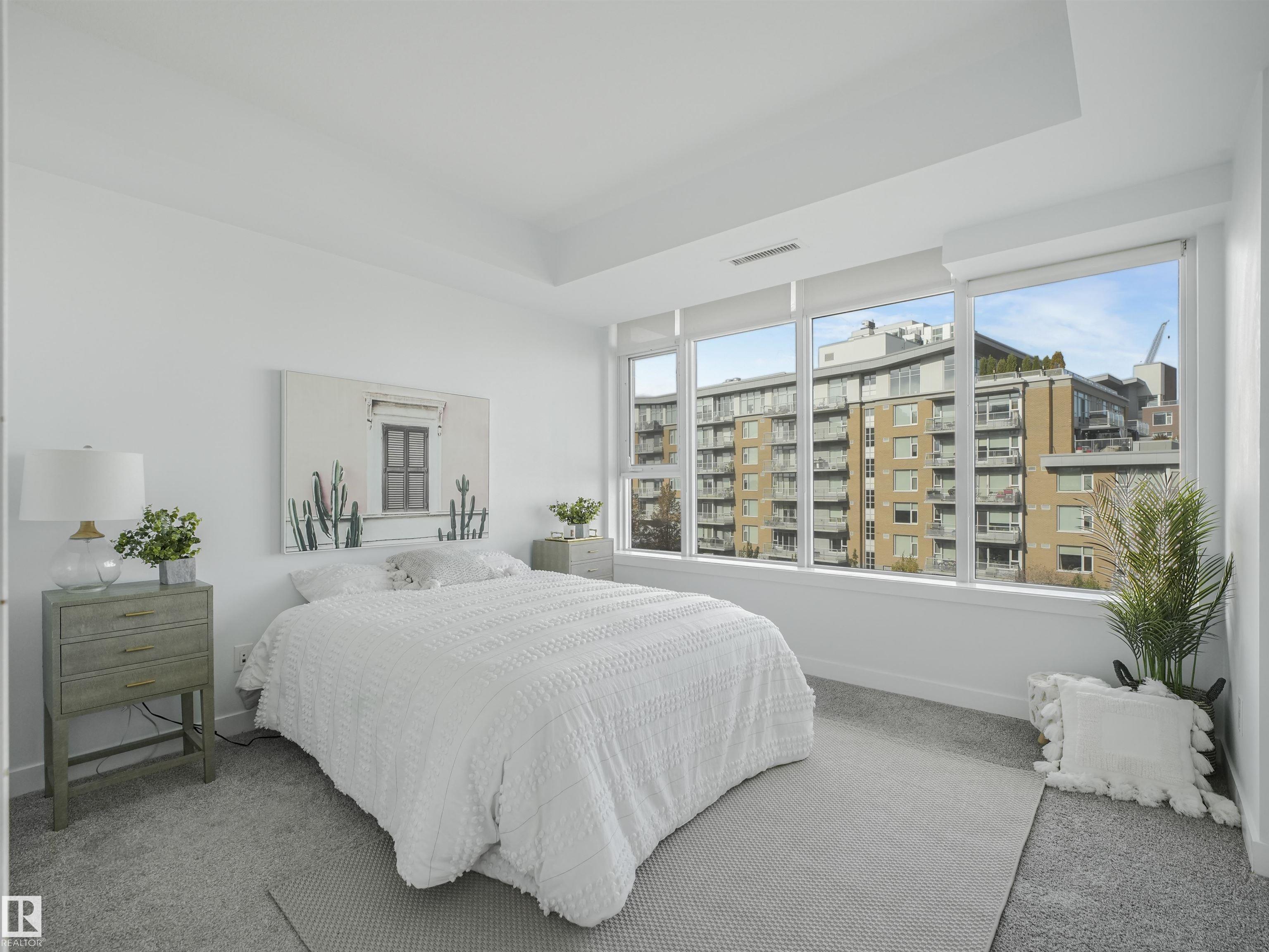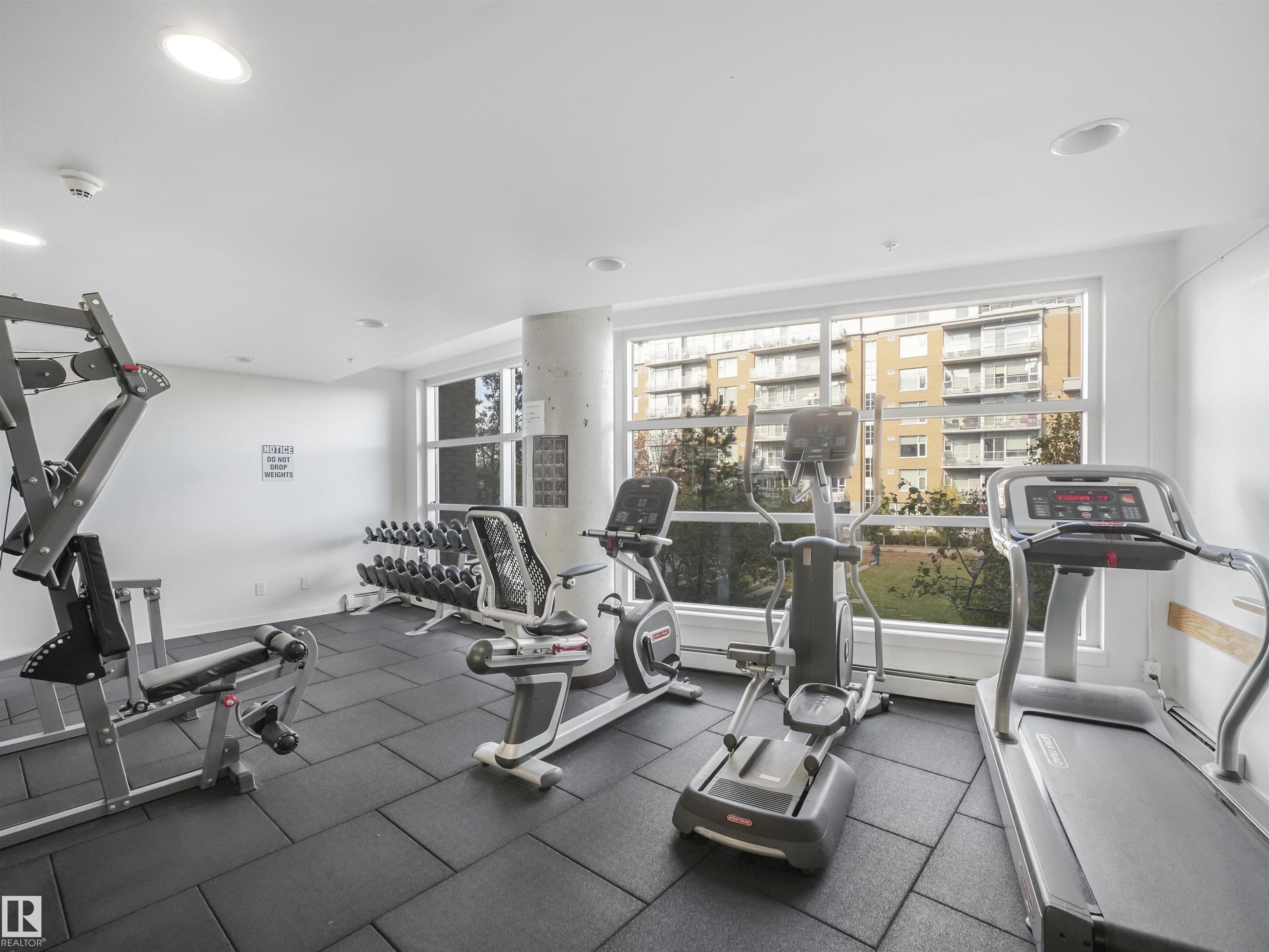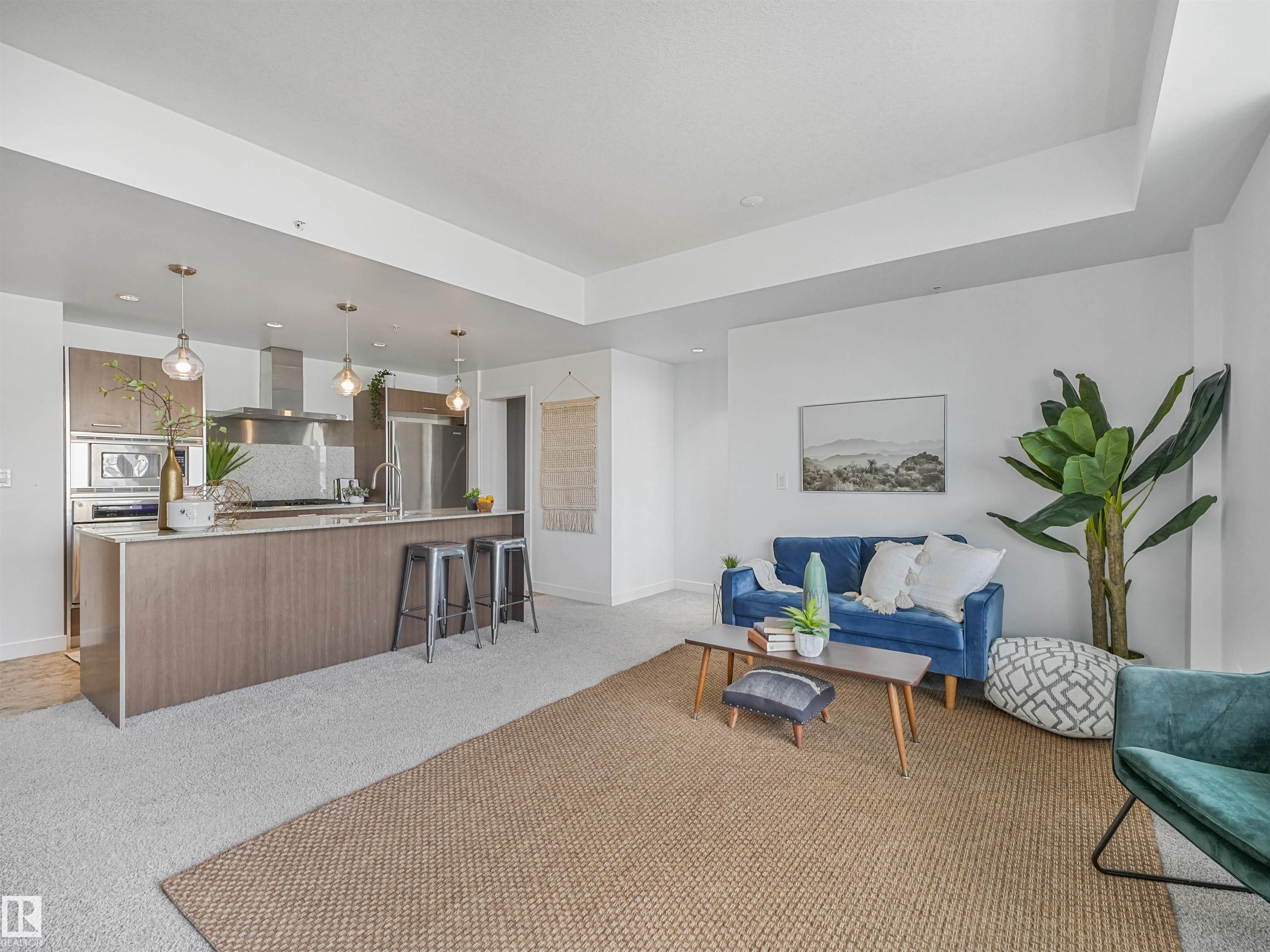 Welcome to this stylish 2 bed, 2 bath condo in the heart of Century Park! This bright, open-concept unit features wall-to-wall windows, a fireplace, and a private balcony with a gas BBQ hookup overlooking the serene courtyard. The gourmet kitchen is a chef's dream with granite countertops, built-in microwave, oven, gas stovetop, and a large island. The luxurious primary suite boasts a 5-piece ensuite with marble tile, a soaker tub, and double vanity. Enjoy the convenience of titled underground parking and a separate titled storage cage. Building amenities include a fitness centre and ALL UTILITIES covered in condo fees. Just steps to the LRT, Century Park shopping plaza, and minutes to Calgary Trail and South Edmonton Common - this location has it all!