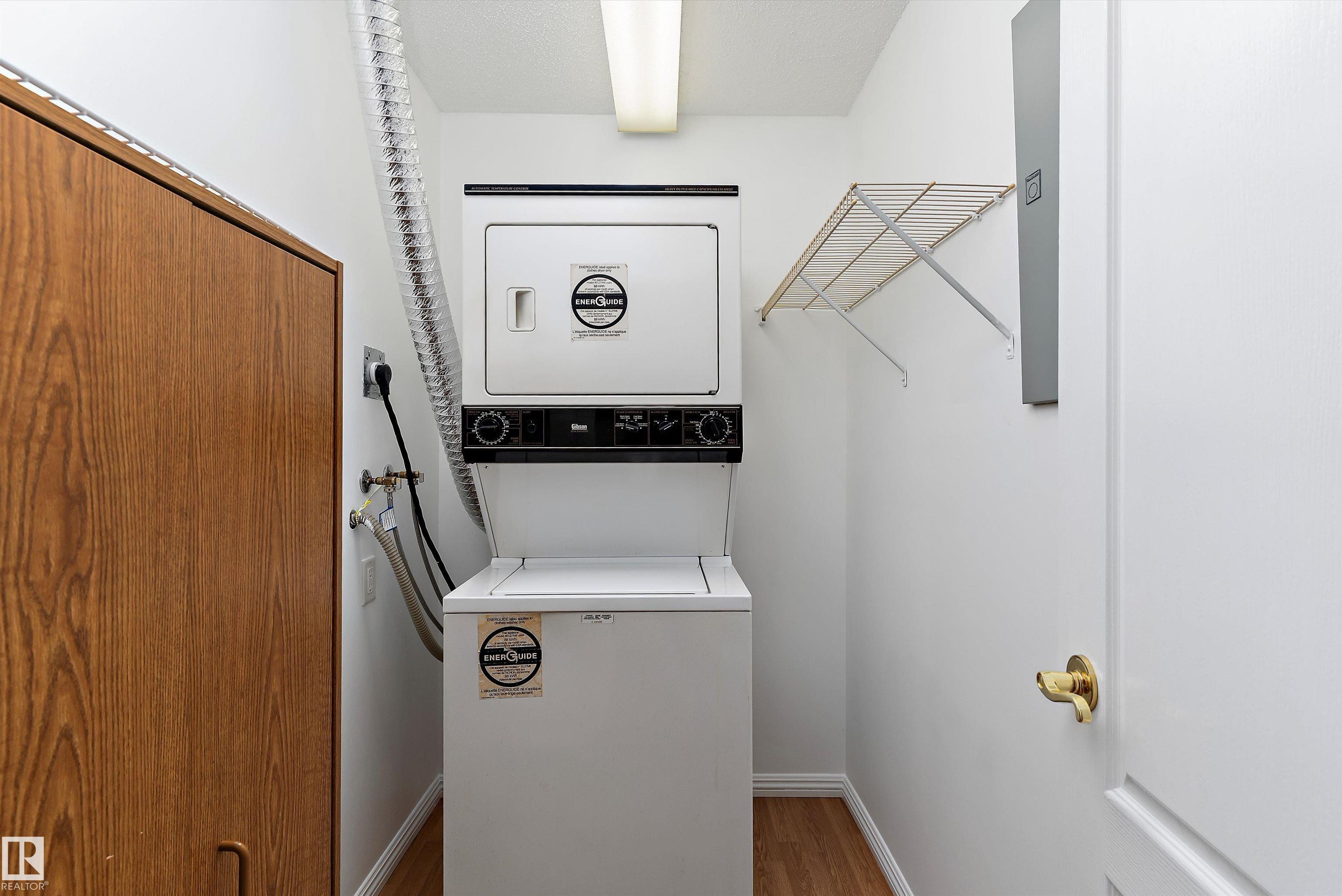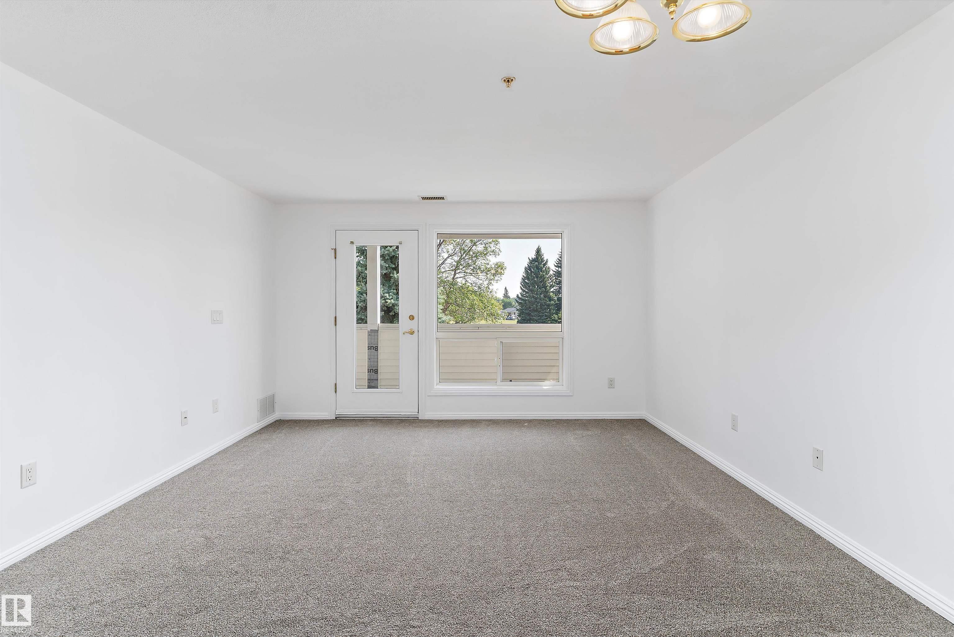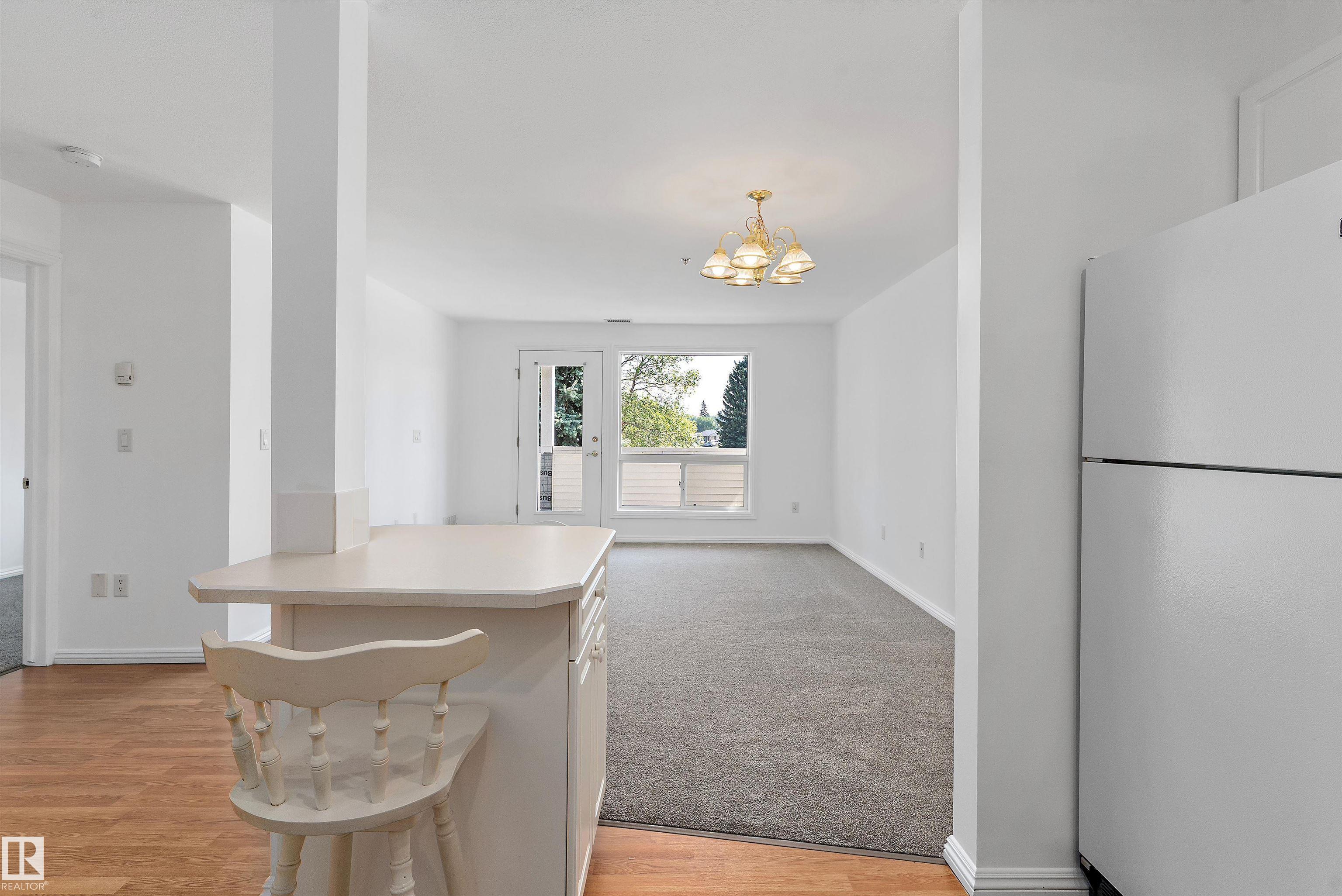 Welcome to Fulton Court a vibrant 40+ community in the heart of southeast Edmonton! This freshly painted 1-bedroom, 1-bathroom condo is move-in ready, featuring brand new carpet in the living room and bedroom, central A/C, in-suite laundry, and storage, and a separate storage cage. Enjoy your morning coffee or afternoon tea from the southeast-facing balcony that overlooks peaceful Fulton Place Park. This well-managed building offers exceptional amenities including an exercise room, social room, library, workshop, a carwash (located in the parkade), and a beautifully fenced courtyard. An on-site caretaker ensures the building remains well cared for and secure. The unit comes with an assigned underground parking stall, and condo fees are low and inclusive of heat, water, sewer, TV service, internet. Fulton Court offers comfort, connection, and convenience, a wonderful place to call home for anyone 40+ looking to downsize without compromise in a truly welcoming and established community.