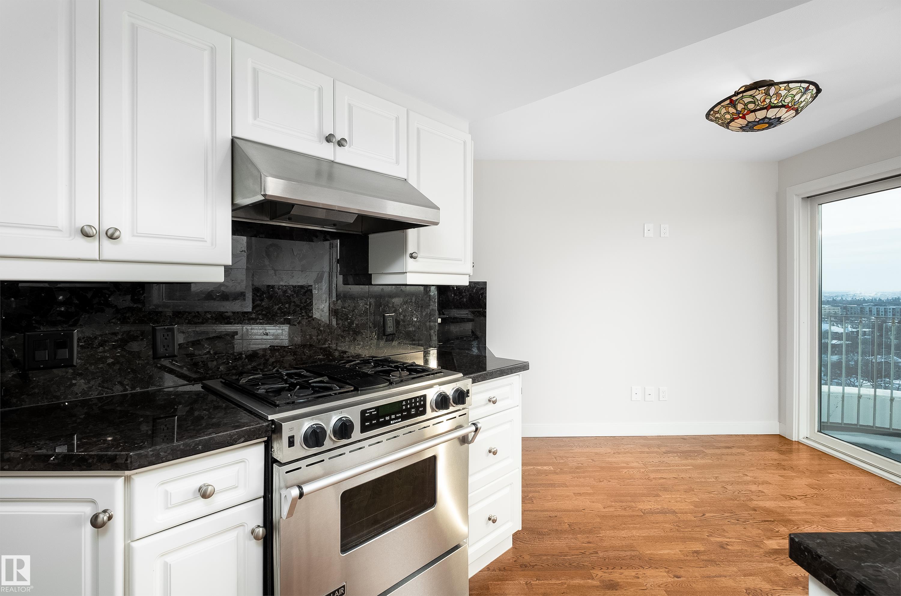 The epitome of urban living in this RARE and outstanding double unit offering sweeping views in all directions, a postcard view of Downtown. This property is freshly painted and boasting an array of exceptional features designed to elevate your view and enhance your lifestyle. Delivering a home in the sky with 2,394 sq.ft it's a blank canvas for you to put your fingerprints on. Elegant + durable engineered hardwood flooring throughout, Gas Fireplace, Air Conditioning, NG BBQ Hookup located on one of the 4 balconies. Primary includes an enormous walk-in closet + 4 piece ensuite. Additional bedroom with murphy bed situated privately at the opposite end of the unit with a convenient 3-piece bathroom. Expansive living room to watch the seasons change, TV space, formal dining and private Den. The spacious eat in kitchen is tucked away with south views and a huge storage room / back entry for true lifestyle ease. Features - 3 Assigned Parking Stalls, Storage Cage, Carwash, Social Room, Gym, + Guest Suite.