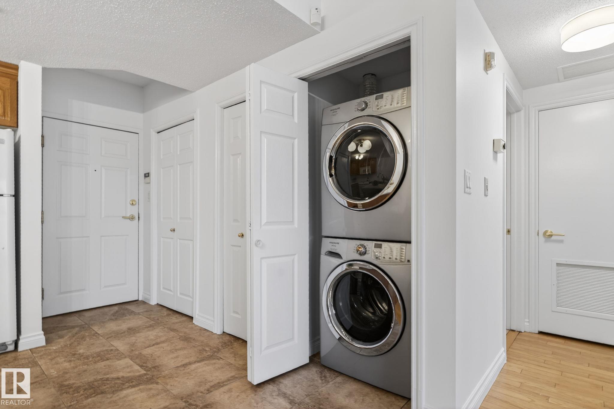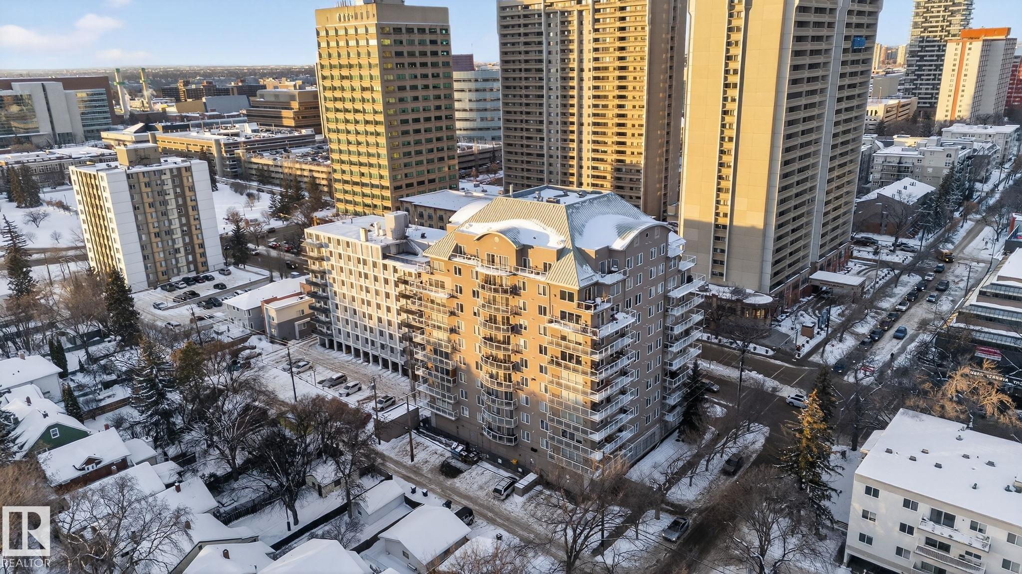 Set in the heart of Garneau, this beautifully updated 2-bedroom, 2-bathroom condo offers an effortless blend of urban sophistication and everyday comfort. Designed for those who value both style and walkability, this home delivers a quiet retreat within one of Edmonton's most dynamic neighbourhoods. Recent renovations elevate the interior w/ new carpet, fresh paint, updated countertops/backsplash, and a brand-new washer/ dryer, creating a polished, move-in-ready space. Solid concrete construction ensures low-maintenance, sound-resistant living, while in-suite laundry and titled heated underground parking add a level of convenience. Enjoy evenings on the spacious balcony, where warm light & city views create the perfect setting to unwind. Just steps from the University of Alberta, river valley trails, and the boutiques, caf‚s, public transportation and restaurants of Whyte Avenue. Ideal for professionals, students or urban buyers seeking a refined home in a premier location in a very well-managed building.