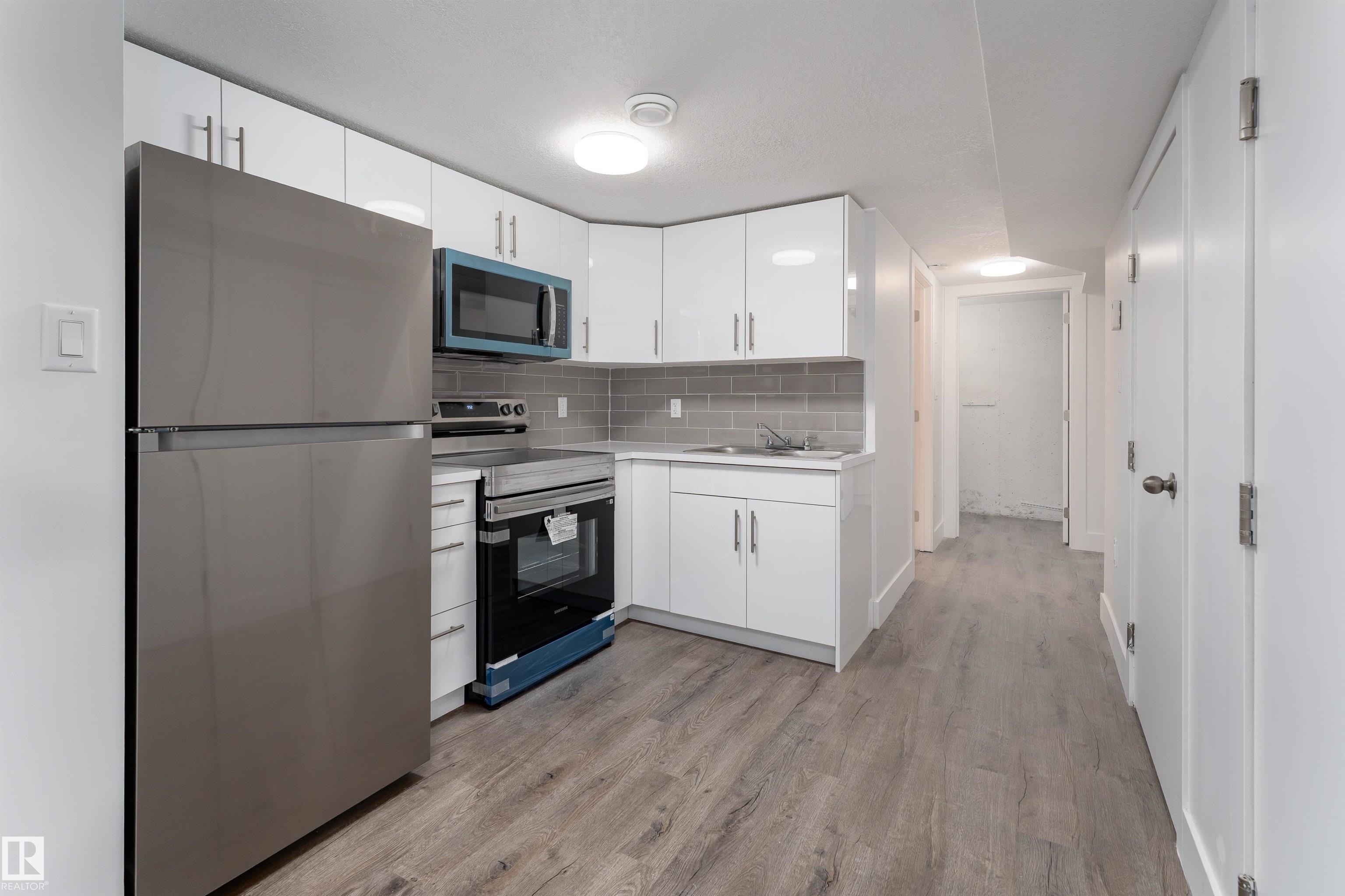 This beautifully UPDATED 1010 sq ft Gold Bar bungalow combines modern design, natural light, and incredible versatility with a LEGAL BASEMENT SUITE and its own SECONDARY DOOR. The main floor offers a bright living room with large windows and sleek laminate flooring, a gorgeous white kitchen with brand NEW STAINLESS STEEL appliances and plenty of counter space, a spacious primary bedroom, two additional bedrooms, and a fresh 4 piece bathroom. The BASEMENT SUITE features its own stylish white kitchen with NEW STAINLESS STEEL appliances, a generous rec room perfect for entertaining, two large bedrooms with ample storage, laundry, and another new 4 piece bathroom. Outside, enjoy a PRIVATE BACKYARD with mature trees, patio space, and a single garage, all within steps of Gold Bar Park and its scenic ravine trails. Families will love the nearby playground at Gold Bar Elementary, shopping convenience at Capilano Mall, and quick access to schools and transit. This home is move in ready and made to impress.