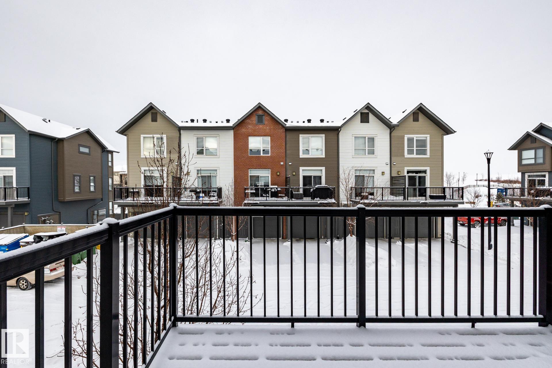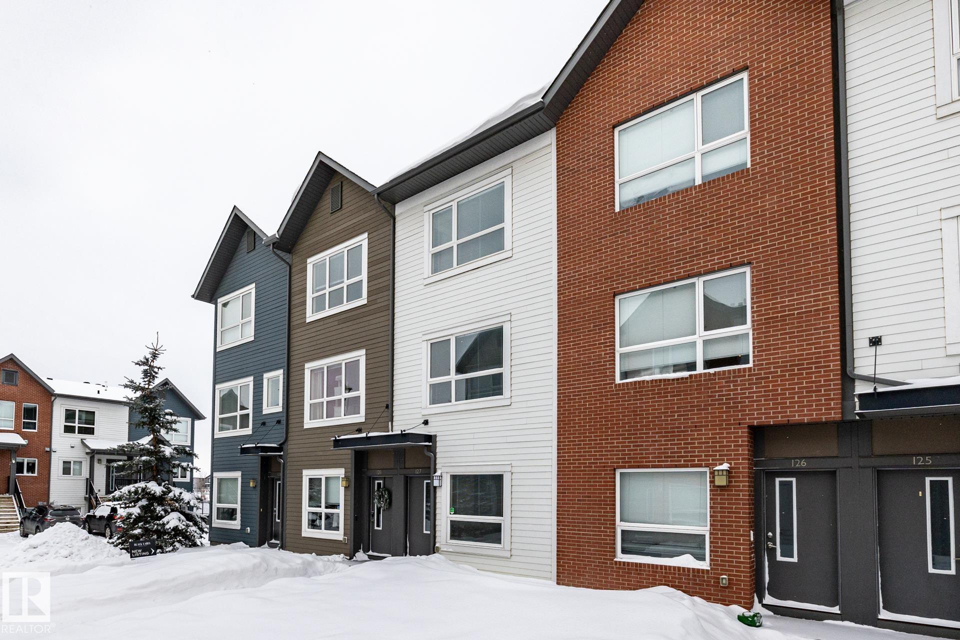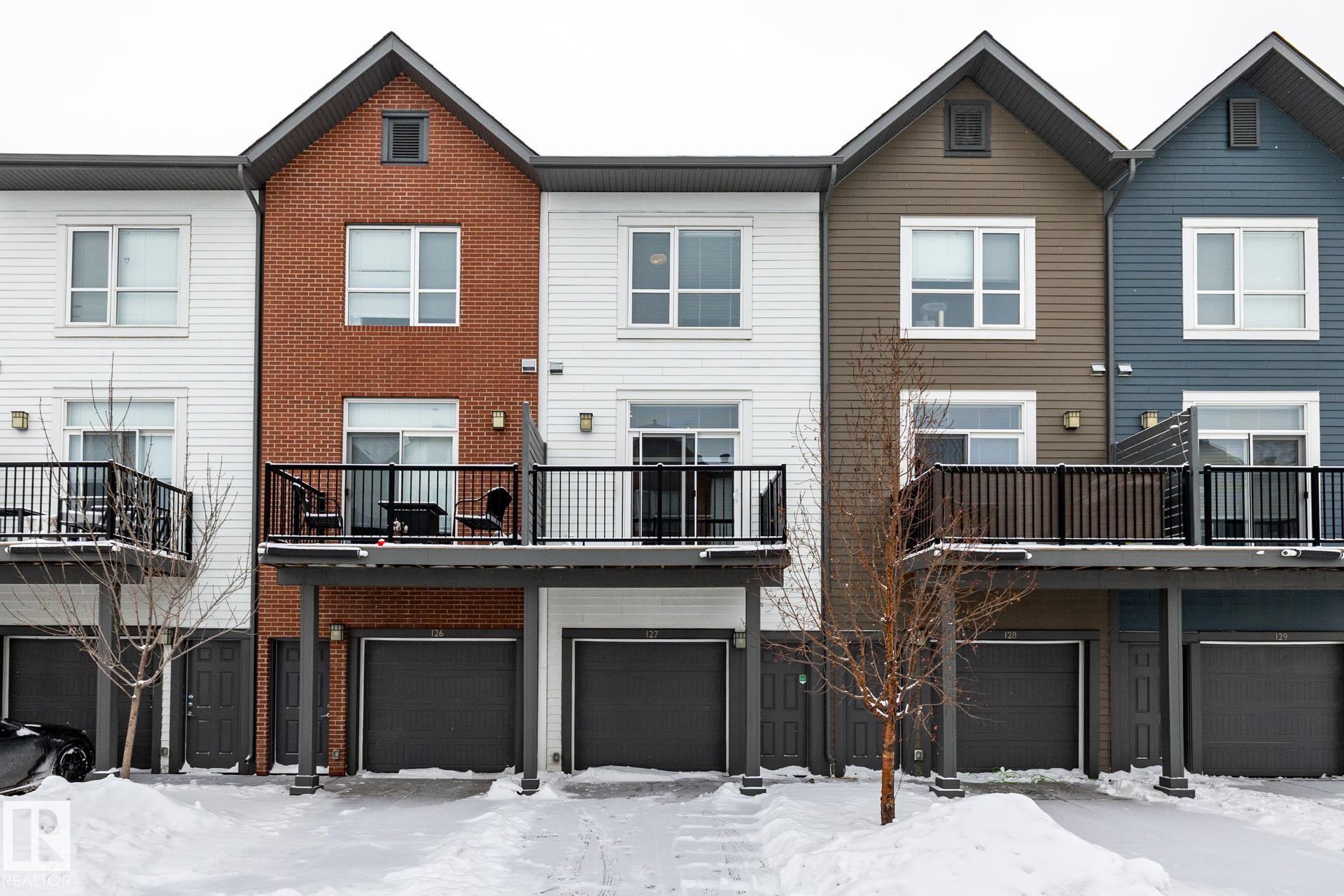Excellent opportunity for this value priced and nicely upgraded unique 3 storey townhome perfectly located in central Edmonton's much desirable and award-winning family neighborhood of GRIESBACH. This spacious 2 bedrooms + den, 2.5 baths features an impressive, bright & spacious open floor plan with 9 ft. ceilings and oversized windows, and over 1330 sq.ft. gorgeous living space year-round. Trendy upgraded open kitchen with Island, granite counters, stainless steel appliances and open to the spacious Living and dining room. Upper level Primary bedroom feature double closet and a 3 pcs ensuite bath. Large second bedroom, full size 4 pcs main bath and laundry closet. Den and a 2 pcs bath right off the entry foyer. Oversized garage has water outlet, extra storage space and full driveway to park a second car. Beautiful & quiet location next to community pond & park areas, easy access to city centre, major shoppings, schools, playgrounds, transit & more. Move in Ready