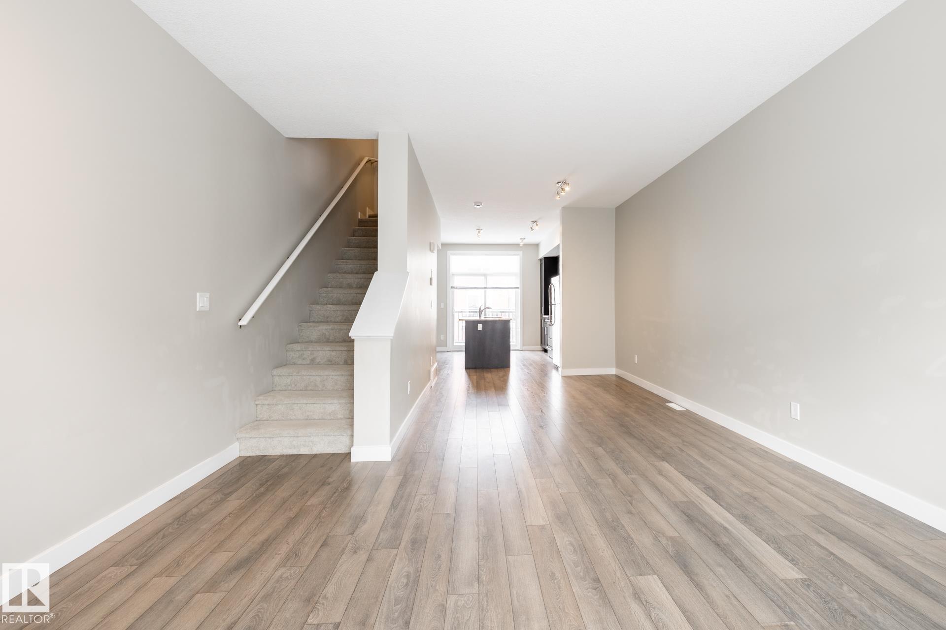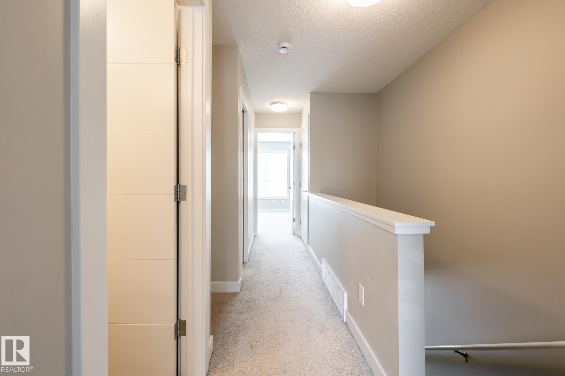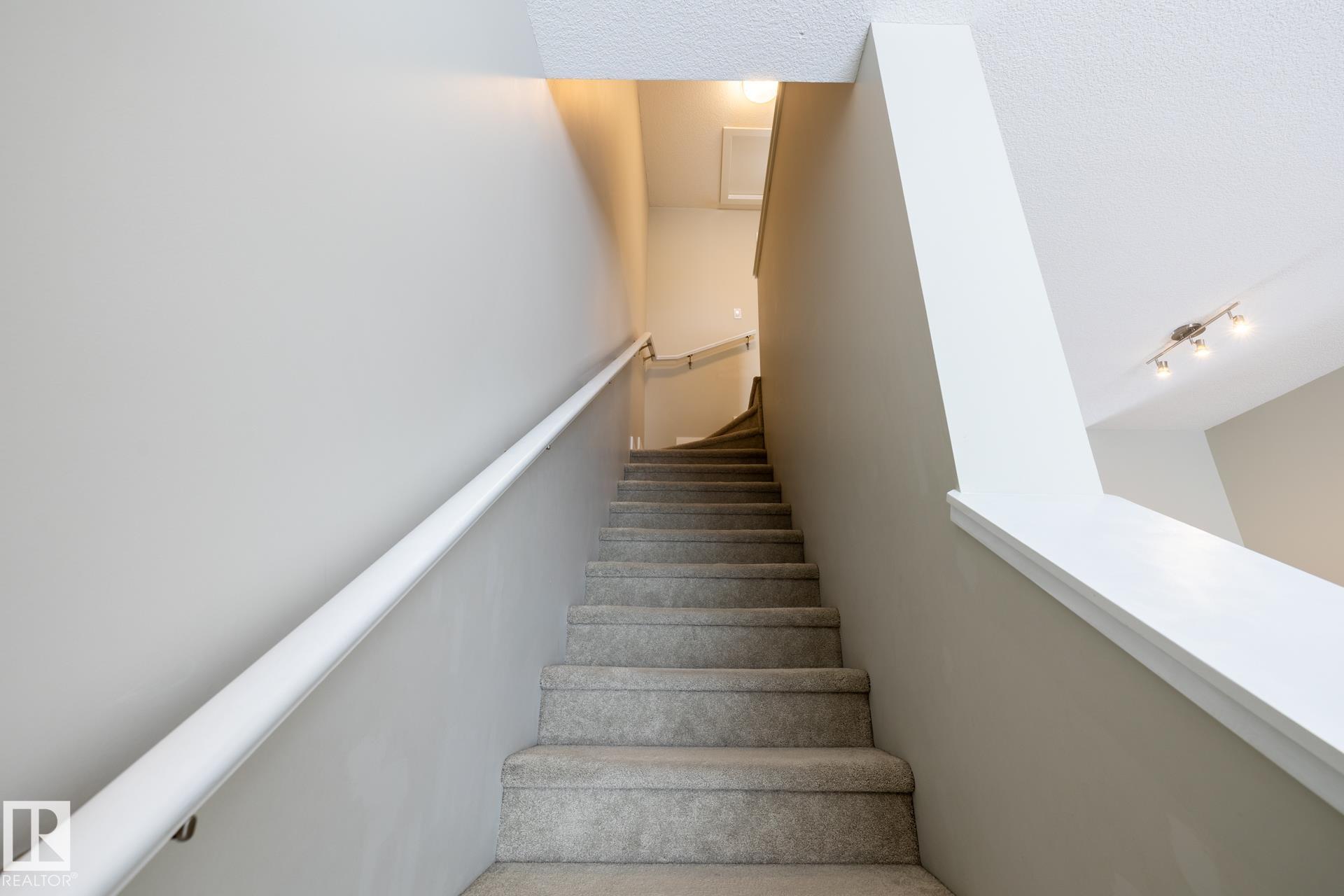 Excellent opportunity for this value priced and nicely upgraded unique 3 storey townhome perfectly located in central Edmonton's much desirable and award-winning family neighborhood of GRIESBACH. This spacious 2 bedrooms + den, 2.5 baths features an impressive, bright & spacious open floor plan with 9 ft. ceilings and oversized windows, and over 1330 sq.ft. gorgeous living space year-round. Trendy upgraded open kitchen with Island, granite counters, stainless steel appliances and open to the spacious Living and dining room. Upper level Primary bedroom feature double closet and a 3 pcs ensuite bath. Large second bedroom, full size 4 pcs main bath and laundry closet. Den and a 2 pcs bath right off the entry foyer. Oversized garage has water outlet, extra storage space and full driveway to park a second car. Beautiful & quiet location next to community pond & park areas, easy access to city centre, major shoppings, schools, playgrounds, transit & more. Move in Ready