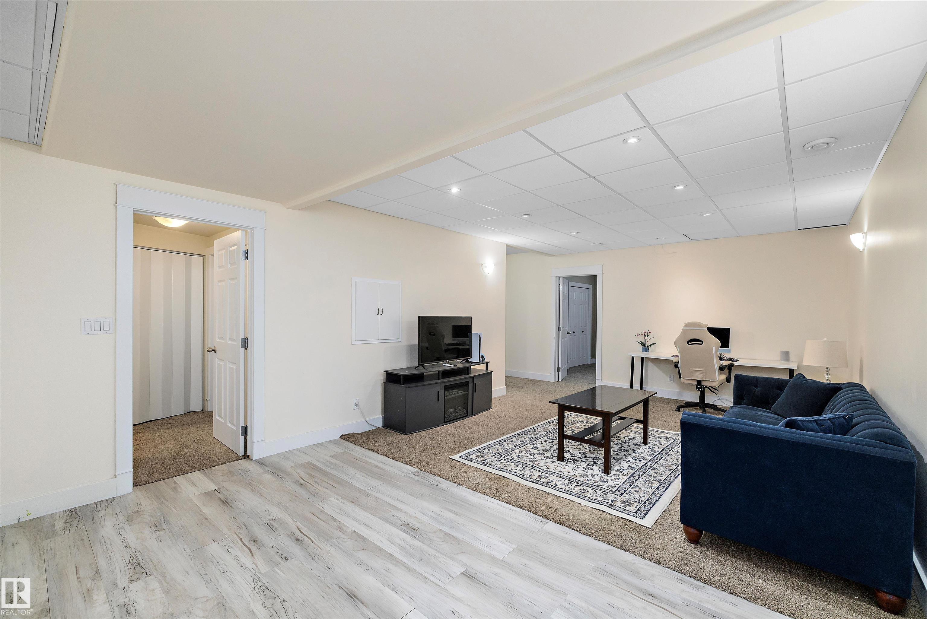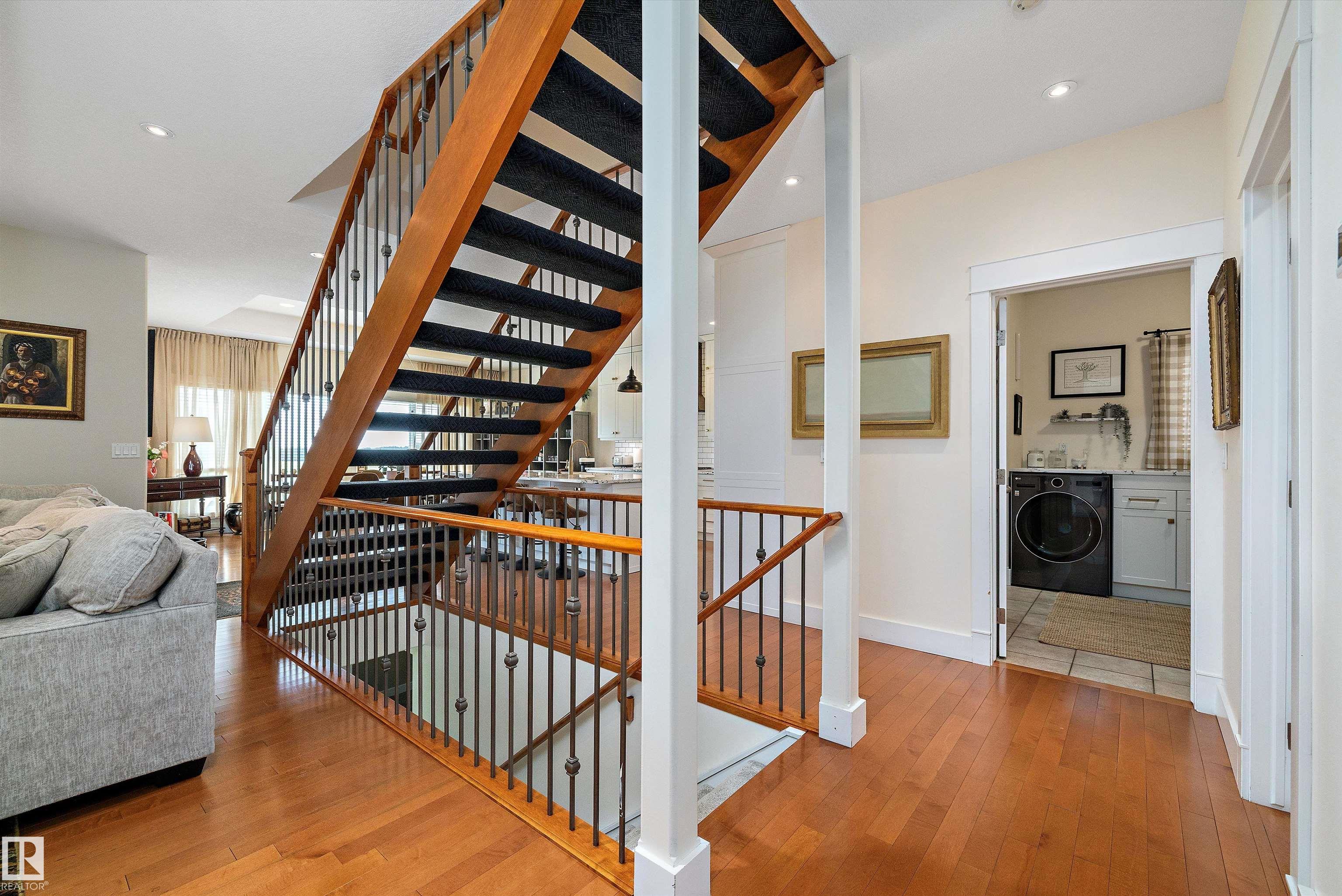 This well-designed 2-storey offers a functional layout with thoughtful updates and green space views with no neighbors behind. The main floor features an open layout with a comfortable living room, fireplace, and open staircase. The kitchen has been updated with white cabinetry, granite countertops, stainless steel appliances, newer dishwasher and stove, and a large island suited for everyday use and entertaining. A walk-through pantry connects to the laundry area with a washer and dryer and provides access to the oversized heated garage. Upstairs offers four bedrooms, including the converted primary bedroom (originally the bonus room) with a 5-piece en-suite. The finished basement adds two more bedrooms, a full bathroom, a recreation area, and a practical mini-suite with a fridge, sink, and extra cabinetry, ideal for guests or extended family. The backyard provides great space for outdoor gatherings. Conveniently located near schools, parks, shopping, transit, and Anthony Henday.