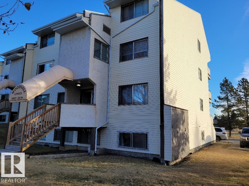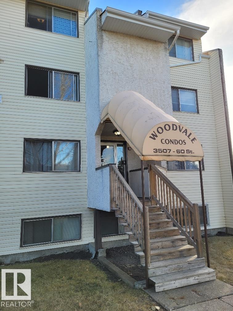 Fully Renovated and upgraded modern 2 bedrooms + den + balcony. Sunny and bright with lots of natural light. Both West and East exposure. All vinyl plank flooring + tiles in bathroom. All you see in the condo is included with purchase. This condo has windows both on the East side (living and dining room, balcony) and West (bedrooms) side. Overlooks park and school. *2 entrances: regular entrance through the common area plus walk up entrance. Common laundry on 4th floor. Excellent location: right across from Hillview School, park, daycare, public transportation, shopping etc. Right by Grey Nuns (10 minute walk), LRT and Millwoods Mall are 15 minute walk. For investors: also great for rental - very attractive location. NOTE: Sold 'as is where is' with no warranties or representations. Reserve fund is low and old lien needs to be resolved by the condo corporation - priced accordingly.