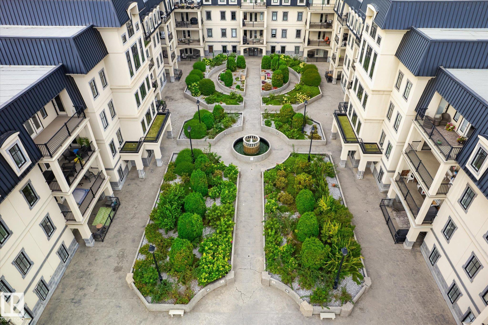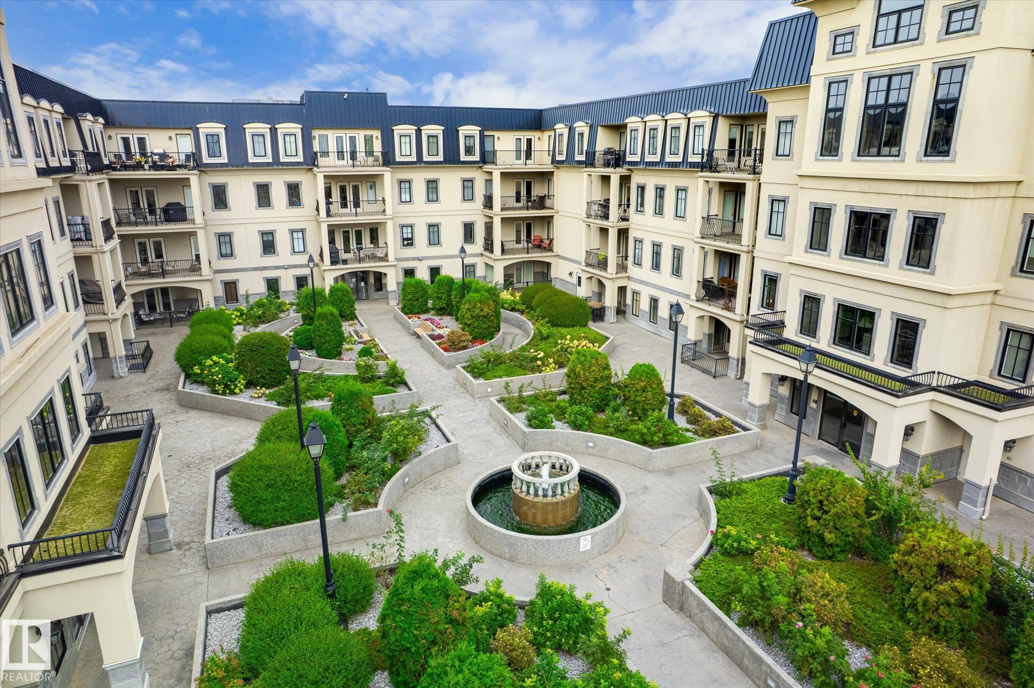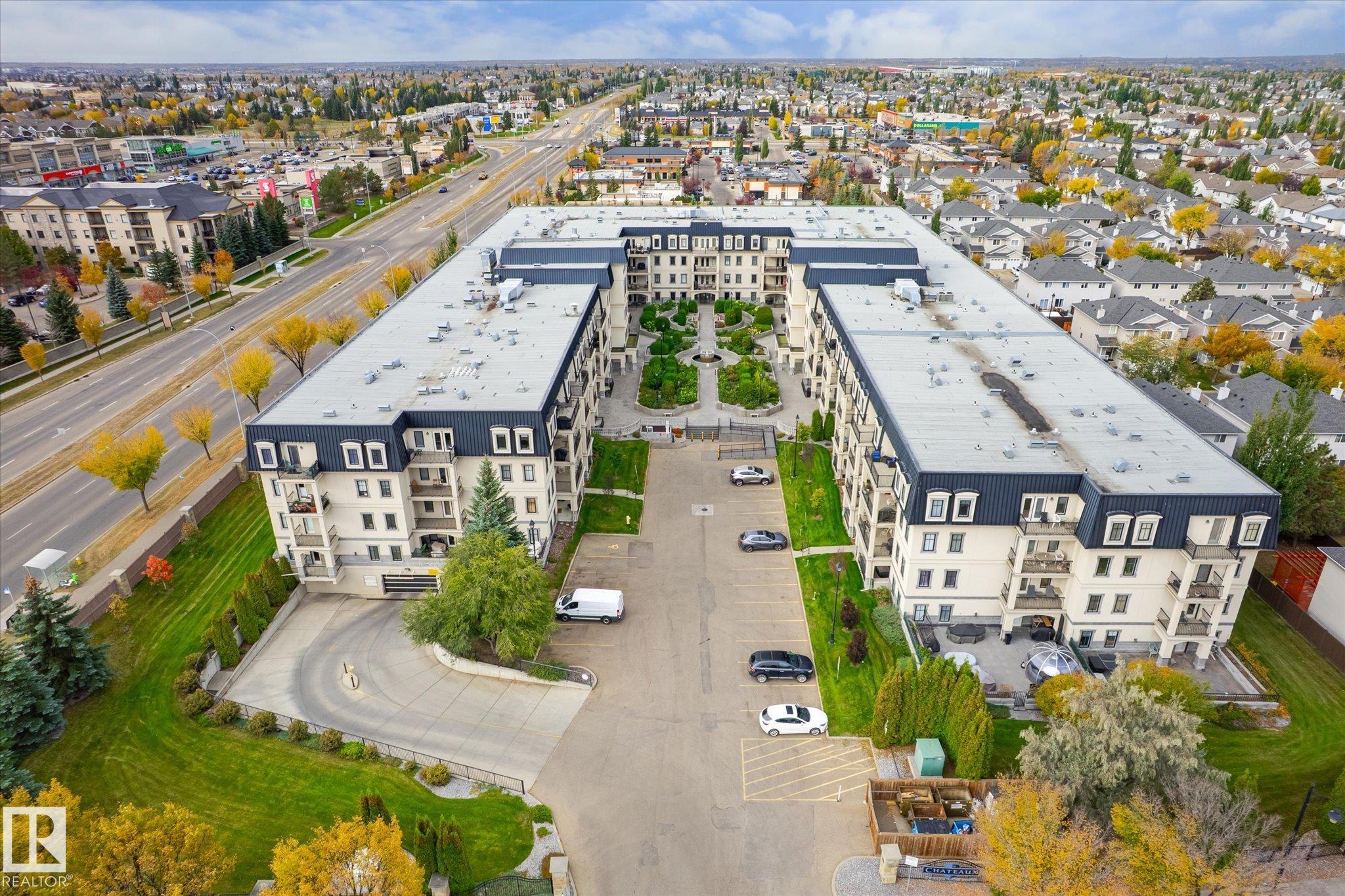 Welcome home to this European style condo in the Chateaux at Whitemud Ridge. This 2 bedroom, 2 bathroom condo comes with 9' ceiling, 1 titled underground parking stall and a storage cage. The courtyard is nestled in the heart of the grounds and a fountain can be enjoyed. The large balcony can be accessed from both the master bedroom or living room doors, and is complete with a gas hook-up. Fully complete with air conditioning, in-suite laundry, quality appliances, granite countertops, and high-end cabinets. The living room is large and open to the deck, dinette and kitchen. This quiet adult building has an age restriction of 21 years old and up, and is wonderfully equipped with amenities including gym, swirl pool, steam room, sauna, party room with barbecue area, media room, and theatre. Walking distance to ravine trails, and easy driving access to the Anthony Henday, Whitemud Drive, and the airport. Enjoy the luxury and comfort of maintenance-free living in SW Edmonton.