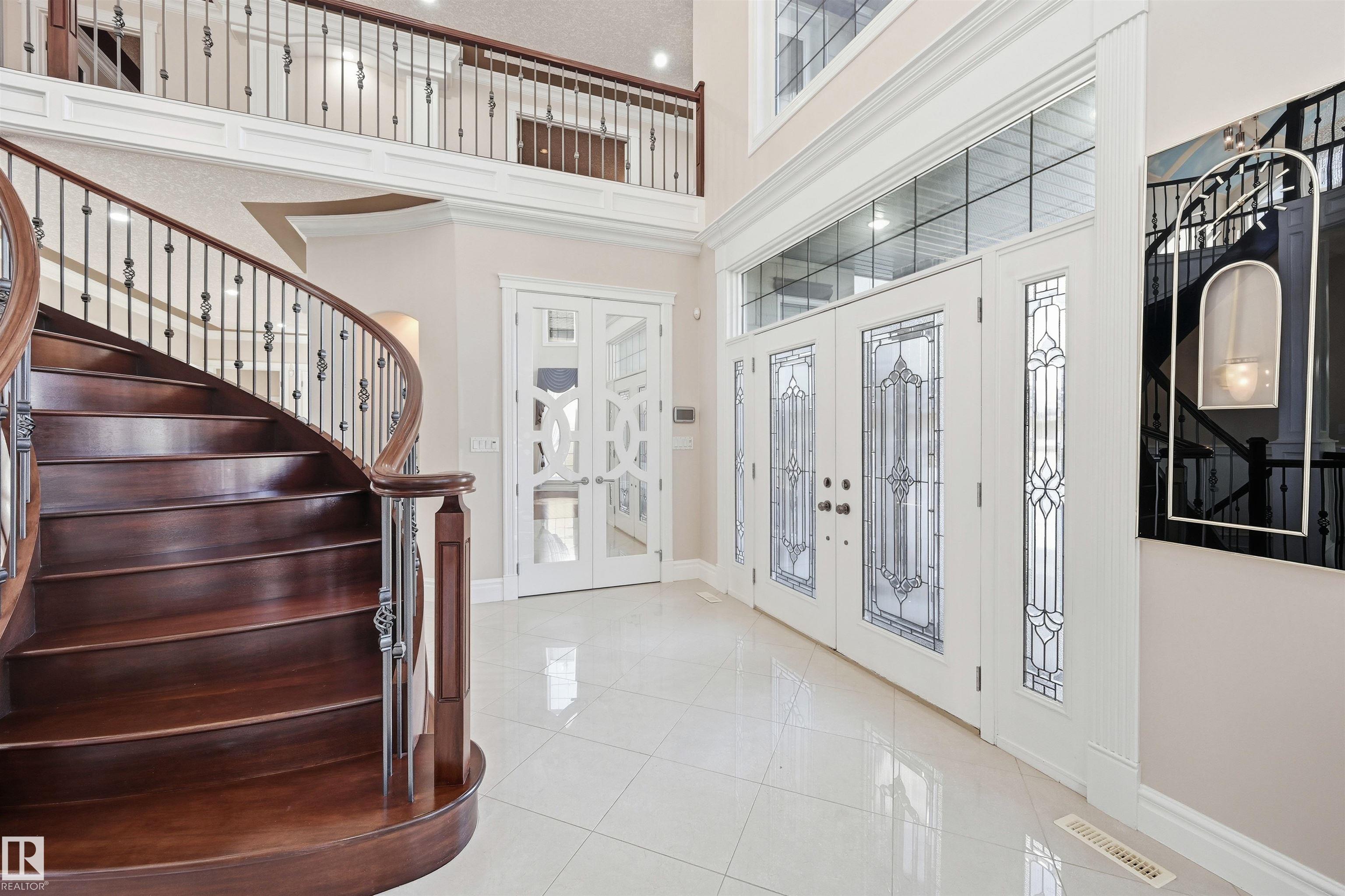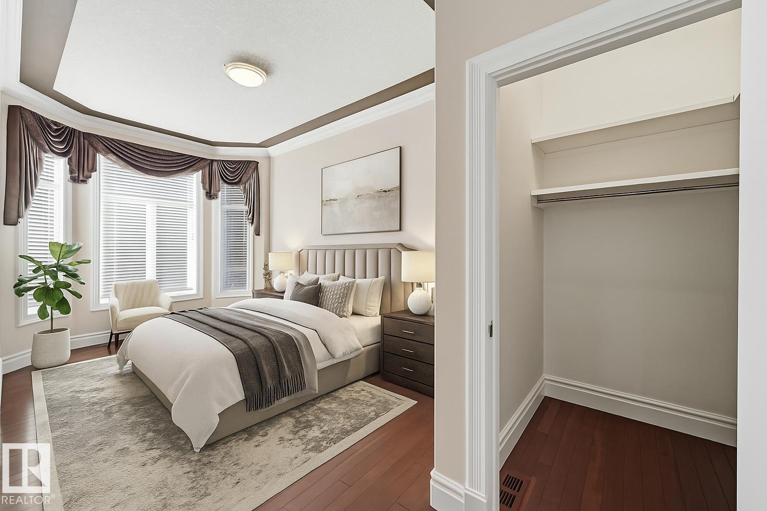 A RARE find perched across from the breath taking RAVINE on a quiet street lined w/mature Elms. Steps from the park/playground & natural wetland pond. Impressive tile roof, & stone tile exterior. Custom Executive home exudes elegance & true workmanship w/5283 sf of luxury PLUS a F/Fin bsmt (7400 sf ttl). 7 bedrms, main flr den & 6 FULL bathrms. Stunning floating curved hardwood stairwell, barrel & vaulted ceilings, 8' solid core doors & upgraded hardwood throughout main/upper. For the growing family or multi generational family, this 2 sty will check off all the boxes incl a FIVE car tandem garage, Chef's kitchen to prep family meals, massive multi purpose bonus rm, generous sized bedrms & O/S windows w/natural light galore. Stunning primary bedrm/ensuite w/steam/spray. Lower level features in floor heating, wet bar, 2 large bedrms, family rm, games area & a home theatre. Private SW facing yard w/a huge deck for outdoor entertaining. Heated 36x30 garage w/drains, H/C H2O & 11' ceilings potential car lifts
