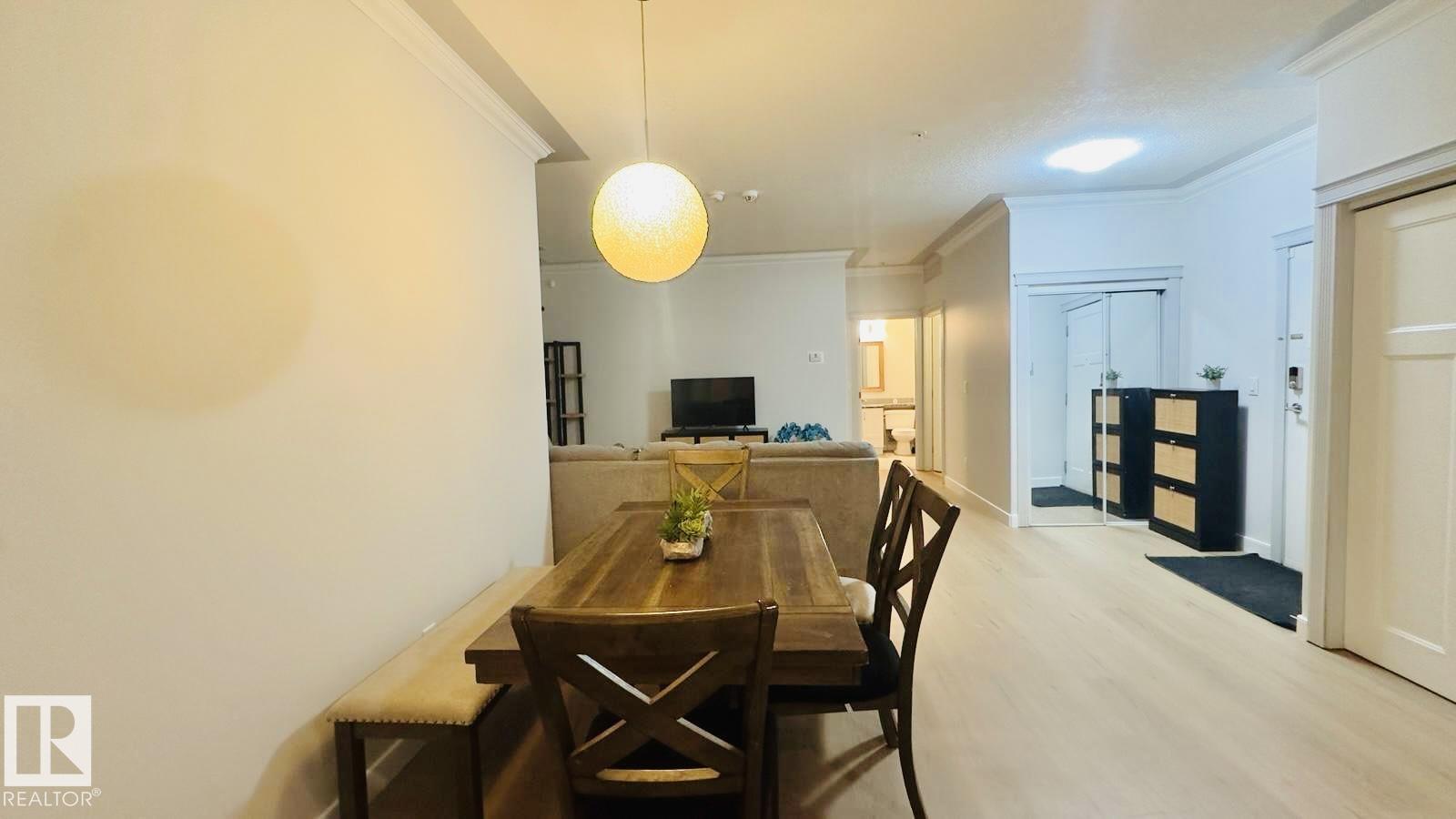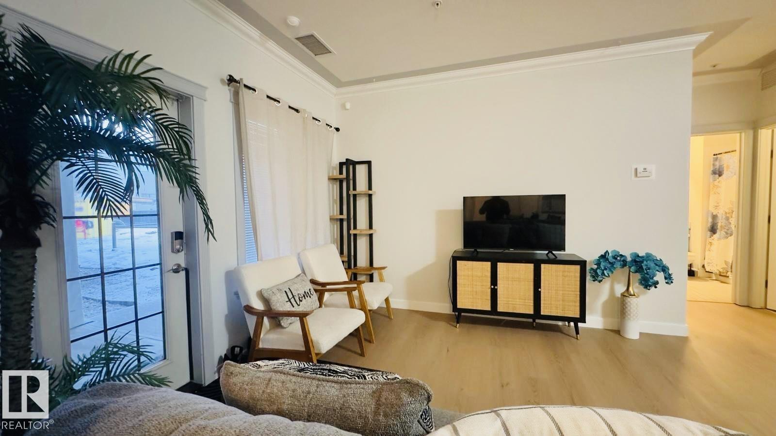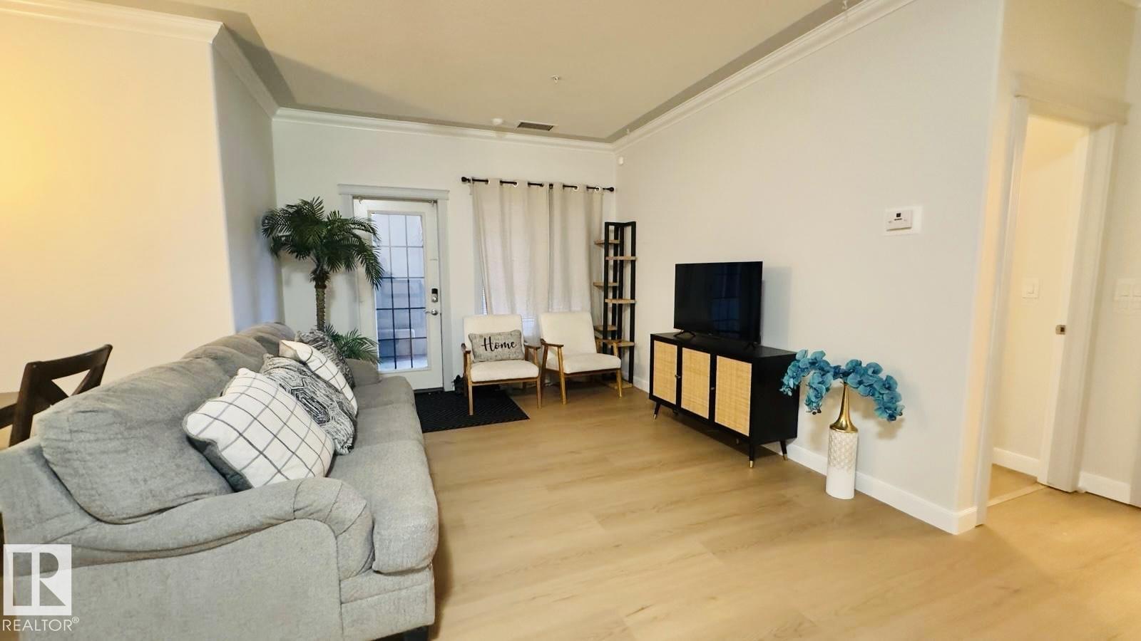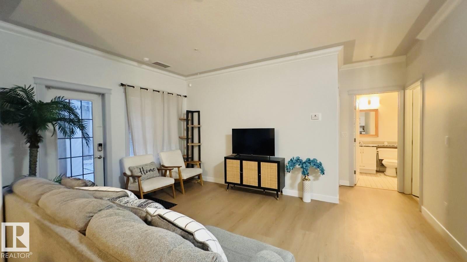 Experience FANTASTIC VALUE in this bright, open-concept 2-bedroom, 2-bathroom ground-floor retreat! The modern kitchen shines with GRANITE COUNTERTOPS, a stylish ceramic backsplash, and premium stainless-steel appliances. Elegance meets function with crown moldings, a spacious living area separating the bedrooms for privacy, and in-suite laundry. Pet owners will love the secure patio door offering direct outdoor access. This well-managed building boasts a fitness center, sauna, social room, and titled underground parking. Nestled in a vibrant Northeast Edmonton hub, you are minutes from the scenic River Valley and Clareview Recreation Centre. Enjoy ultimate convenience with elite shopping at Manning Town Centre and easy access to the LRT system for a seamless commute downtown or to the University. With the Anthony Henday and Manning Freeway nearby, this is a perfect home for starters, students, or investors seeking a turnkey property in a growing community near parks and schools!