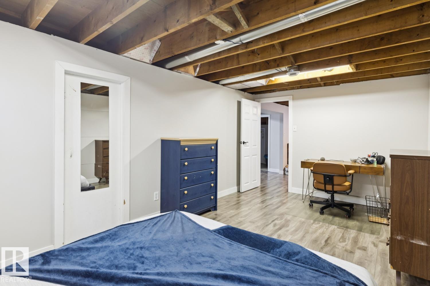 Set in one of Edmonton's most sought-after neighbourhoods, this beautifully updated home is steps from parks, trails, and schools. Situated on a 7,948 sq ft pie-shaped lot with southeast rear exposure, this home boasts a massive backyard with raised garden beds, a thriving vegetable garden, mature Saskatoon and raspberry bushes and RV parking. Inside, you'll find a bright main floor with a renovated kitchen, charming living and dining areas, two bedrooms, and a refreshed 4-piece bath. The fully finished basement adds a third bedroom, a spacious rec room, and tons of storage. Lovingly upgraded over the years, including furnace, shingles, siding, soffits, fascia, electrical, plumbing, insulation, ductwork, kitchen, appliances, flooring, paint, trim, doors, and a full bathroom renovation. Located on a gorgeous treelined street in the ever more popular Holyrood community, this bungalow is full of character and light. Welcome home!