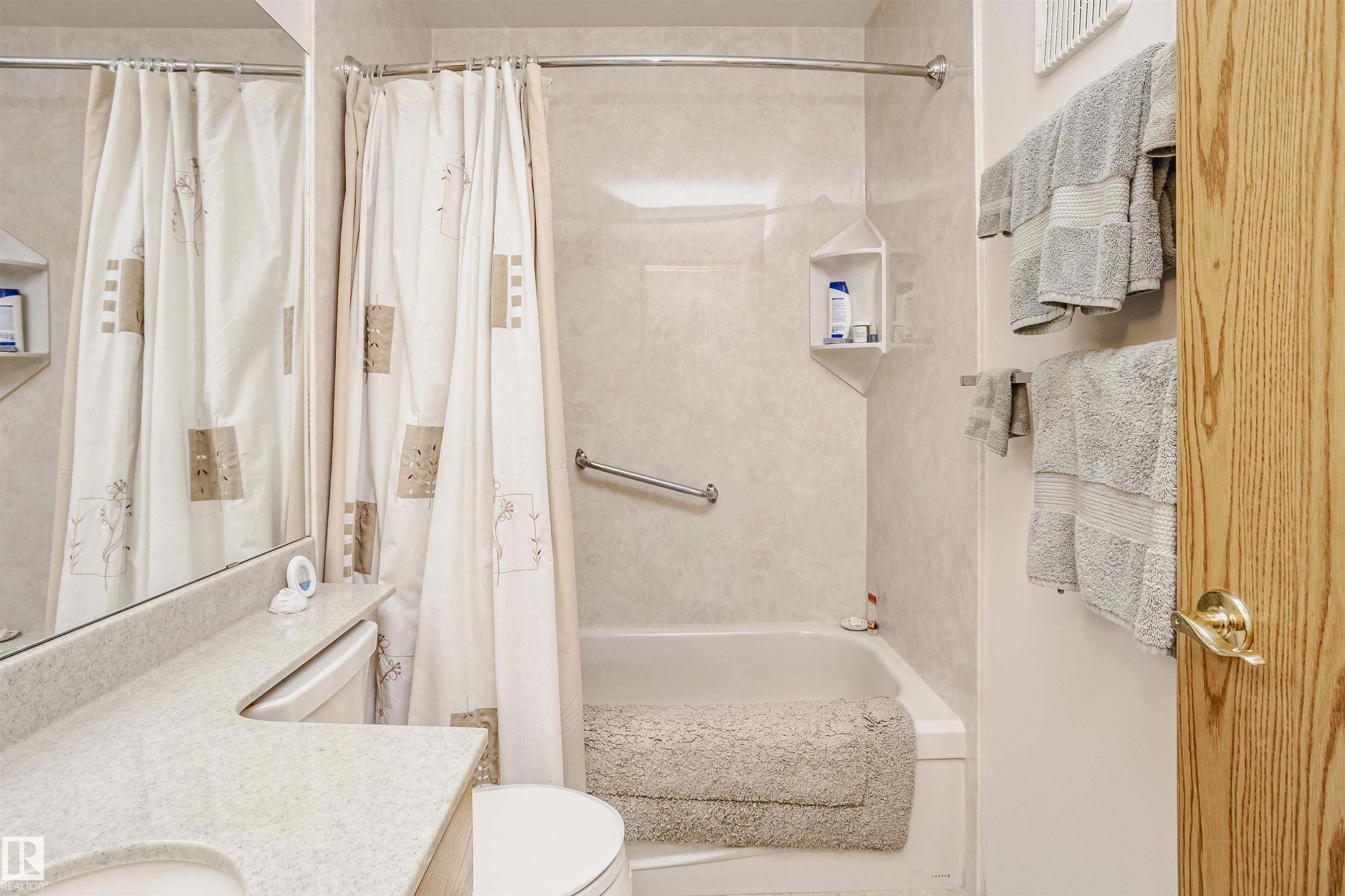 Welcome home to this wonderful 2 bedroom, 2 bathroom Adult condo, complete with all the amenities one could hope for. The buildings were built by a great builder and are very solid! The building has a library/meeting room, exercise room, games room, social room and workshop! The unit is very spacious, big LR, bedrooms, comfortable DR and kitchen plus a large Laundry/Storage room. The unit has always been very well maintained, plus has had numerous upgrades in recent years. The bedrooms are on opposite sides of the LR for privacy and 3 rooms have ceiling fans. The windows were replaced an couple years ago and they had Be Cool Vinyl installed which reduces summer heat and has a mirror like finish on the outside for great privacy. The views off the balcony is a green space and park to the side. Heated parking plus storage cage. Even the parkade has a bathroom! Conveniently located minutes from Century Park (shopping plus transportation). A great place to enjoy your soon to be or current retirement years.