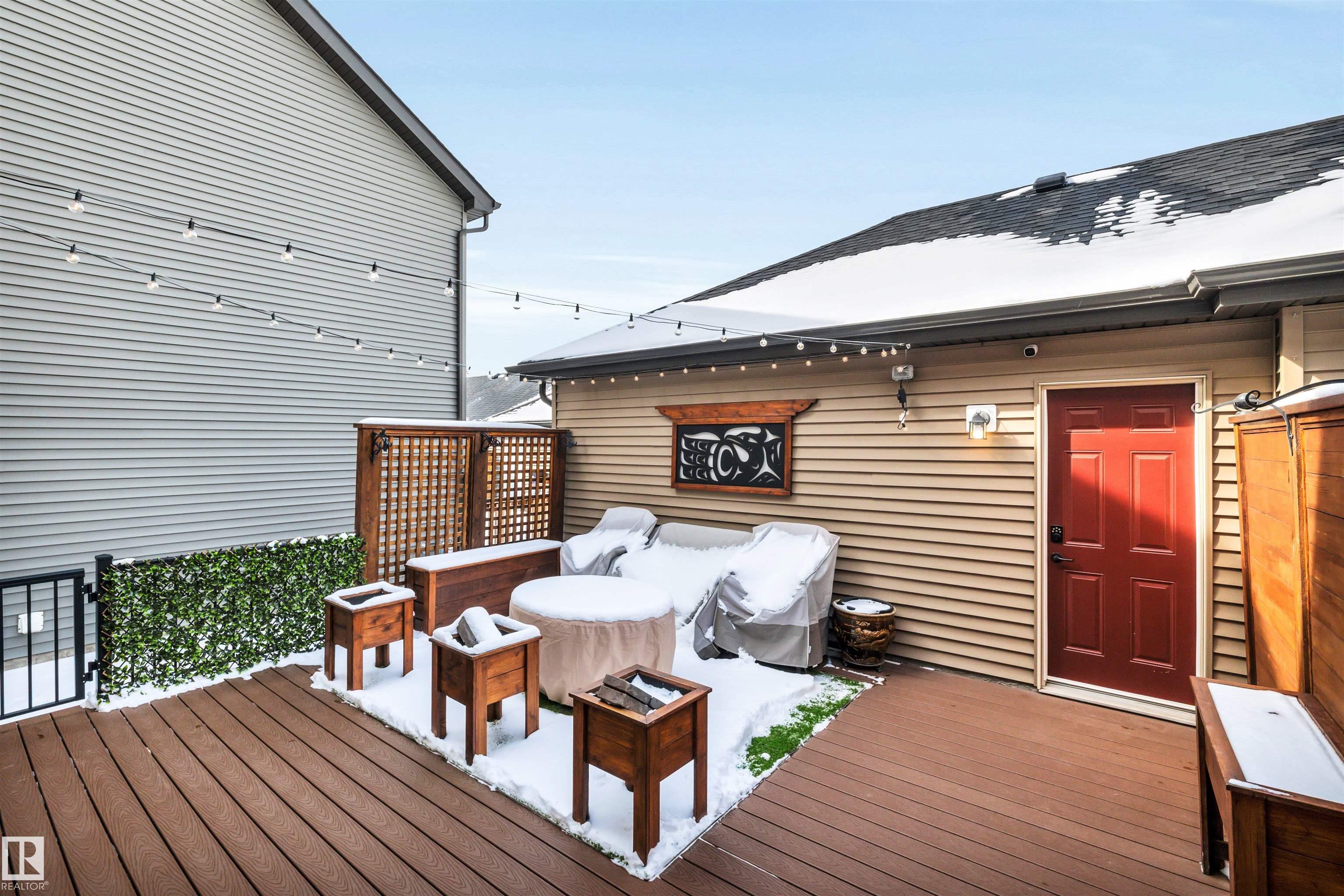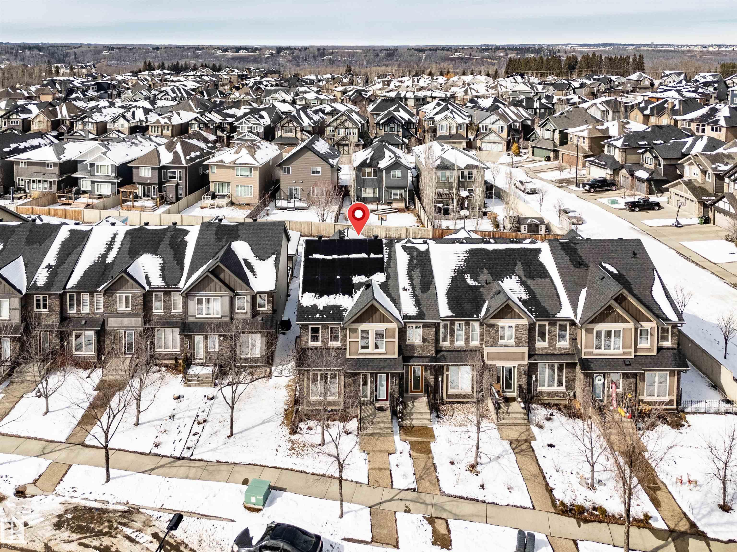 Welcome to prestigious Keswick on the River! This immaculately maintained END-UNIT Pacesetter townhome offers style, comfort, and NO condo fees. The open-concept main floor is perfect for modern living, while upstairs features 3 spacious bedrooms, including a primary suite with walk-in closet and ensuite. Upgrades include SOLAR PANELS, air conditioning, water softener, upper laundry, extra-wide staircases, and enhanced closet storage. The kitchen boasts granite counters, ample cabinetry, and an extensive island. Basement stairwell is drywalled & carpeted, ready for future development. Enjoy the summer in the beautiful PRIVATE, low-maintenance yard with composite deck, privacy lattice, and gas line. Double detached garage, plus driveway for 2 more vehicles. Keswick is a coveted, quiet community adjacent to our gorgeous river valley featuring extensive paved walking/biking trails to ravines & ponds, close to all amenities, dining, shopping, gyms & the Windermere Golf & Country Club.