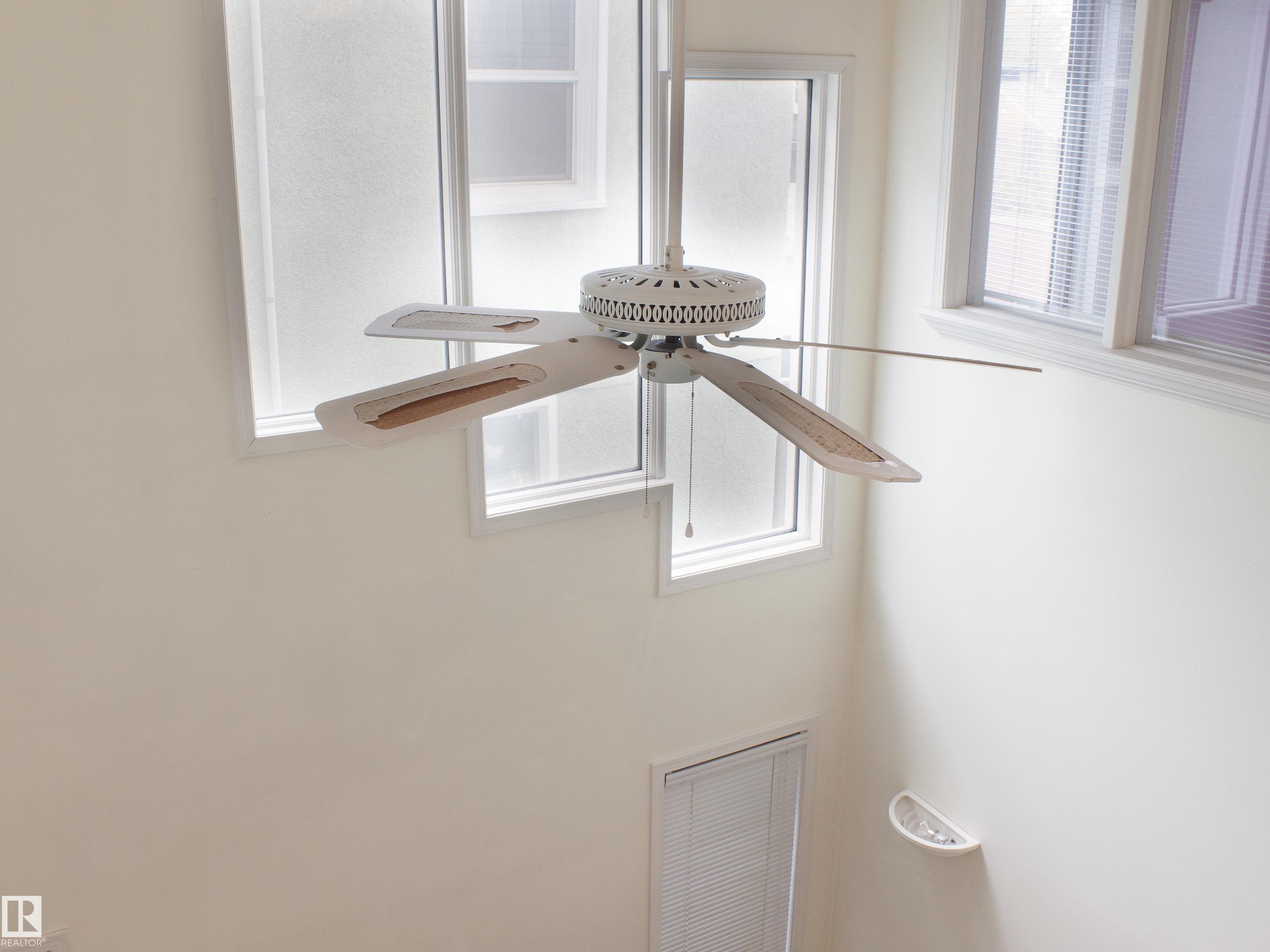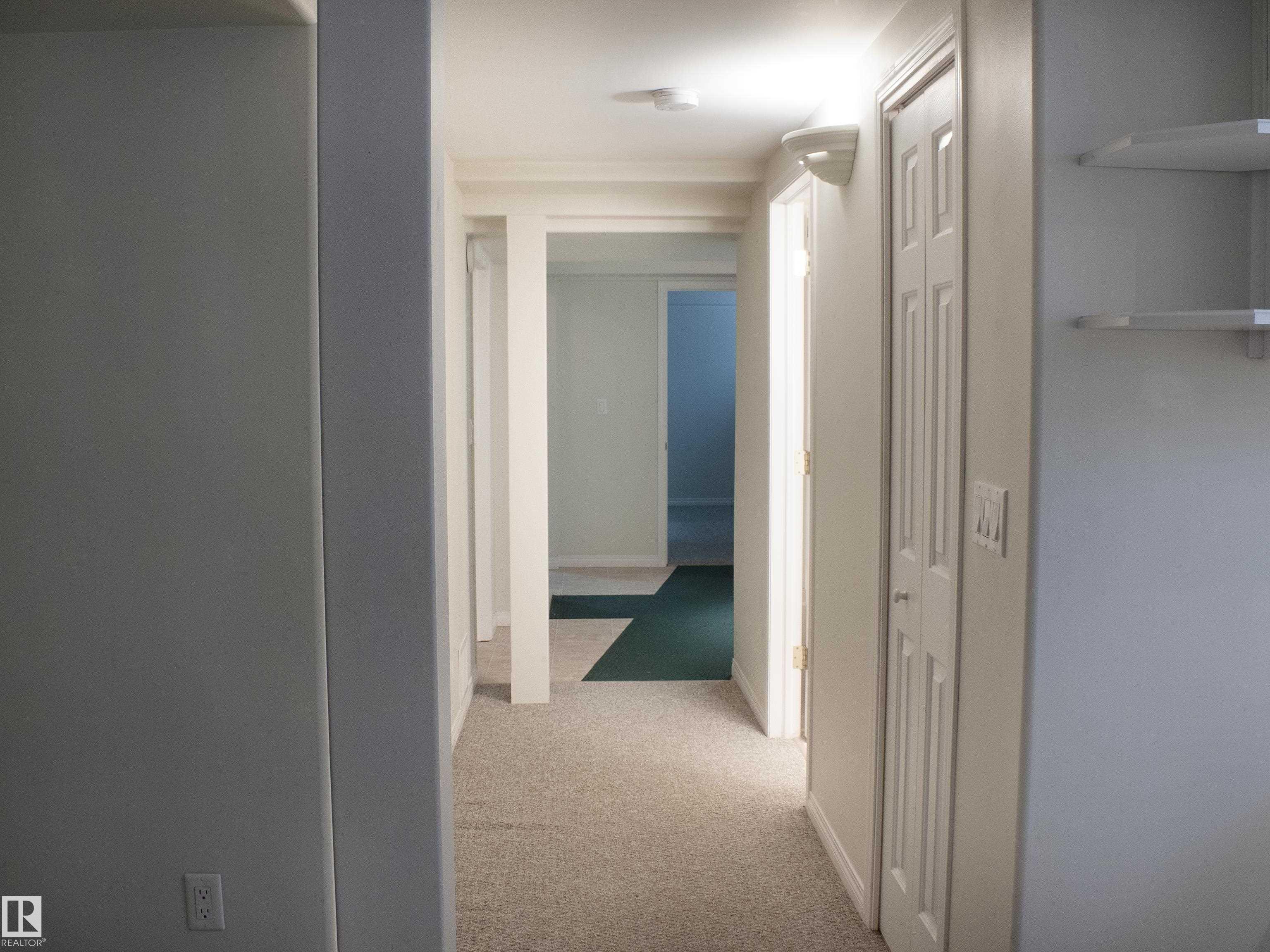 Just steps from the Mill Creek Ravine, this 2« storey half duplex offers exceptional space and versatility! The main floor features a cozy living room with fireplace and large windows, a dining area open to the second floor, a bright kitchen with attached home office space, and a convenient 2-pc bathroom. Upstairs, you will find 2 bedrooms including a large primary ensuite with separate shower stall and a jetted tub. The third floor boasts a spacious family room -- perfect for relaxing or entertaining. The finished basement offers even more living options with a den and large walk-in closet, 4-pc bath, second kitchen, small family room, laundry area and utility/storage room. Enjoy outdoor living on the deck and extra storage in the alley-accessed detached double garage with attached shelving. Ideal location near trails, parks, Bonnie Doon Mall, many great area restaurants and amenities!