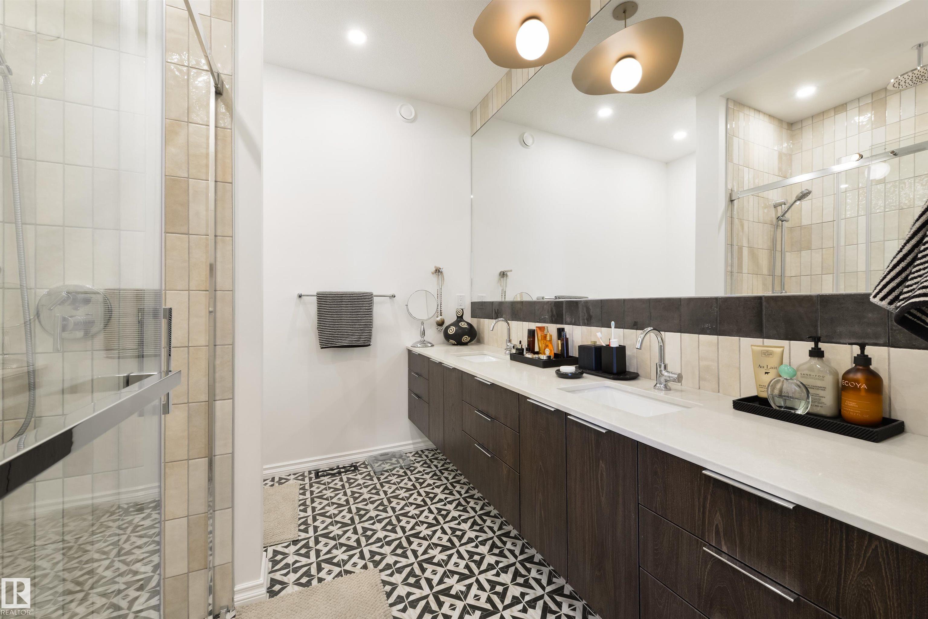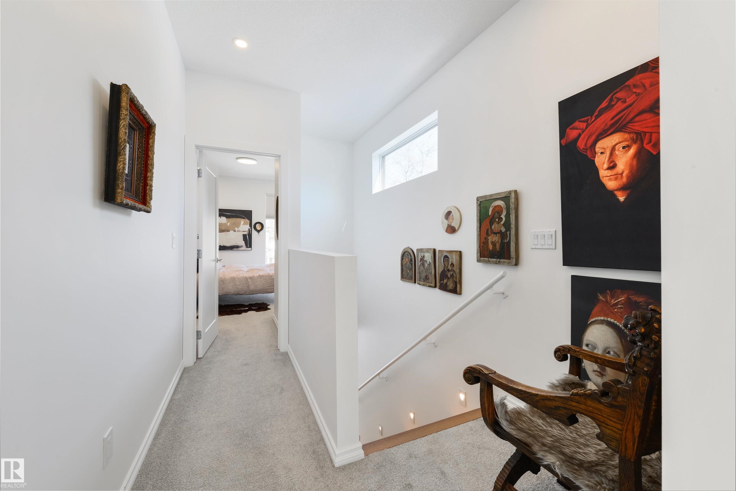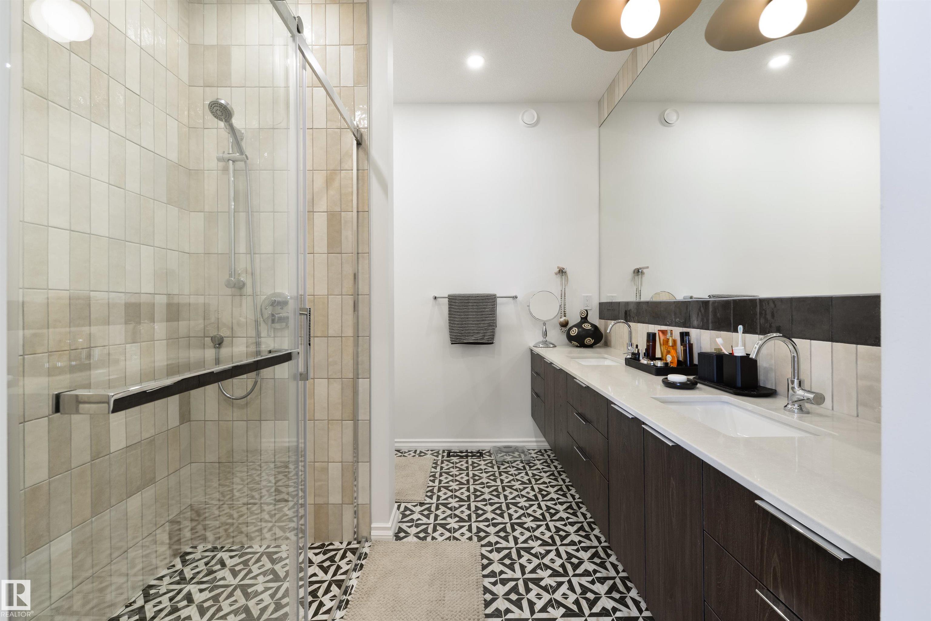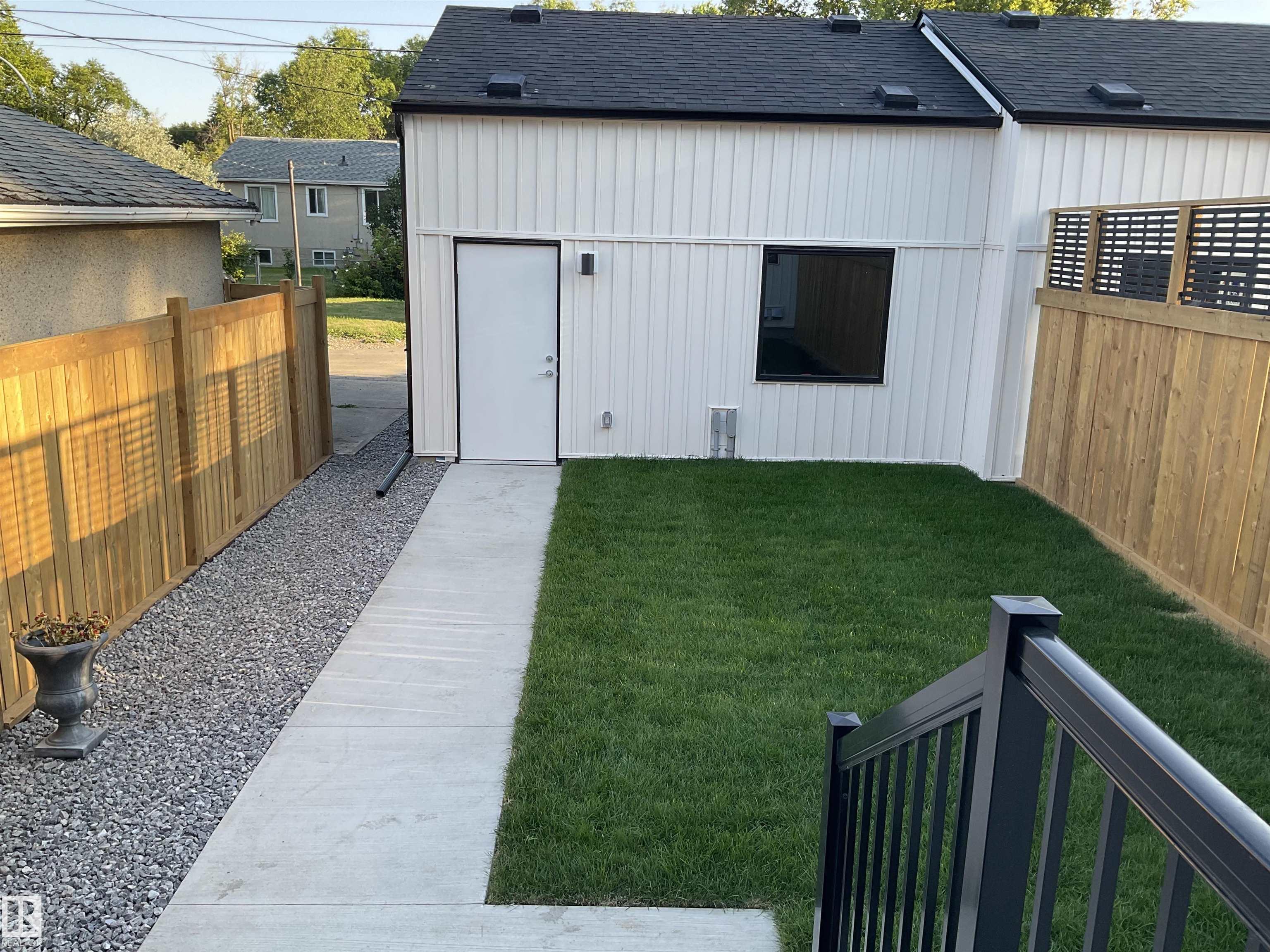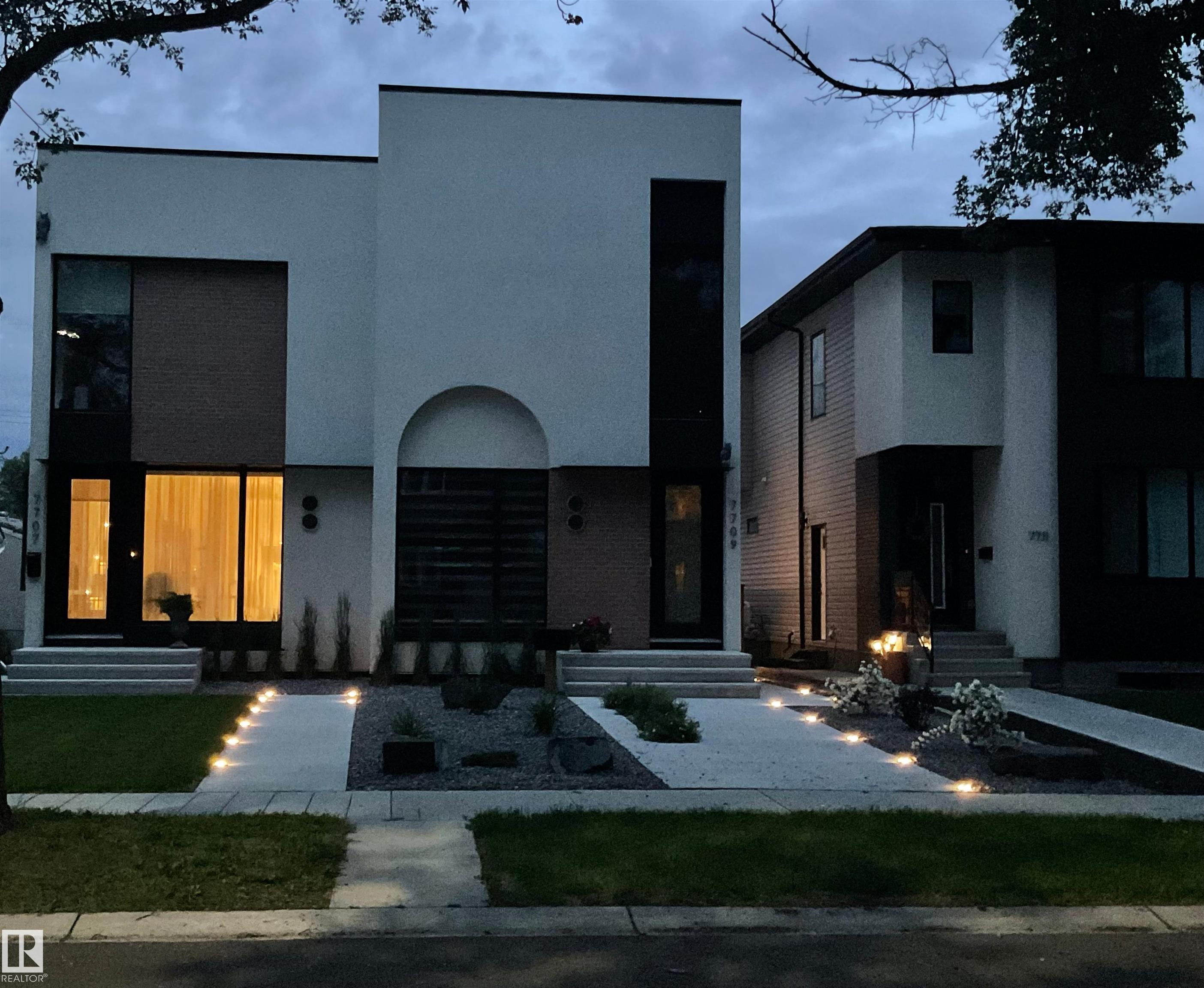 Welcome to this stunning, modern, and stylish half duplex, crafted by Edmonton's premier high-end infill builder, Platinum Living Homes. Nestled in King Edward Park on a mature, tree-lined street, this home offers nearly 1,500 sq ft of exceptional living space and includes a fully finished legal suite. The oversized windows feature high-quality, motorized Hunter Douglas blinds, while the main floor boasts gleaming hardwood floors, a sophisticated kitchen with custom cabinetry, quartz countertops, and upgraded appliances. Upstairs, discover a spacious primary suite with a large walk-in closet and a luxurious ensuite, along with two additional bedrooms, a full bathroom, and a laundry room. The legal suite provides an open-concept layout with its own kitchen, living area, bathroom, spacious bedroom and laundry. Enjoy the fully landscaped, fenced backyard and stay comfortable all summer with a new A/C unit. Homes of this calibre are rare--simply move in and enjoy.