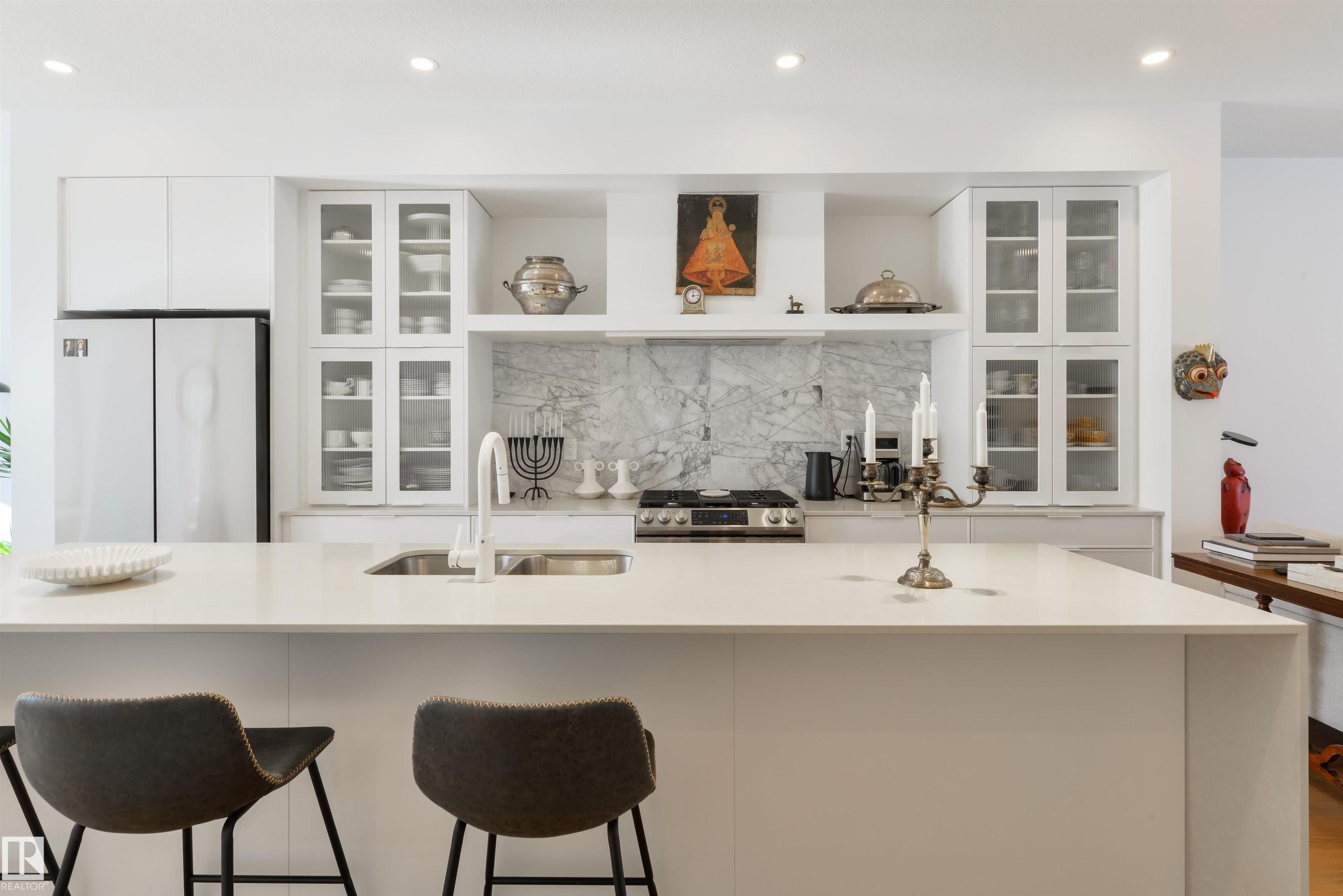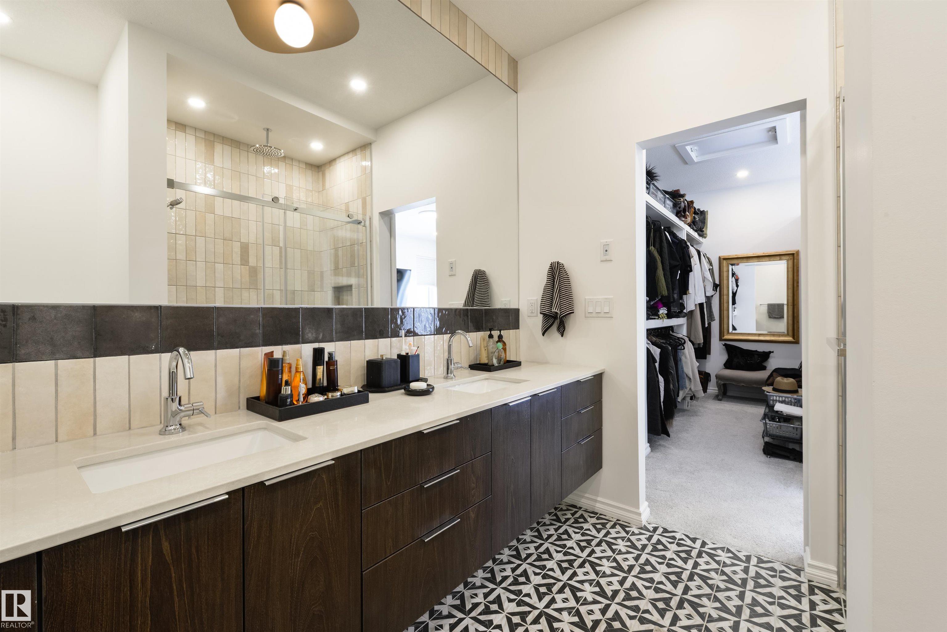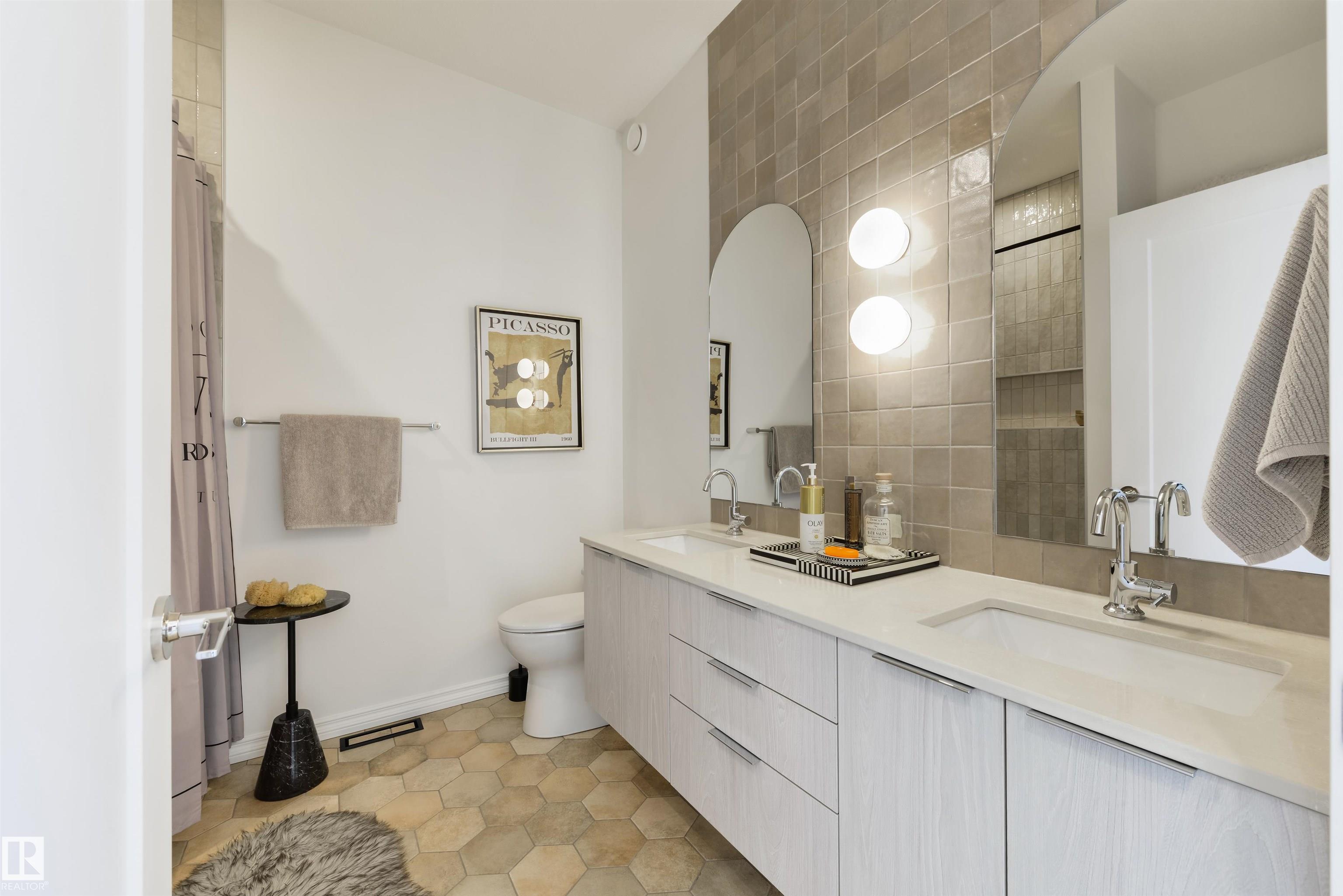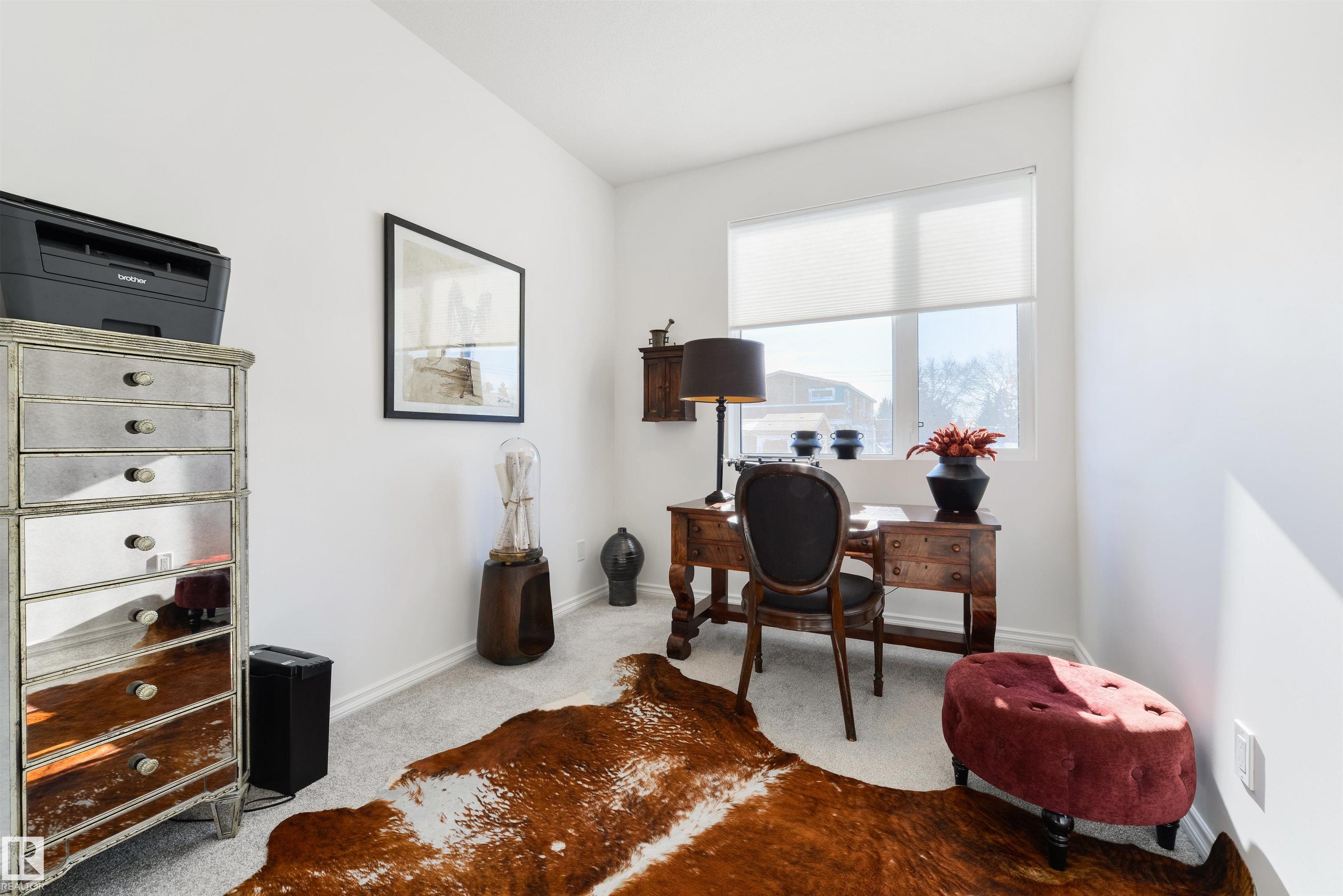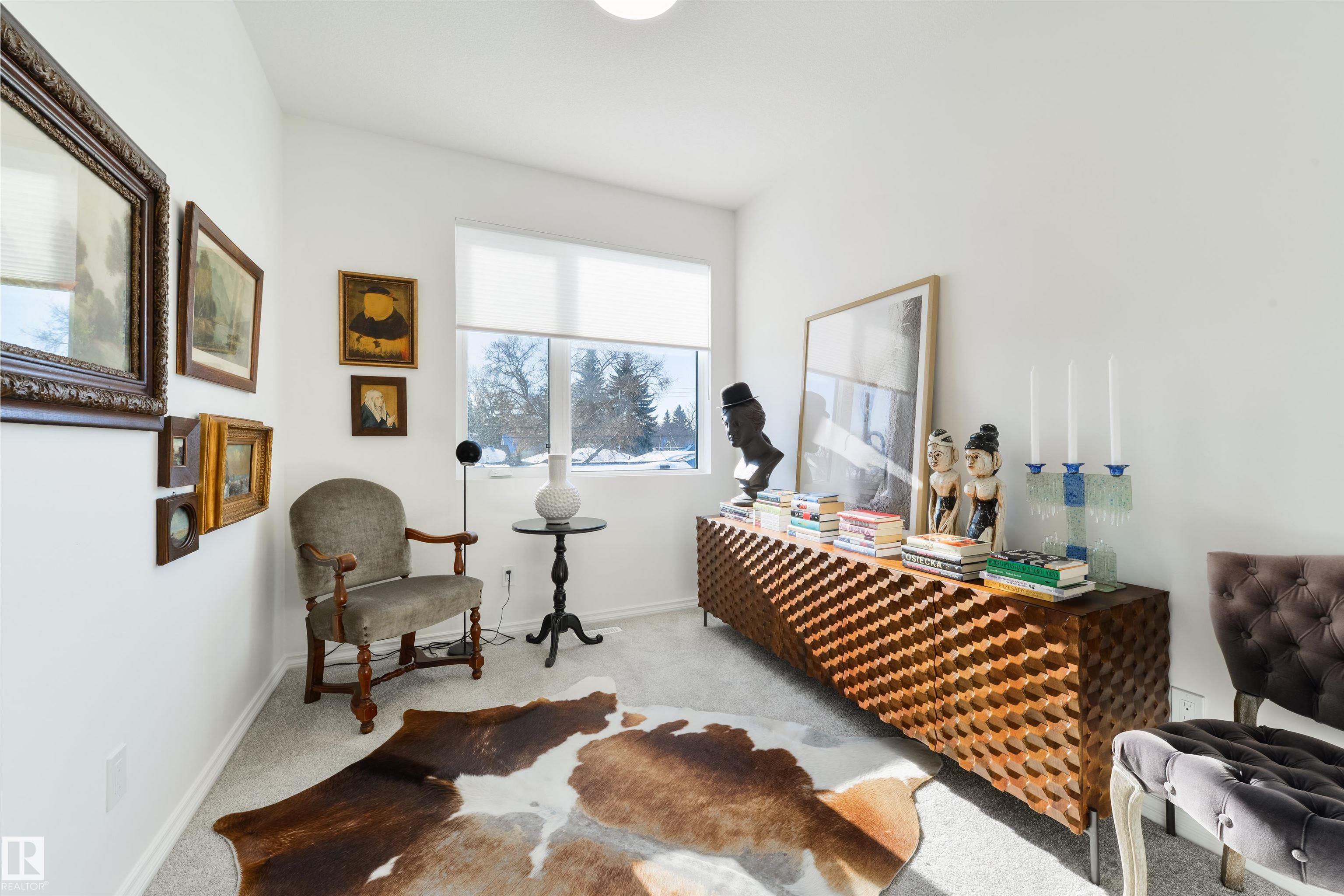 Welcome to this stunning, modern, and stylish half duplex, crafted by Edmonton's premier high-end infill builder, Platinum Living Homes. Nestled in King Edward Park on a mature, tree-lined street, this home offers nearly 1,500 sq ft of exceptional living space and includes a fully finished legal suite. The oversized windows feature high-quality, motorized Hunter Douglas blinds, while the main floor boasts gleaming hardwood floors, a sophisticated kitchen with custom cabinetry, quartz countertops, and upgraded appliances. Upstairs, discover a spacious primary suite with a large walk-in closet and a luxurious ensuite, along with two additional bedrooms, a full bathroom, and a laundry room. The legal suite provides an open-concept layout with its own kitchen, living area, bathroom, spacious bedroom and laundry. Enjoy the fully landscaped, fenced backyard and stay comfortable all summer with a new A/C unit. Homes of this calibre are rare--simply move in and enjoy.