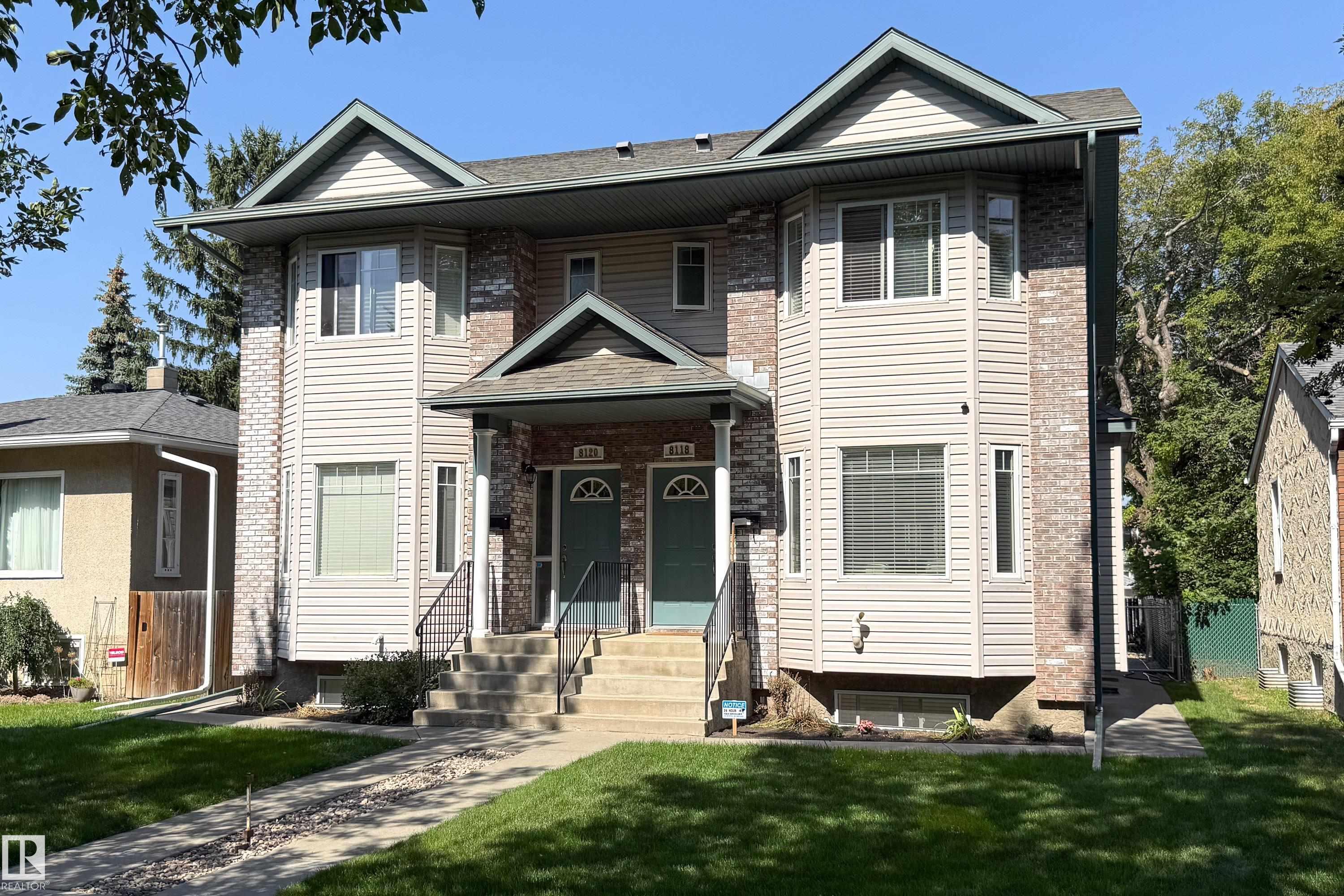 Well maintained Two Storey, side by side duplex in King Edward Park. Solid home built in 2006.Bright primary bedroom includes 3 pce. ensuite, and large closet. The living area includes a gas fireplace and open to the dining room. The kitchen includes plenty of cabinet space and patio doors to a large deck area. Well cared for landscaping with a private fenced backyard . Legal one bedroom self contained suite in 8118. Fully developed basement in 8120. In-suite laundry for each unit. Upgrades include shingles (40 yr) in 2021,water heater 8120 in 2024, 8118 in 2020.Fantastic location across from the community park and only steps to Bonnie Doon Mall, the LRT station and the Millcreek ravine. Minutes to downtown, University Of Alberta and MacEwan University. A great investment property!