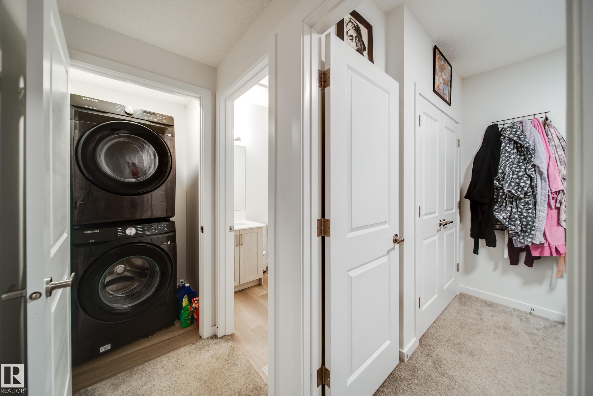 INVESTOR ALERT! Opportunity knocks with this 2023-built 2-storey featuring a custom 1 bed legal suite in the established community of Kirkness. Just a stone throw from Manning Town Centre, Movati, Costco, schools, transit, and the Henday. This location is unbeatable for families or future tenants! The home is bright, welcoming, and move-in ready, starting with a generous foyer and flowing into open-concept living, dining, and a stylish kitchen with smart stainless steel appliances (yes, even an air-frying oven!). A 2-pc powder room and double garage sit conveniently off the entrance. Upstairs offers 3 bedrooms, upper laundry, and a dreamy primary retreat with walk-in closet and 5-pc ensuite. The backyard is spacious and ready for your touch. Downstairs, find yourself in the cozy legal suite. Perfect as a mortgage helper or multi-generational space. Enjoy the high-efficiency boiler system with separate smart thermostats for year-round comfort. Don't miss out on your chance to live while making a living!