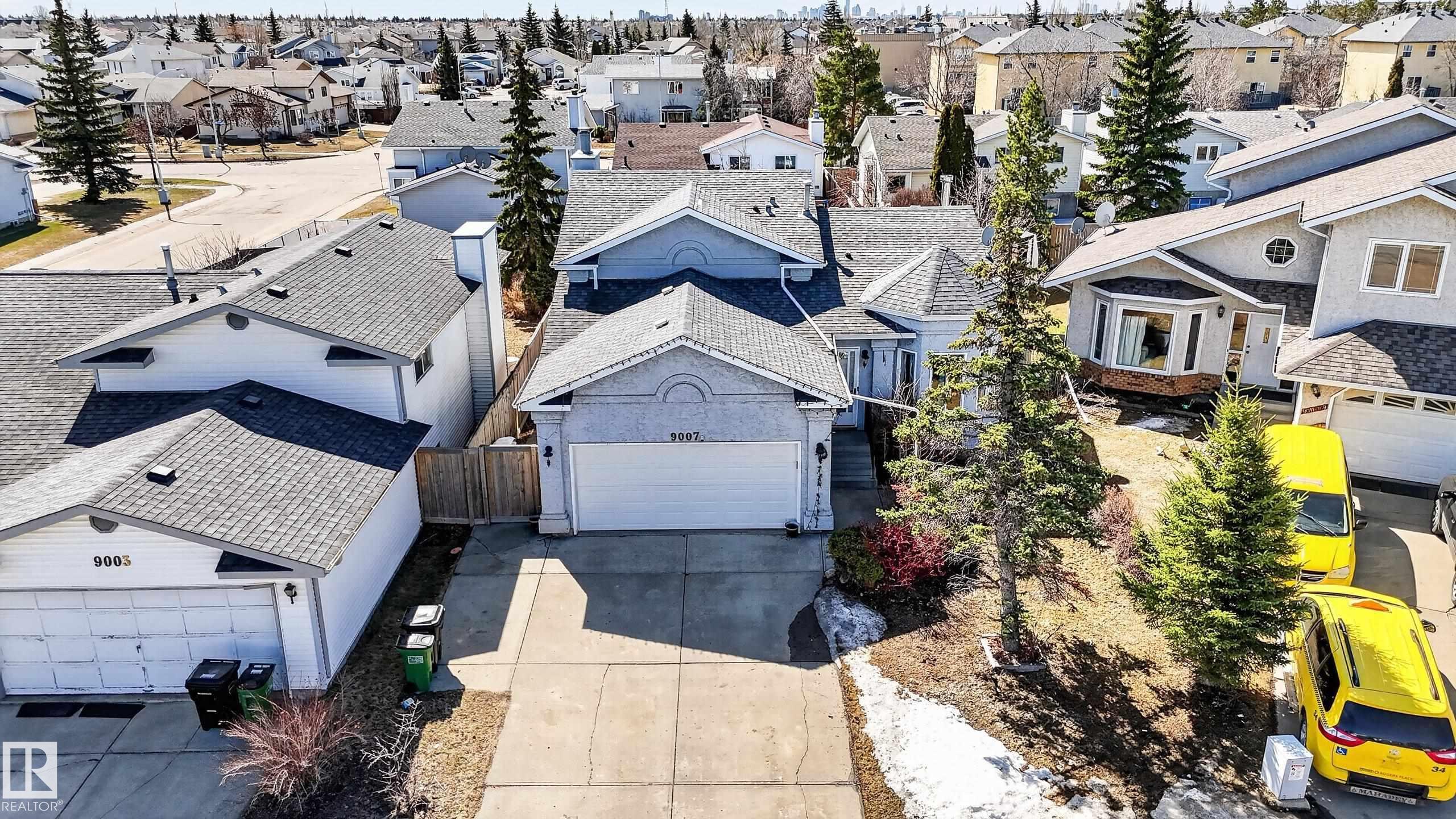 Absolutely immaculate 4-level split in the heart of Klarvatten, located in a quiet cul-de-sac. The main floor features a bright living room with hardwood flooring and large bay windows, filling the space with natural light. The updated enclosed kitchen offers modern cabinetry, granite countertops, and connects to a spacious dining area overlooking the backyard. Upstairs includes 3 bedrooms, with the primary offering a 3-piece ensuite, plus a full 4-piece bathroom. The third level boasts a cozy family room with a wood-burning fireplace, a 4th bedroom, and a 3-piece bath. The fully finished basement adds a second family room with another wood-burning fireplace. Upgrades include hardwood flooring, heated double garage, newer kitchen, granite, windows, and shingles. Furnace (2007), HWT (2017), and newer Samsung washer and dryer. Beautiful yard with fruit trees, garden, and covered deck. Walking distance to schools, parks, and all nearby amenities. Ideal family home with great curb appeal.
