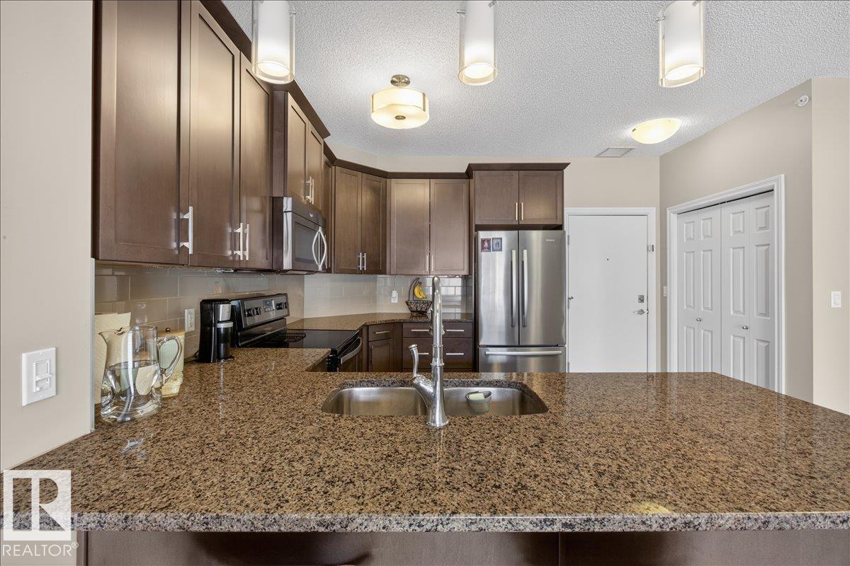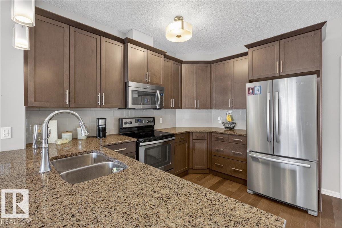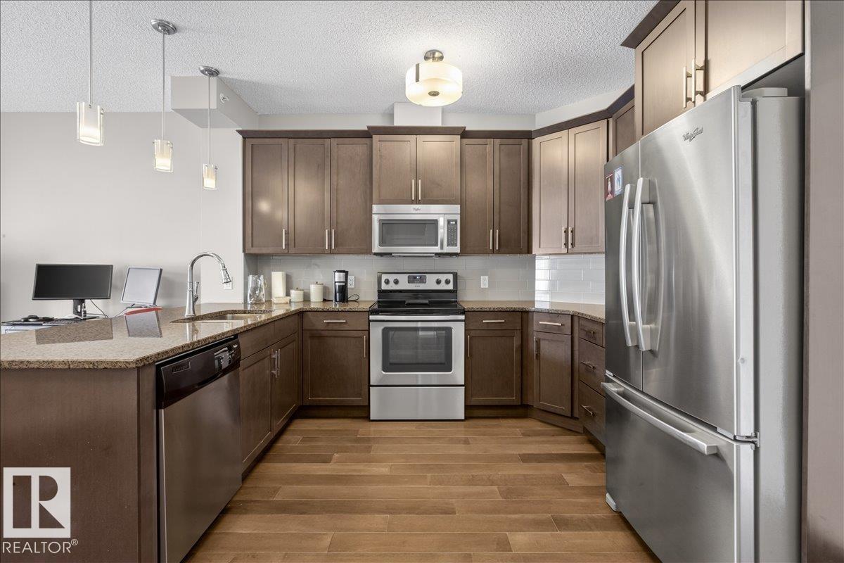 Immaculate! This AIR CONDITIONED one bedroom 4th floor unit is in perfect condition and still looks like it is brand new. This upgraded unit features granite counter tops, a large kitchen with loads of maple cabinets and stainless steel appliances. You won't find a scratch on the beautiful hardwood floors. There is in-suite storage with stacked laundry. This unit includes a non titled storage cage and one titled underground parking stall. Conveniently located just steps from loads of amenities, schools, parks and bus stops with easy access to the Whitemud and Anthony Henday. Aspen Meadows is a very well run complex with a healthy reserve fund and the condo fees include ALL utilities including the electricity.