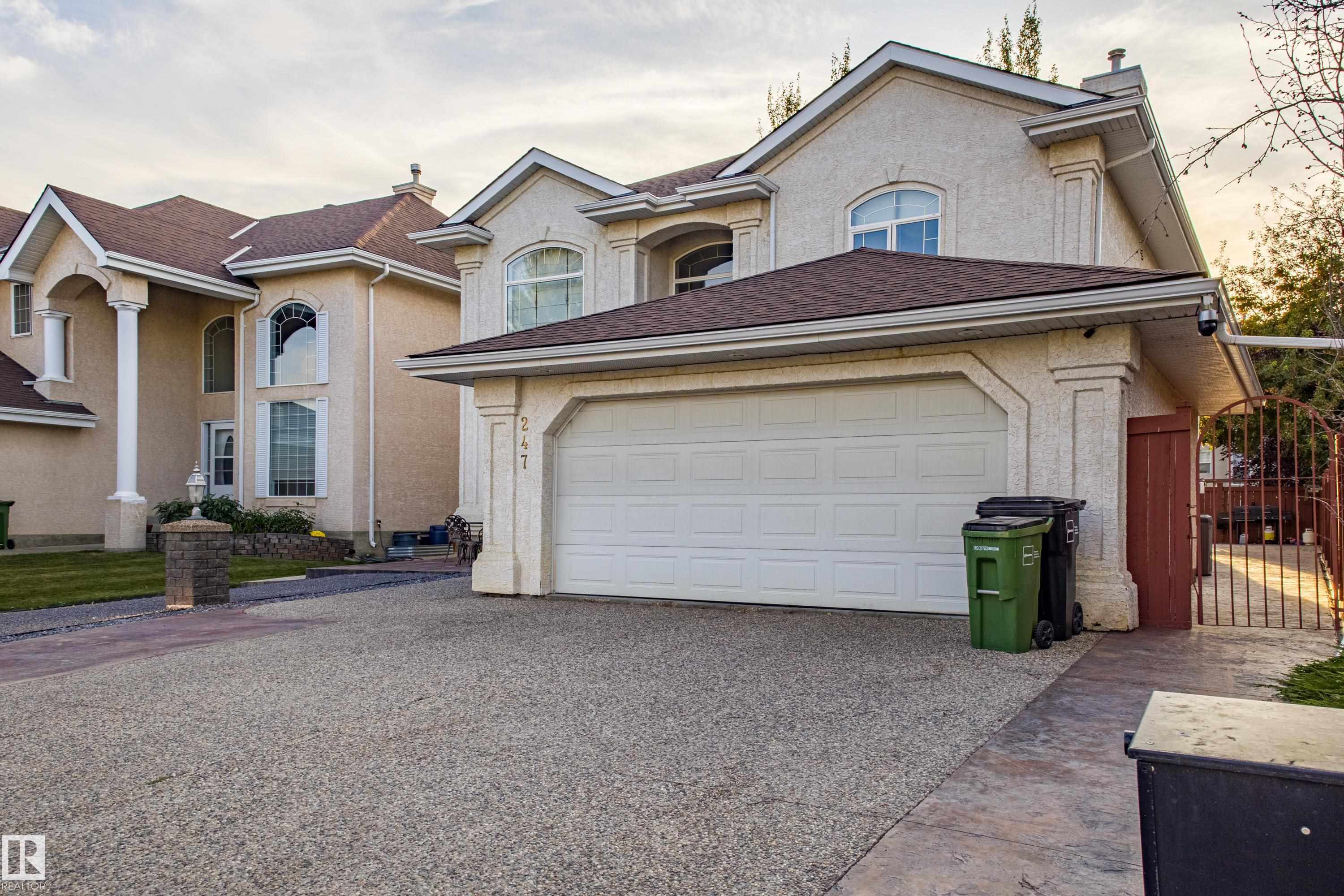 Beautifully maintained home in Leger offering over 2,600sqft above grade plus a fully developed basement, with a total of 6 bedrooms + main floor den--perfect for large or growing families. Upon entry, you're greeted by a grand curved staircase & soaring 17ft ceilings adorned with a stunning chandelier. Spacious great room flows seamlessly into the formal dining area. Massive gourmet kitchen is sure to impress with its open layout, abundant cabinetry & generous workspace. A private main floor den with French doors makes the perfect home office. Upstairs, you'll find laminate flooring throughout(no carpet) & a luxurious primary suite complete with a 4-piece ensuite & walk-in closet. Three additional bedrooms & a bright 4-piece bathroom complete the upper level. The fully finished basement features 9ft ceilings, vinyl plank flooring, 2 additional bedrooms, a wet bar & an expansive rec room. Extra features: Solar Panels, 24x24 porcelain tiles, Stamped rear concrete patio extends on sides of home, Central A/C.